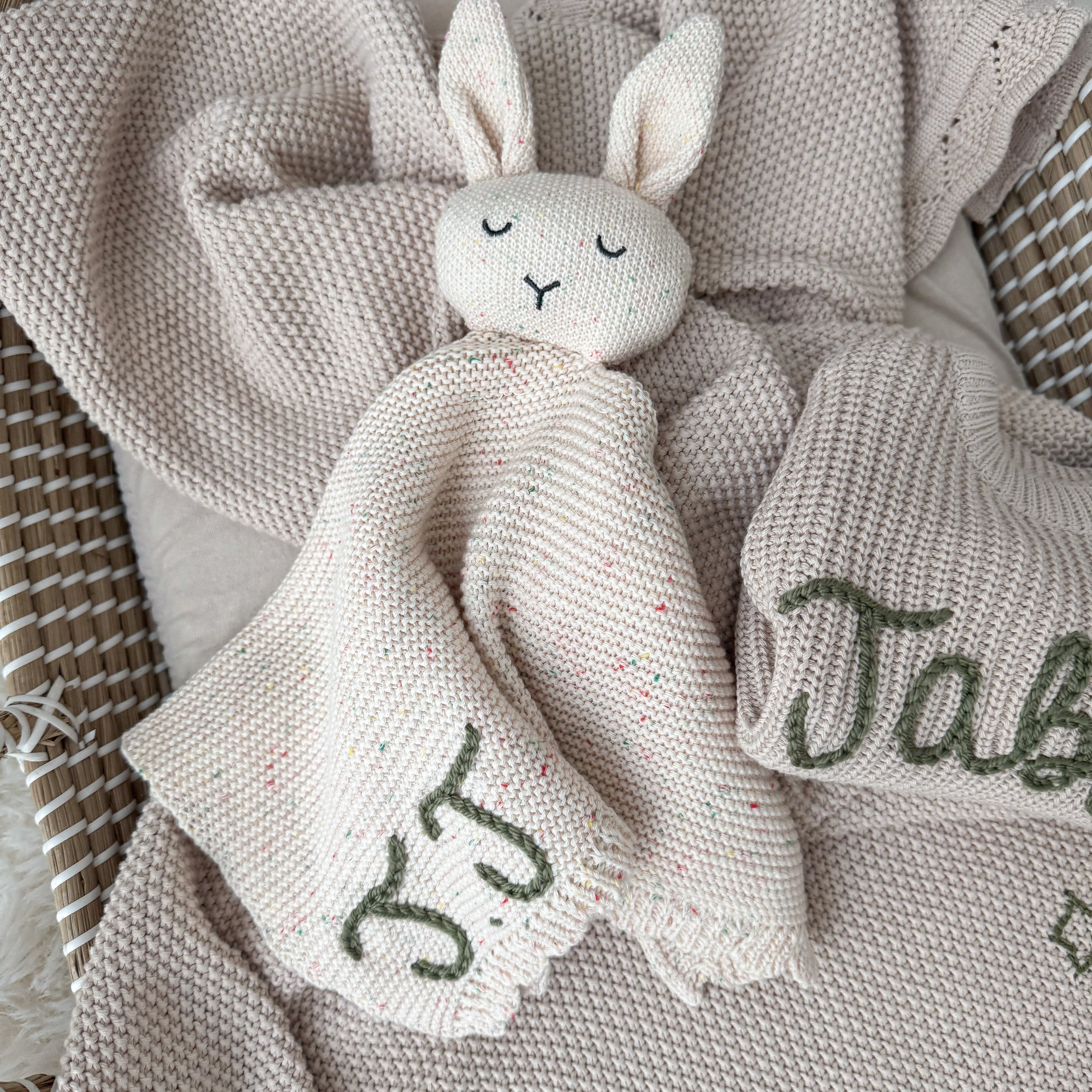 Knitted Cotton Bunny Comforter - Speckled Beige
