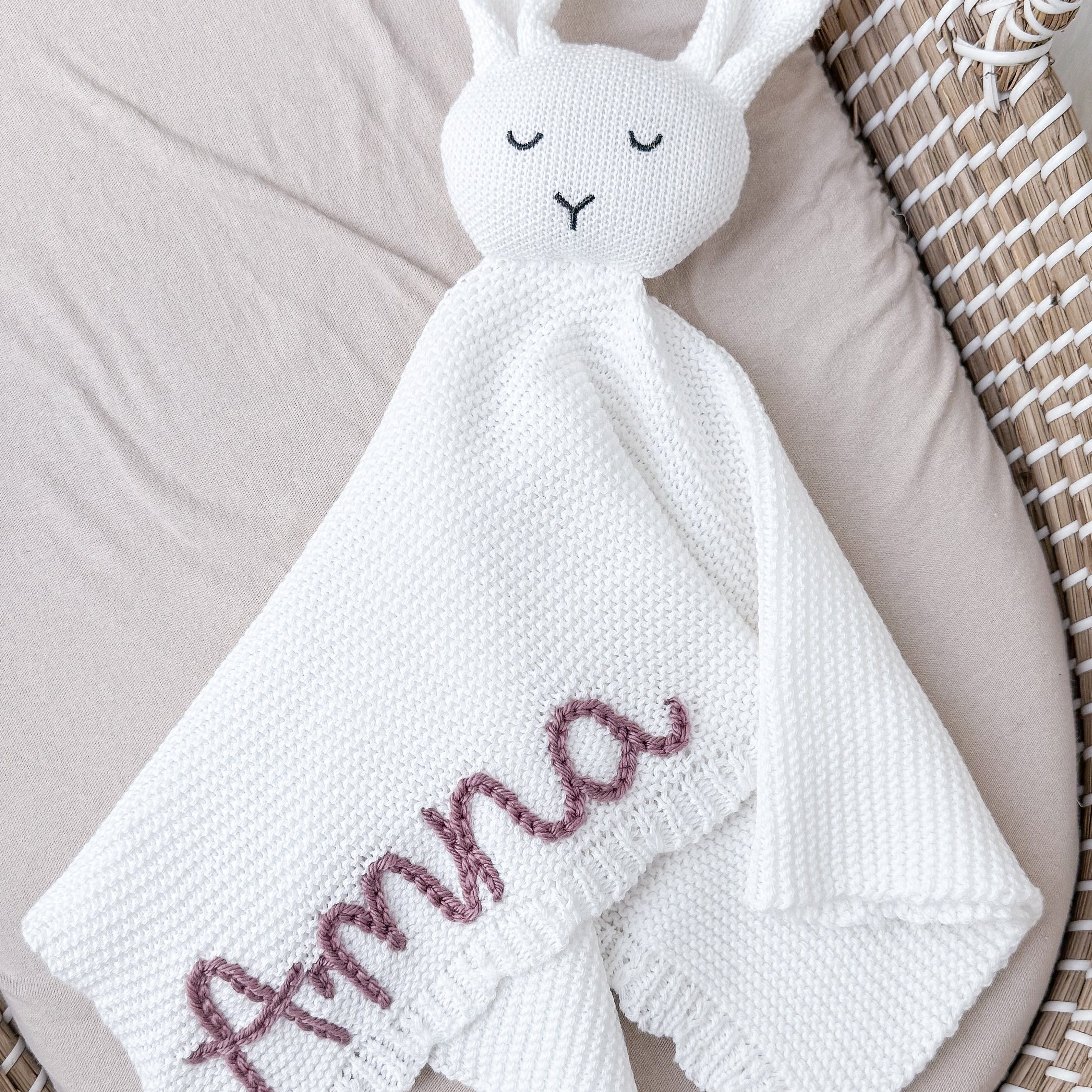 Knitted Cotton Bunny Comforter - Dusty Pink