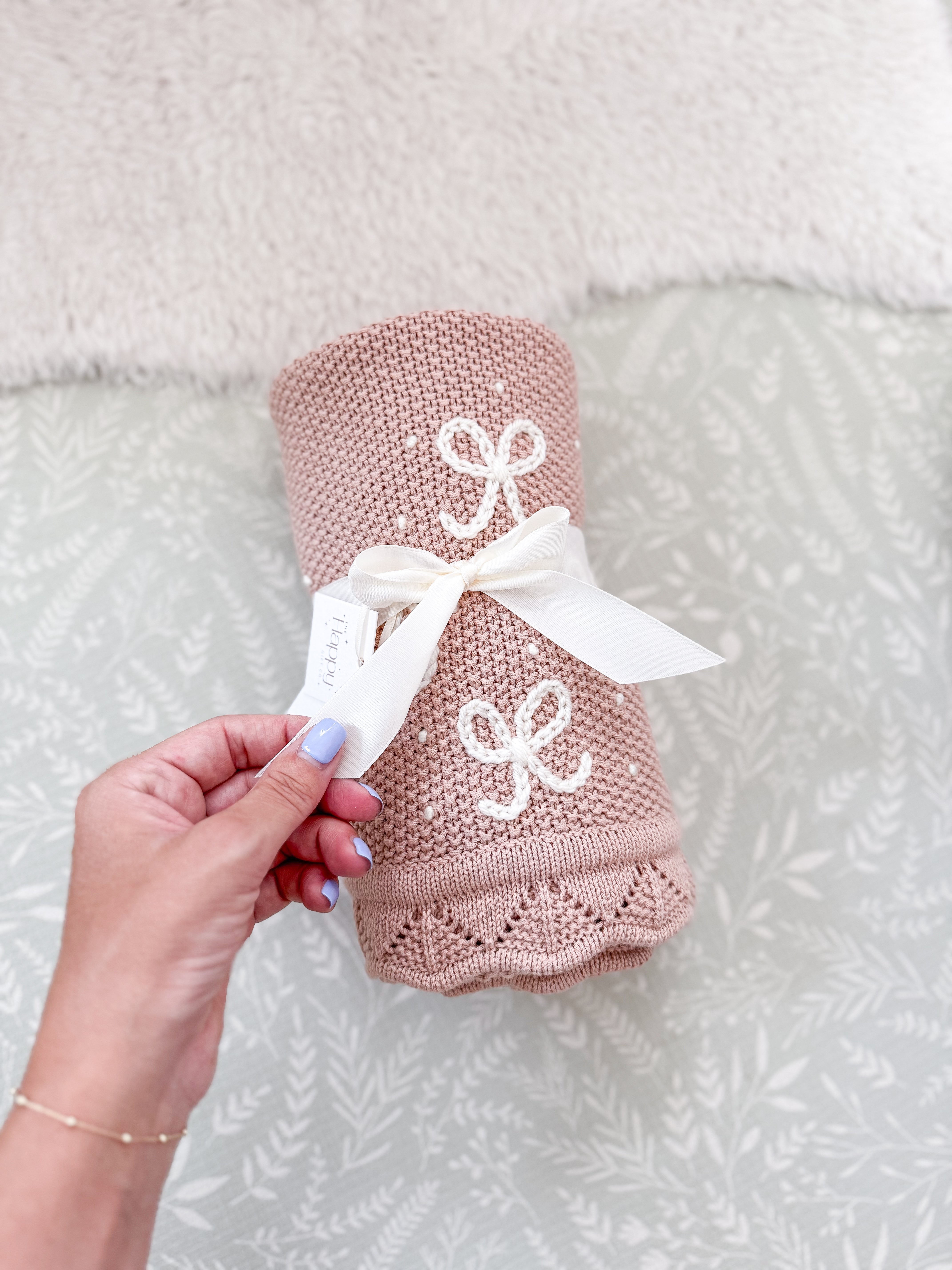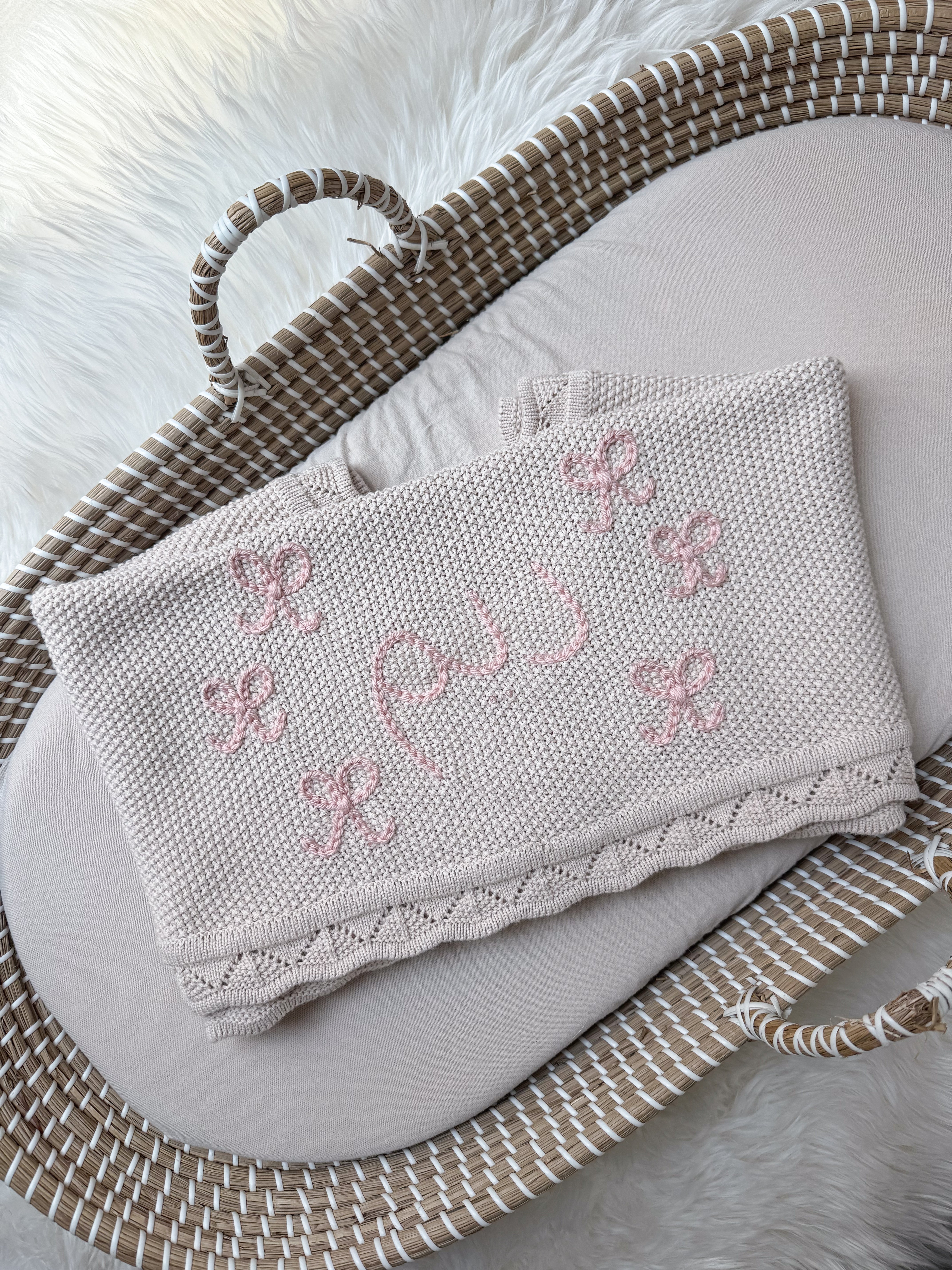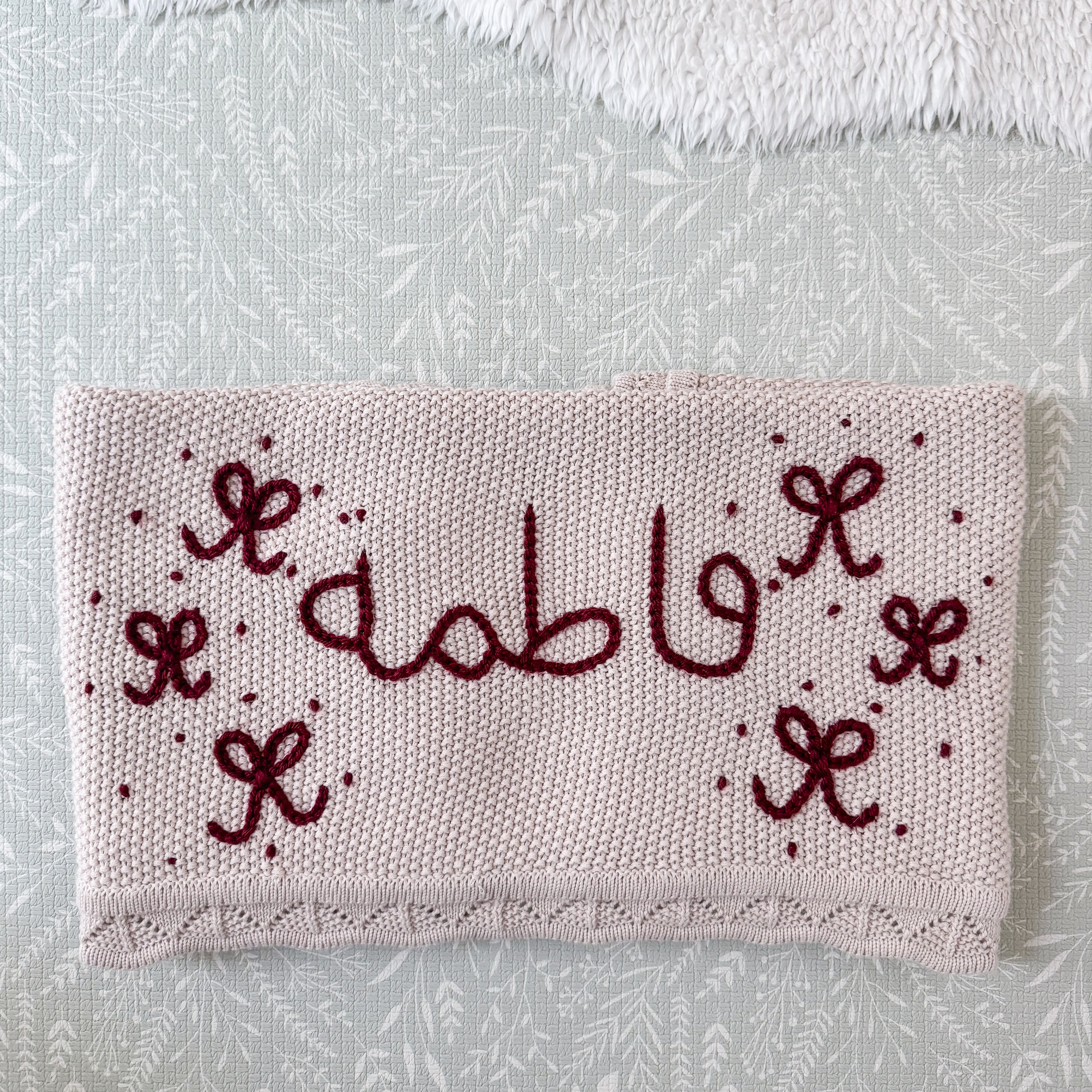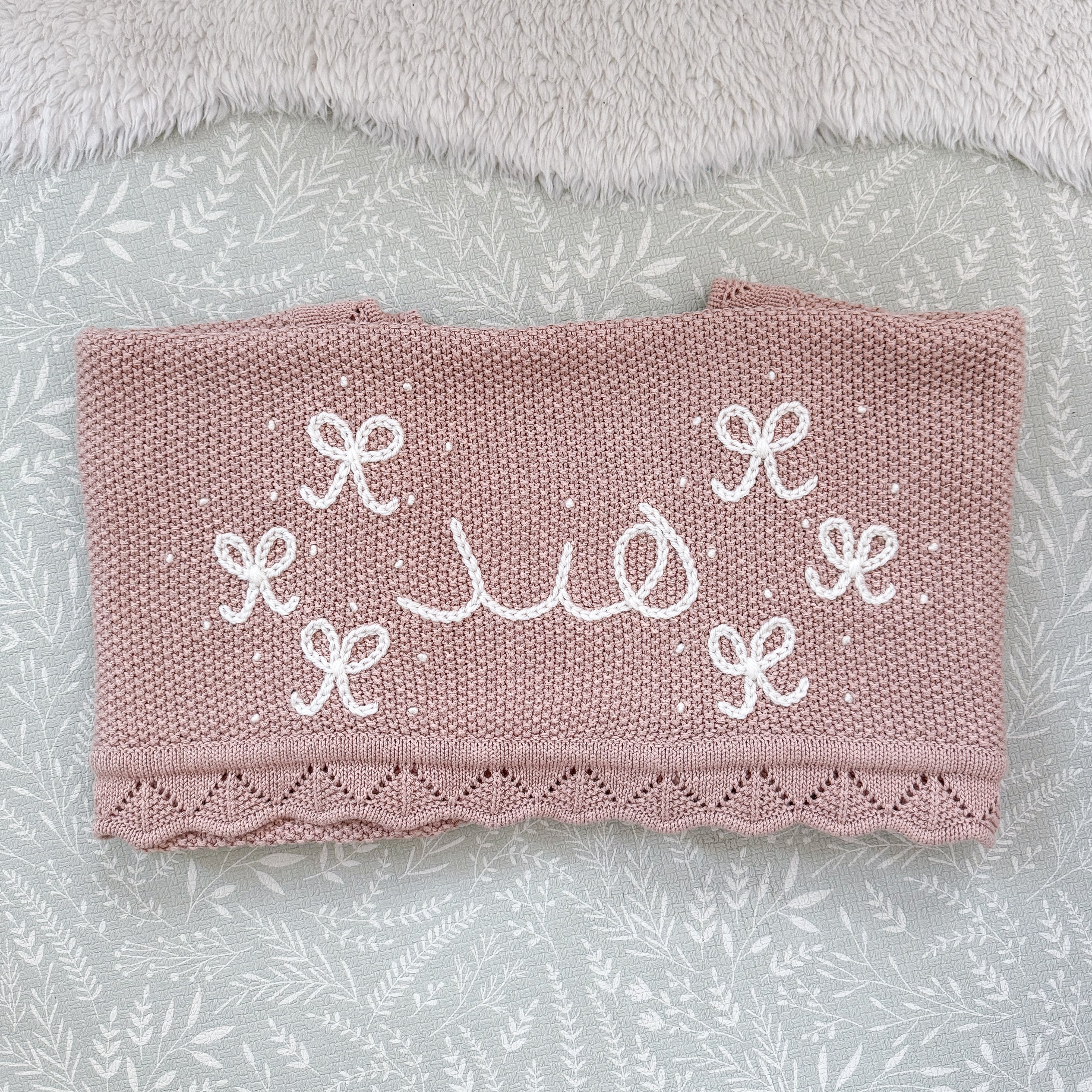 Names are hand-embroidered and are sewn along the bottom centre of the blanket, if you would like the name to be placed in another position on the blanket, please let us know in order notes box below.