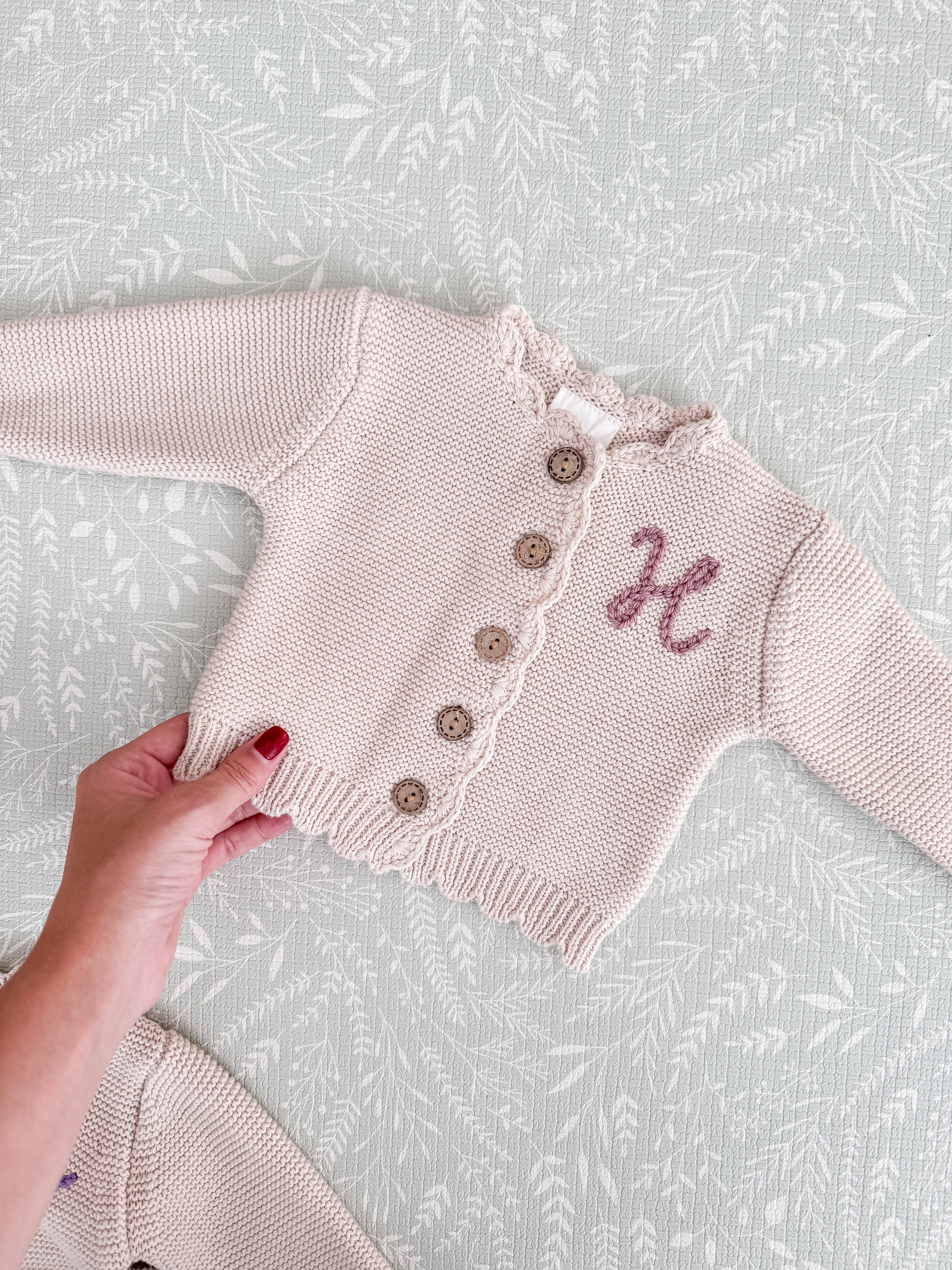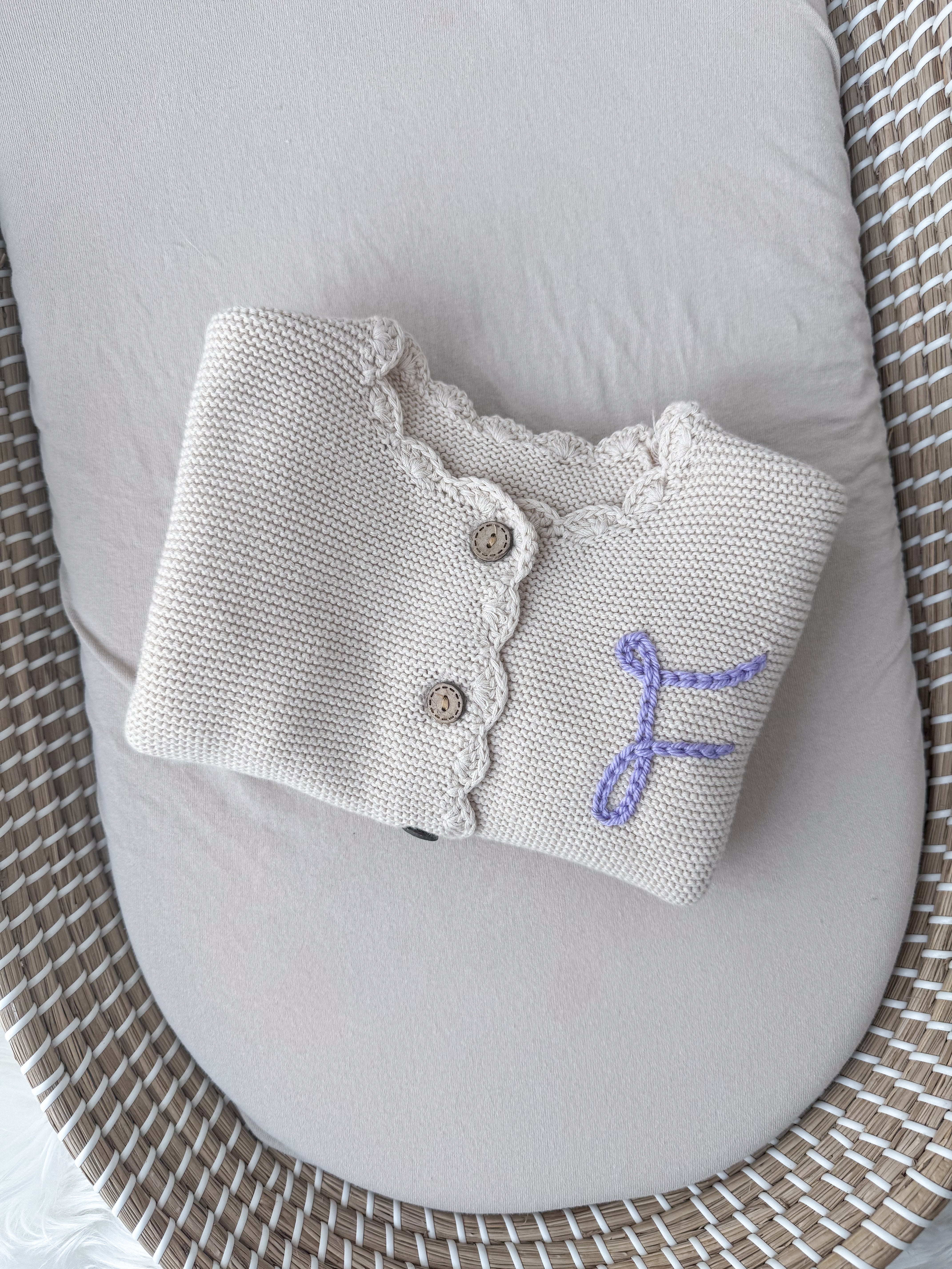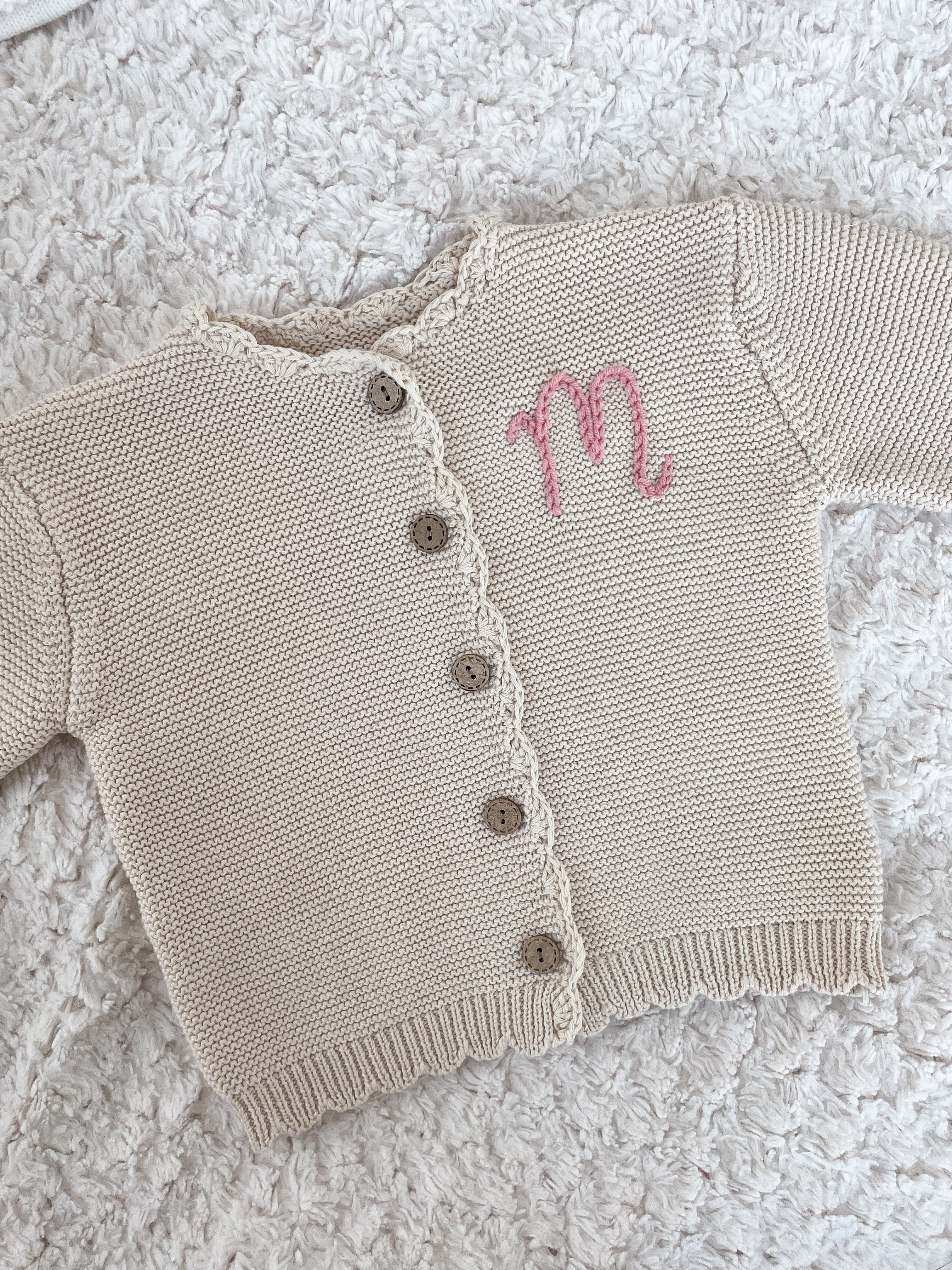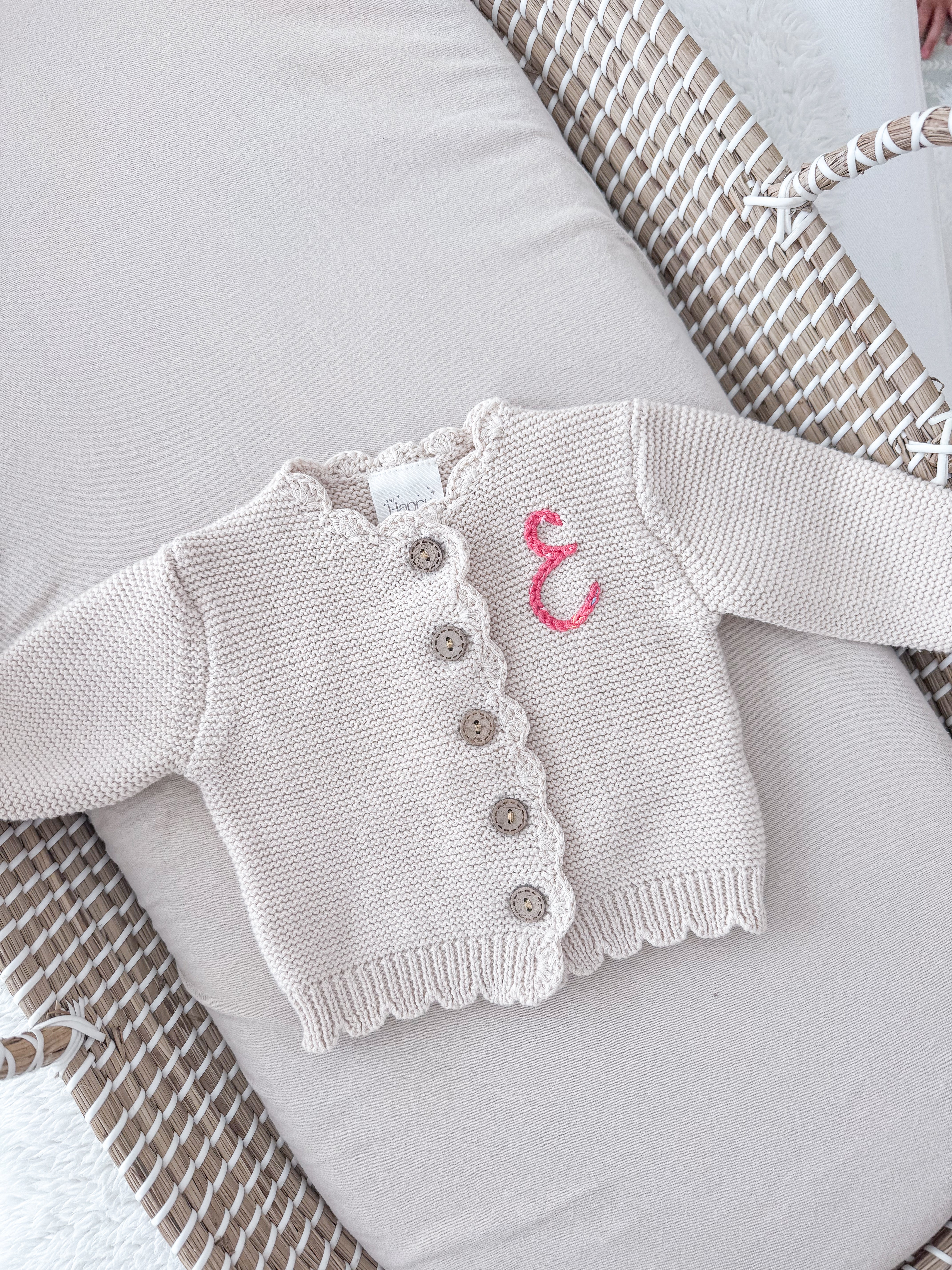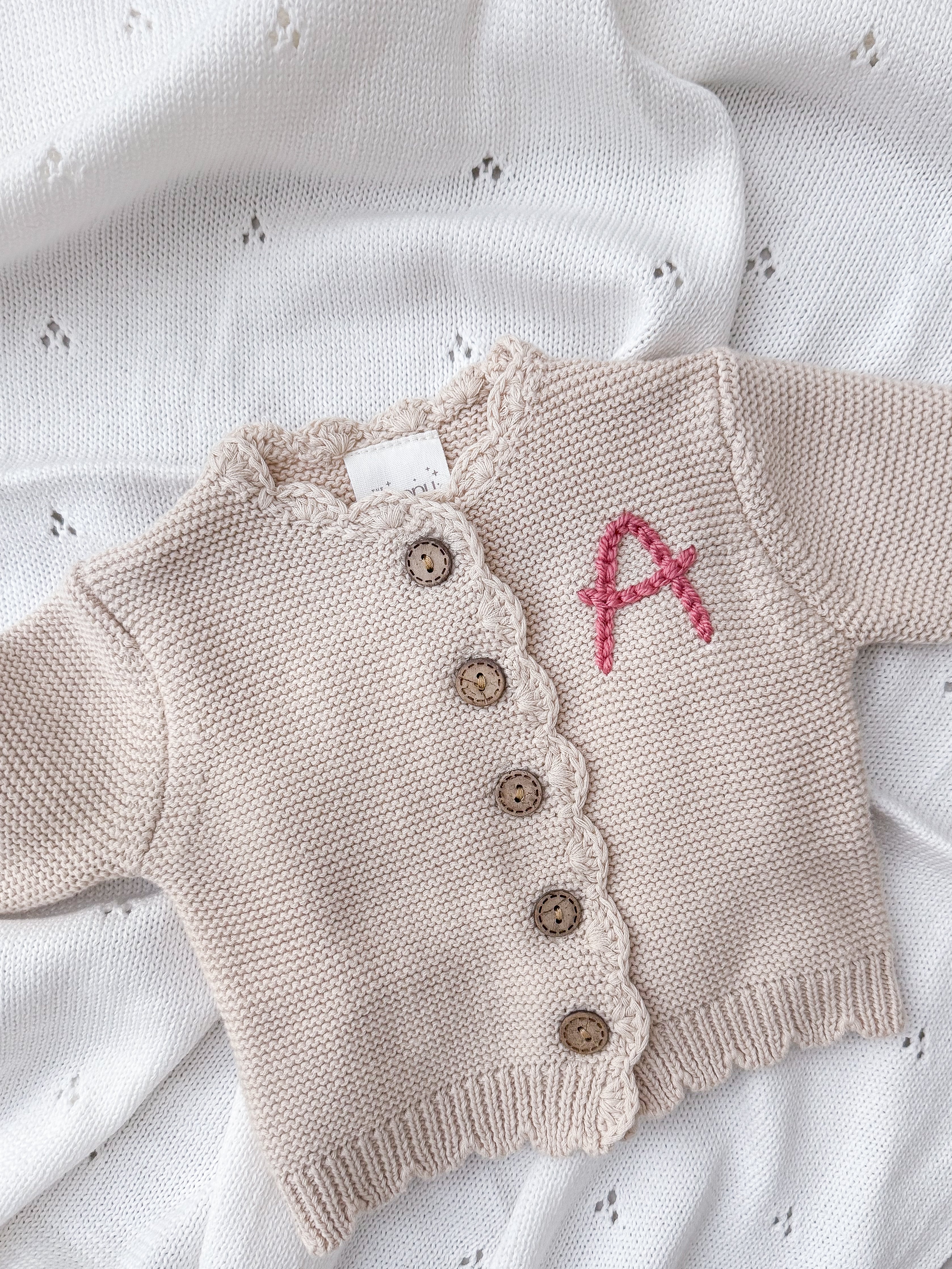 Knitted Scallop Cardigan - Hand Embroidered - Personalise Me