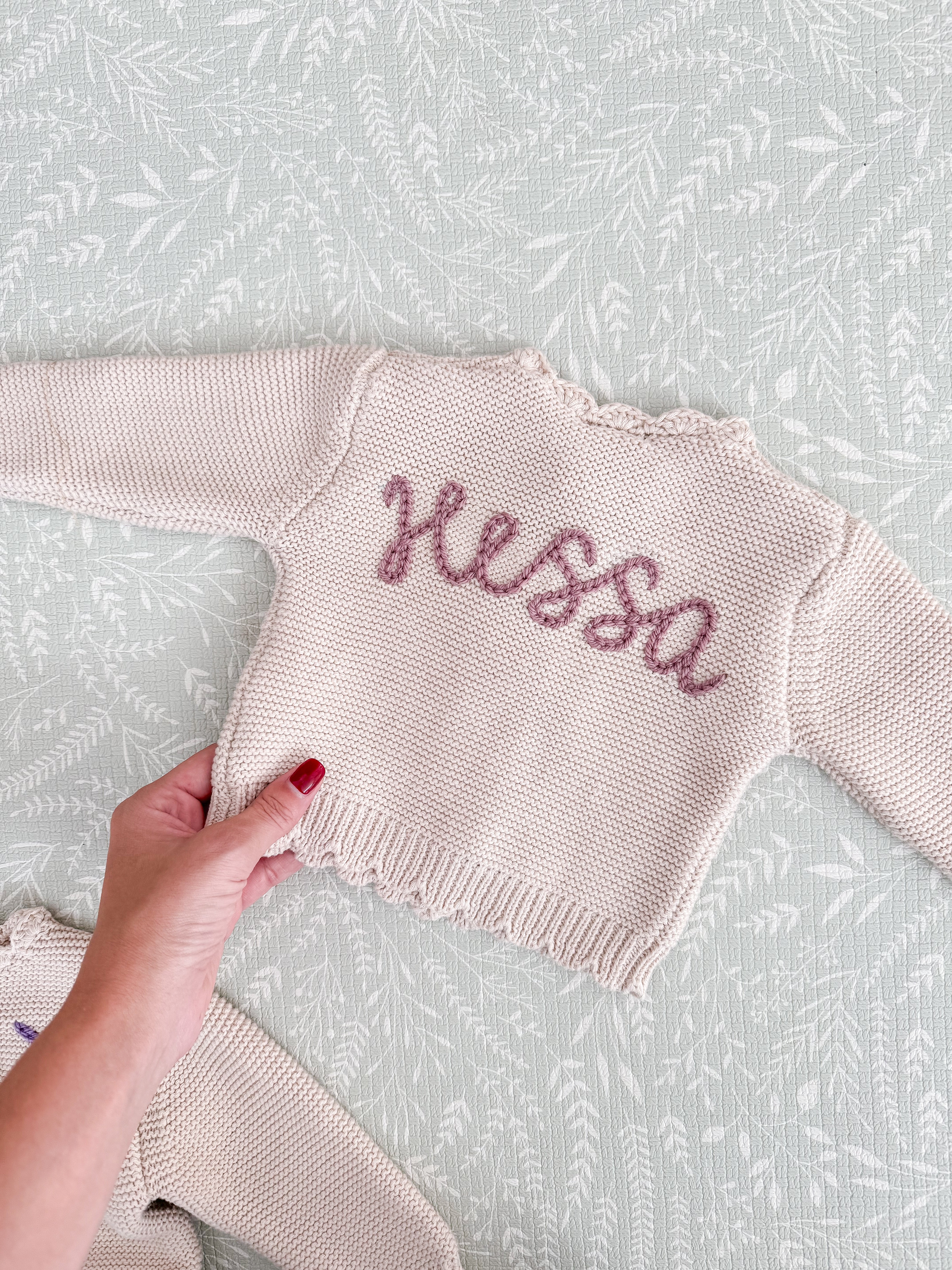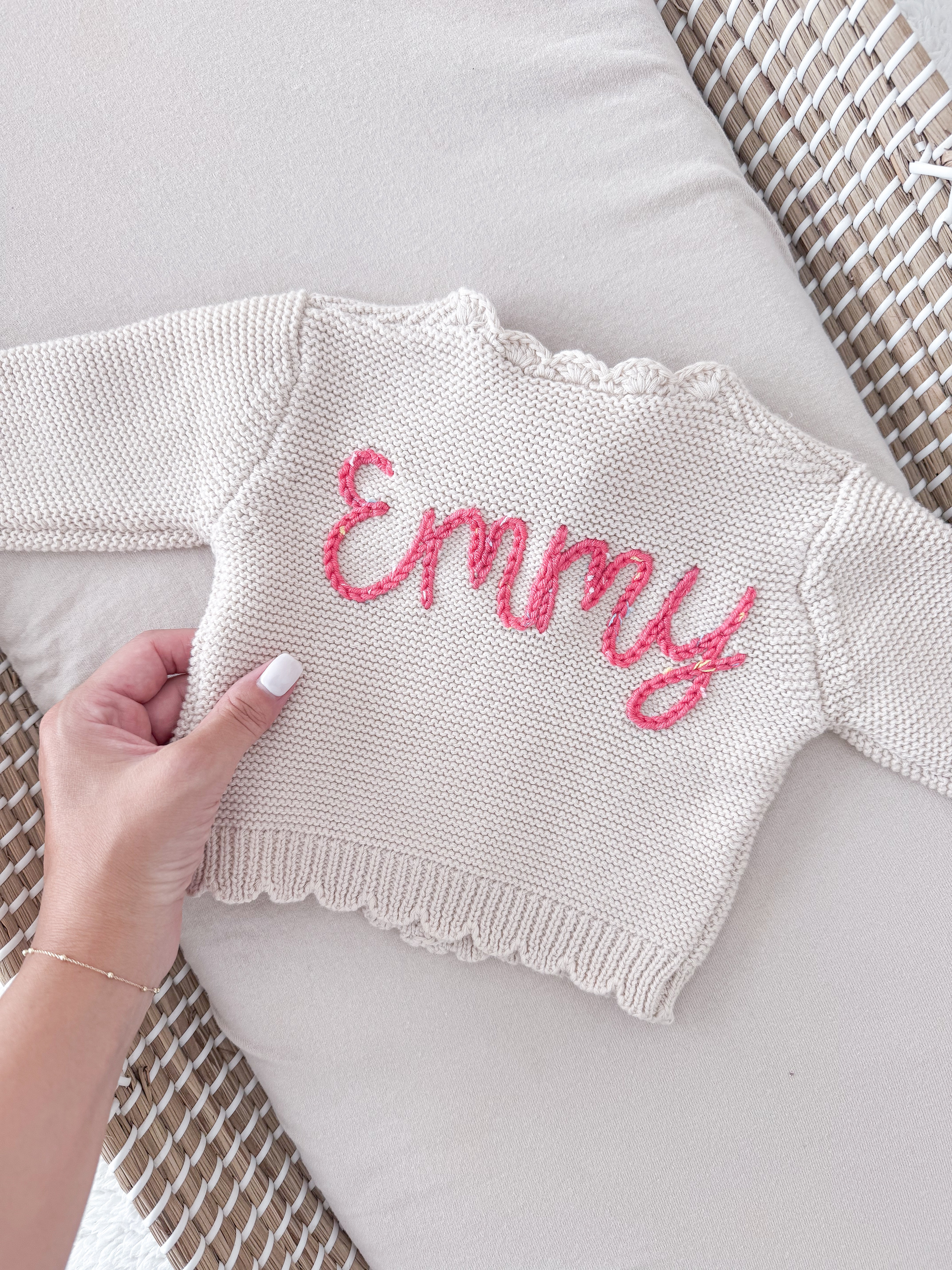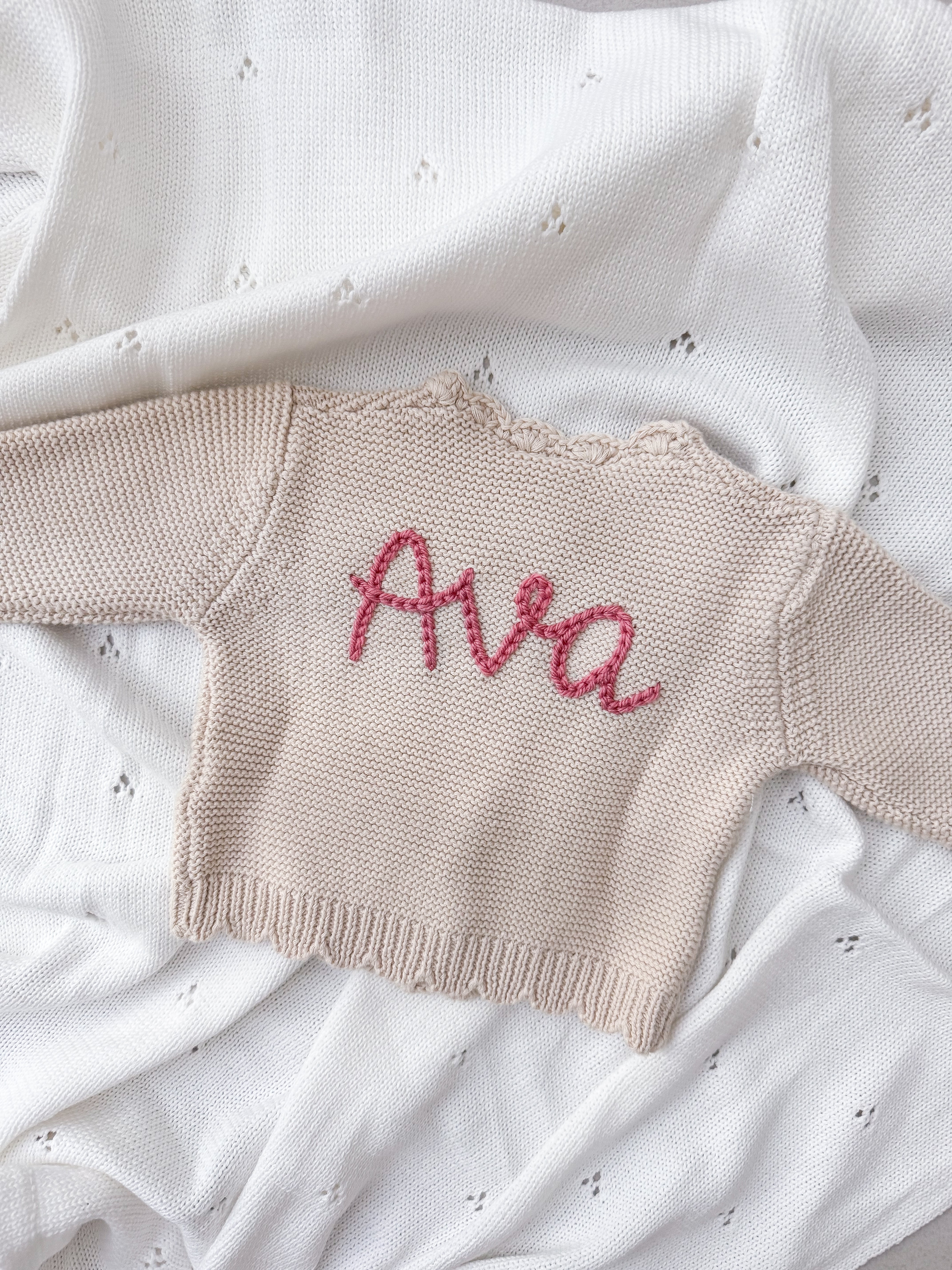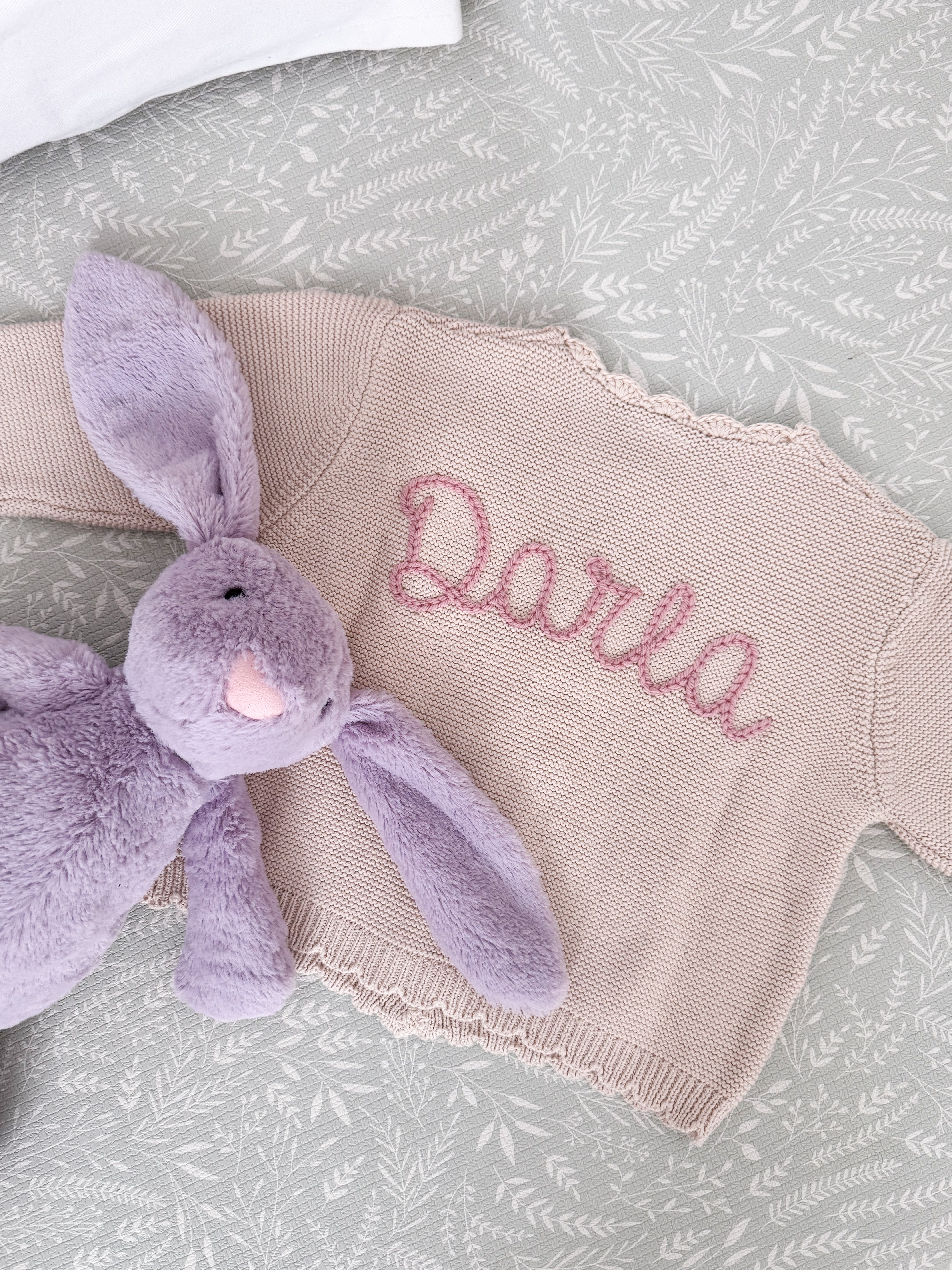 Knitted Scallop Cardigan - Hand Embroidered - Personalise Me