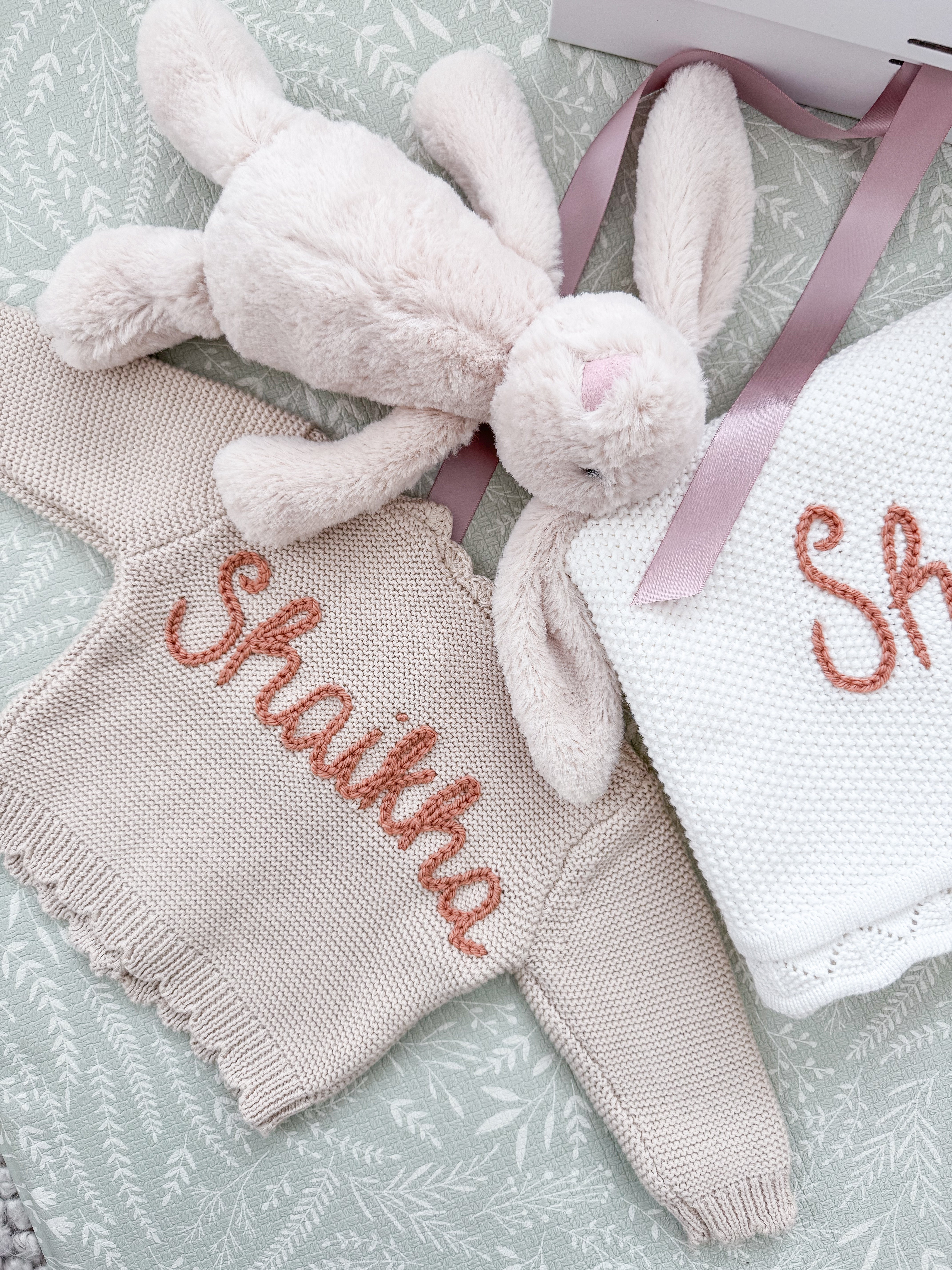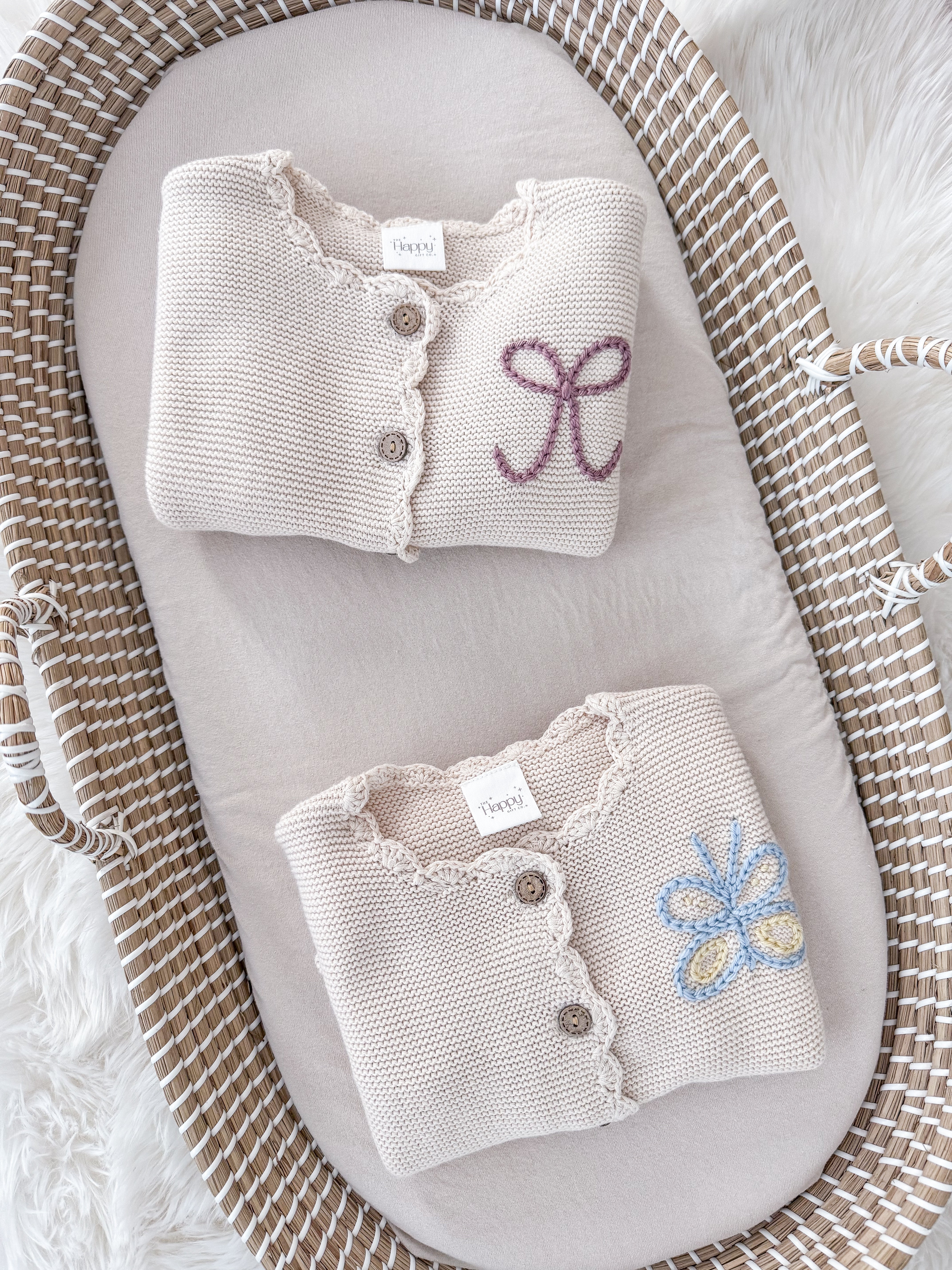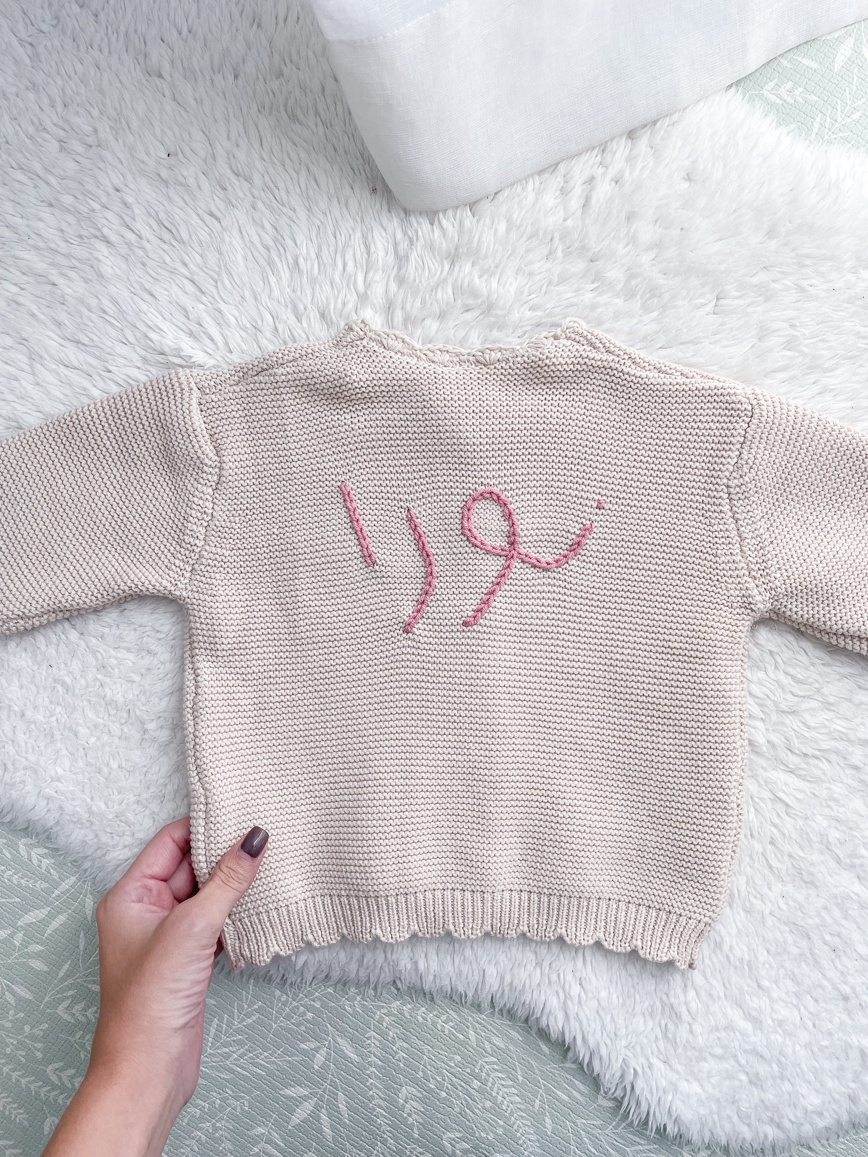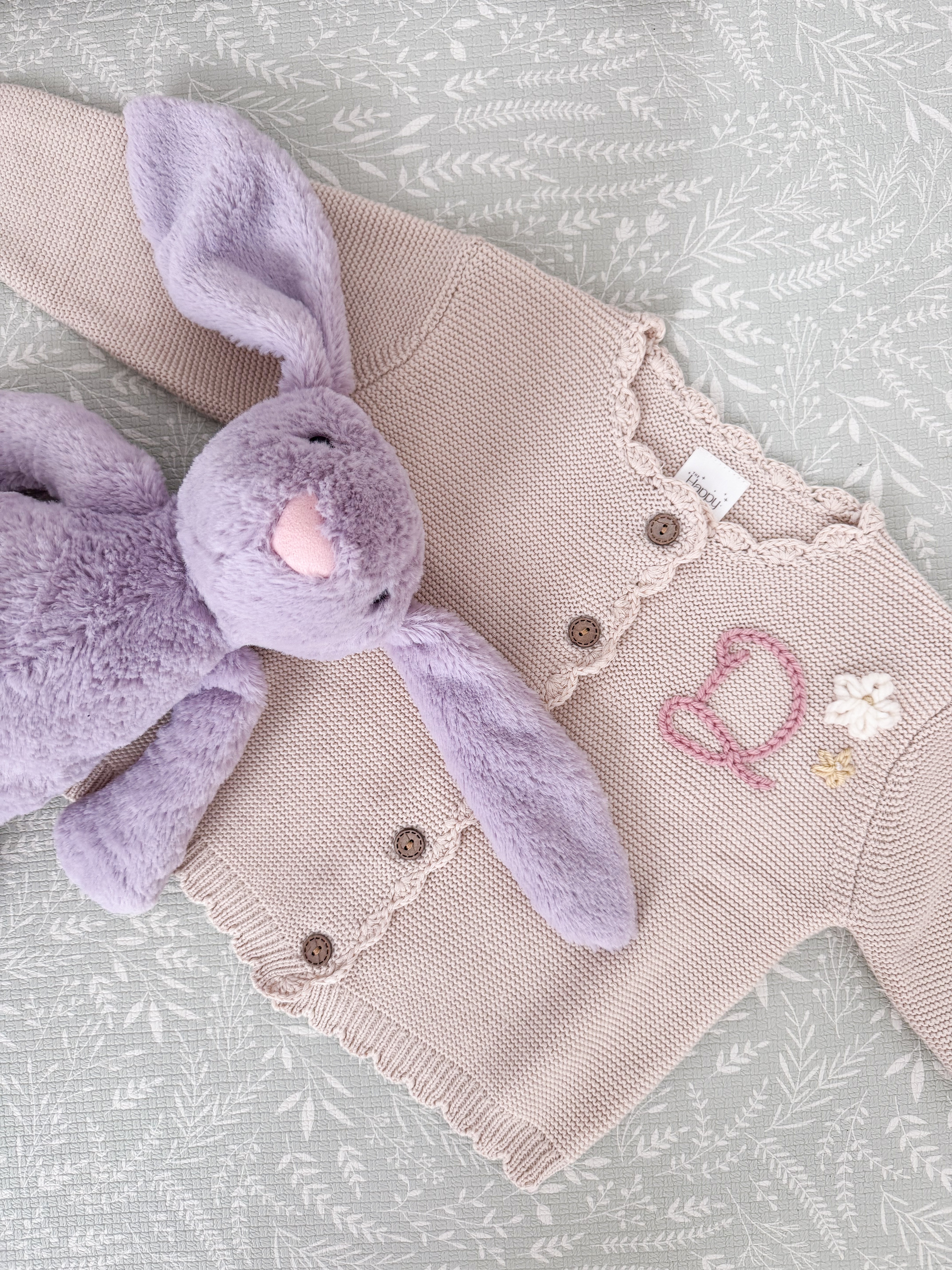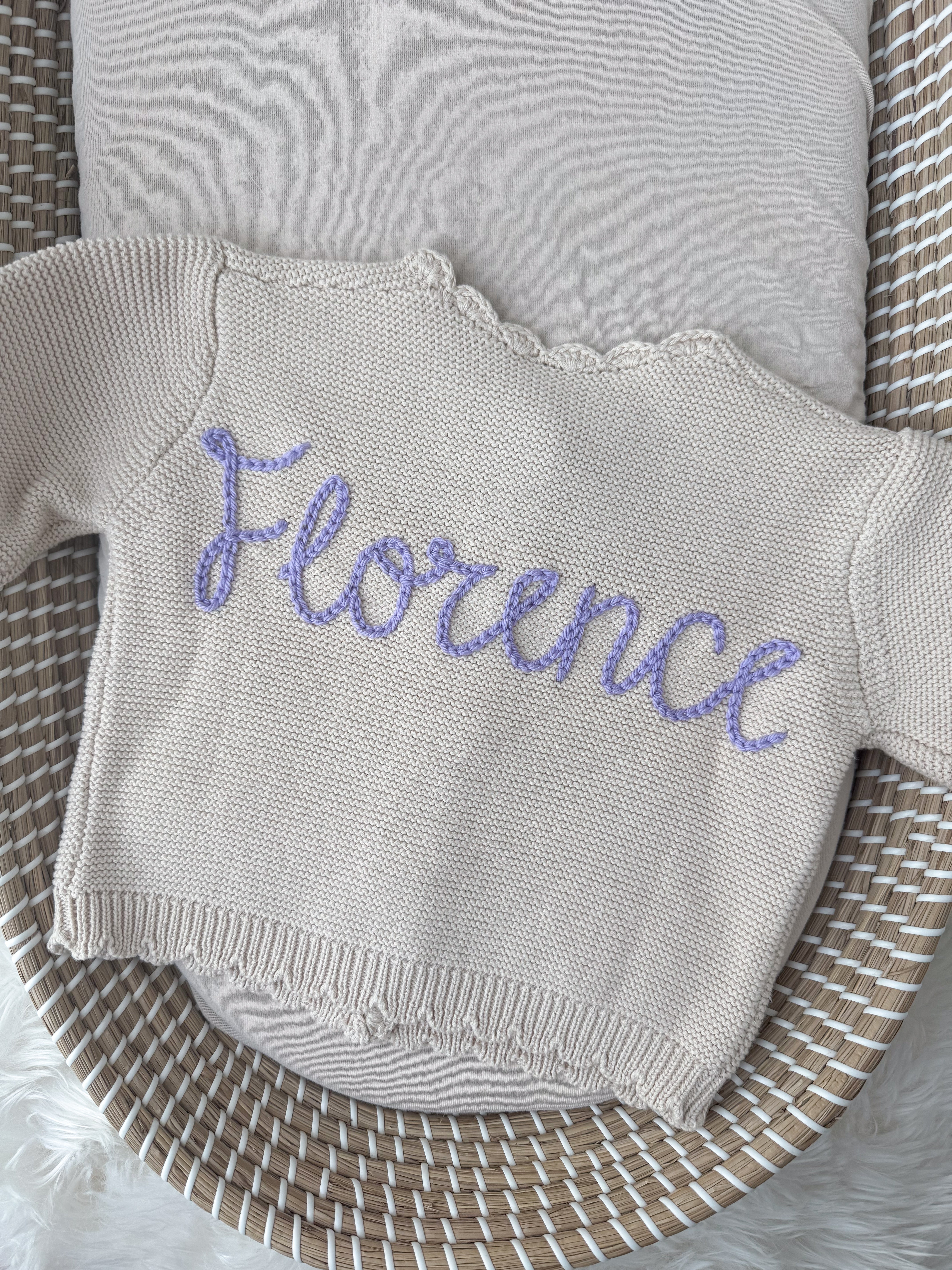 Knitted Scallop Cardigan - Hand Embroidered - Personalise Me