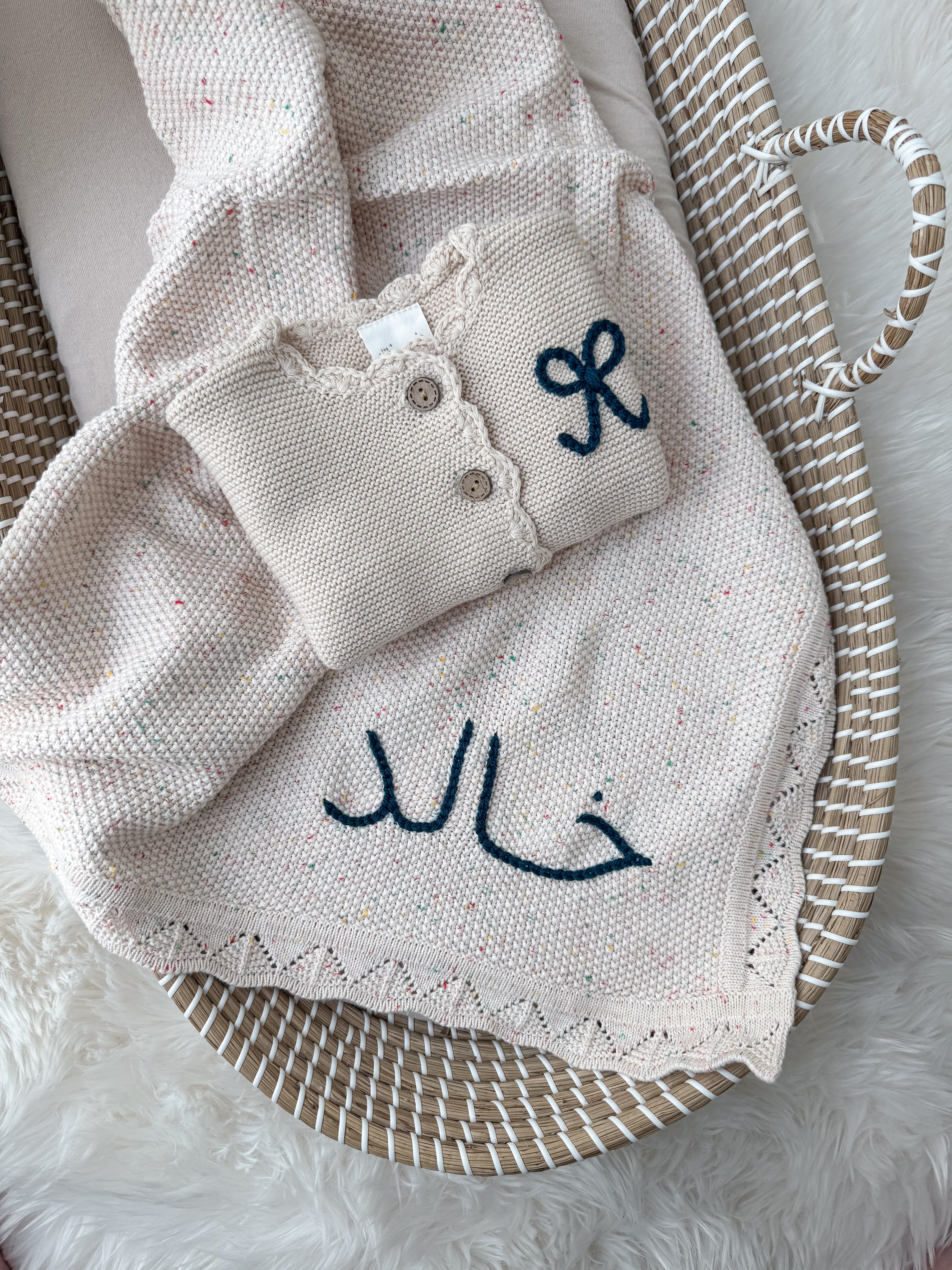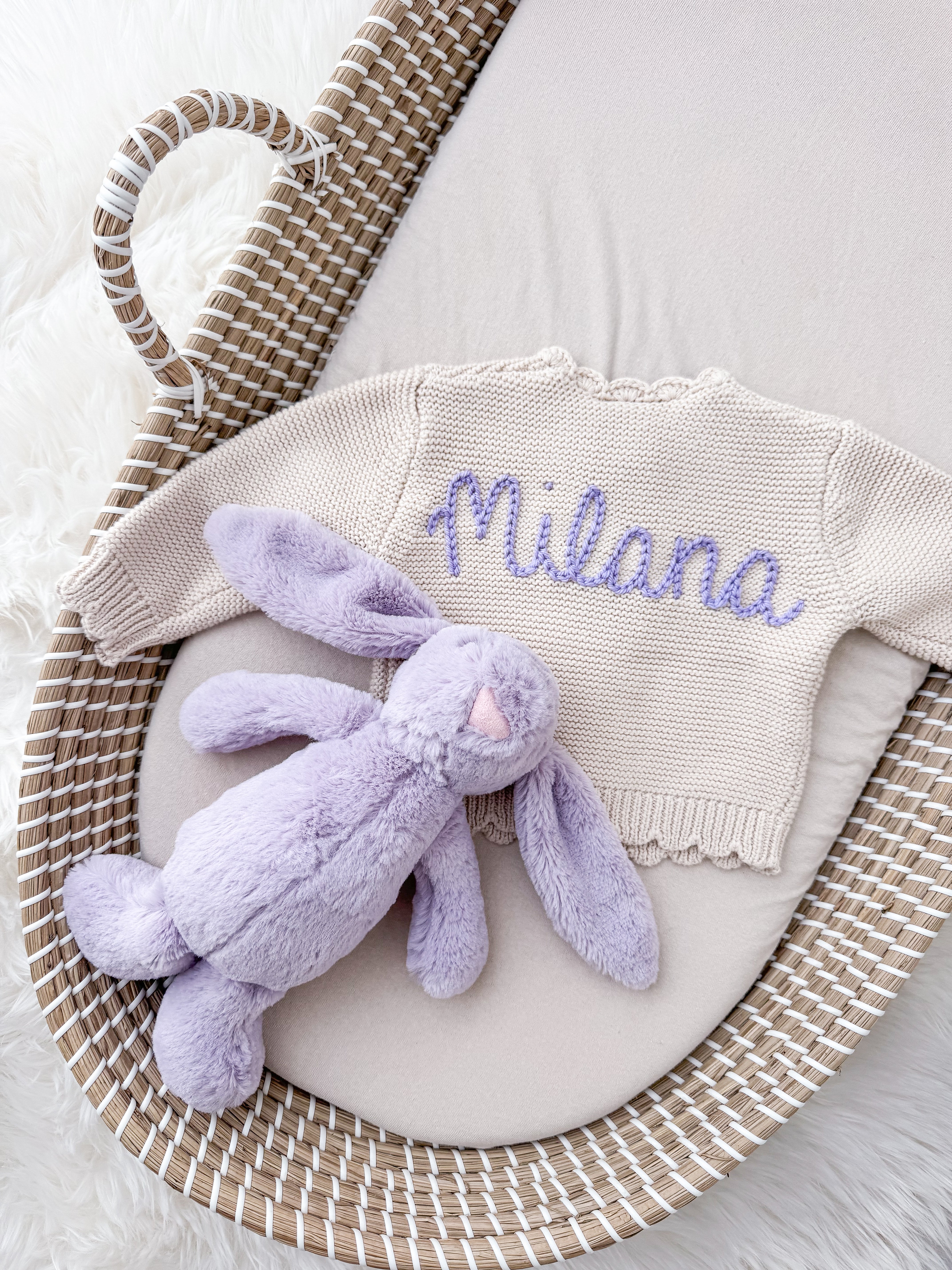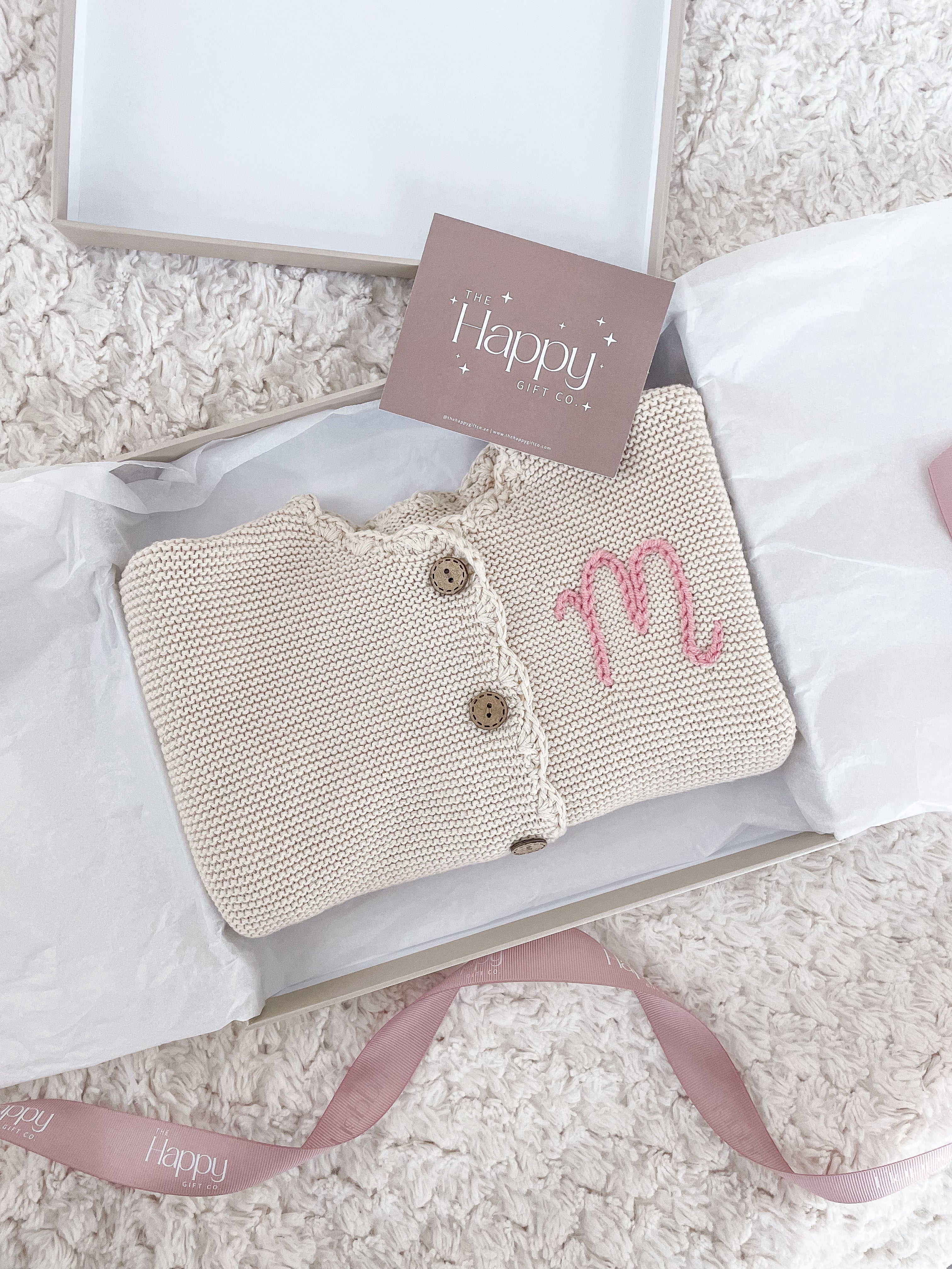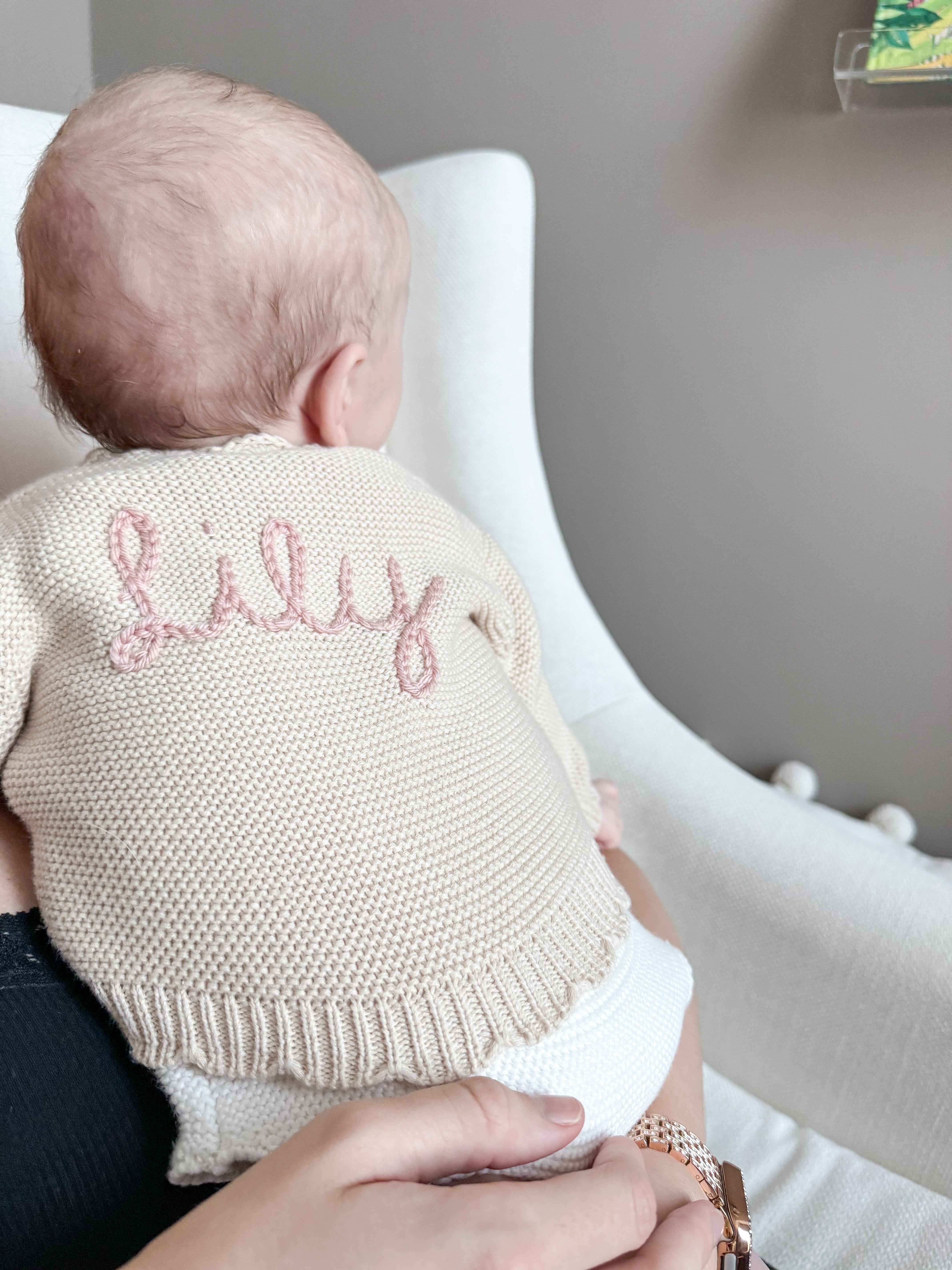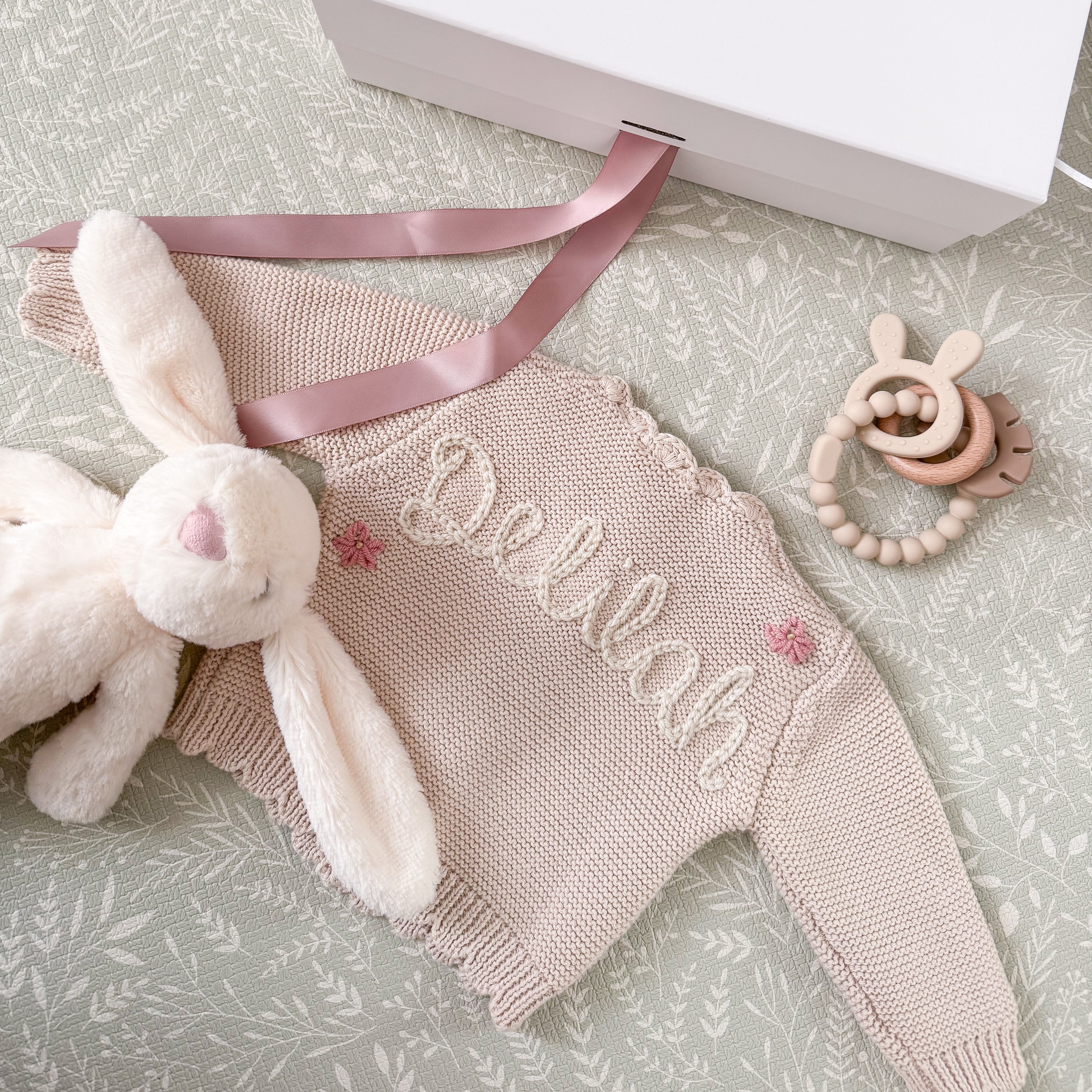 Knitted Scallop Cardigan - Hand Embroidered - Personalise Me