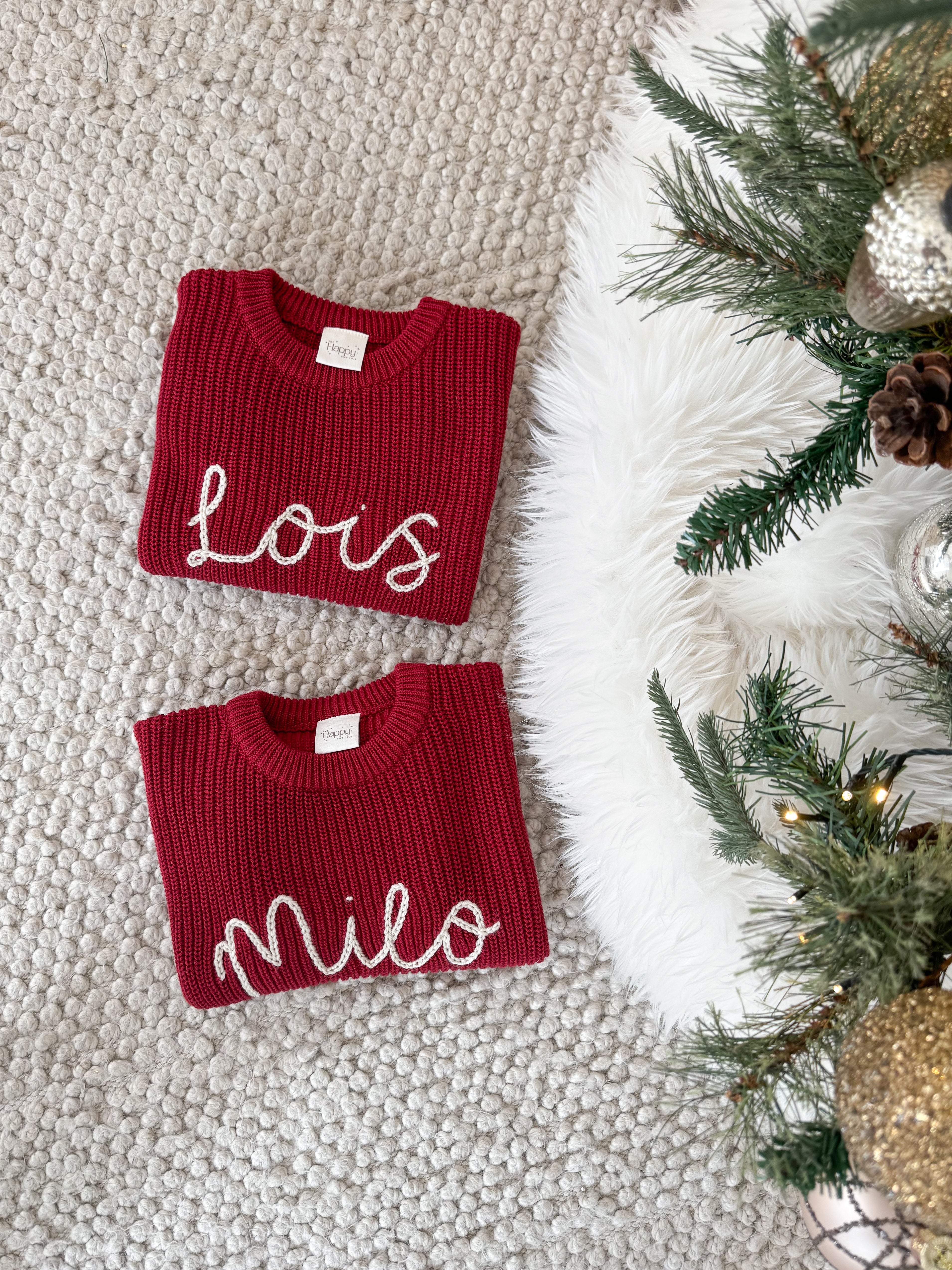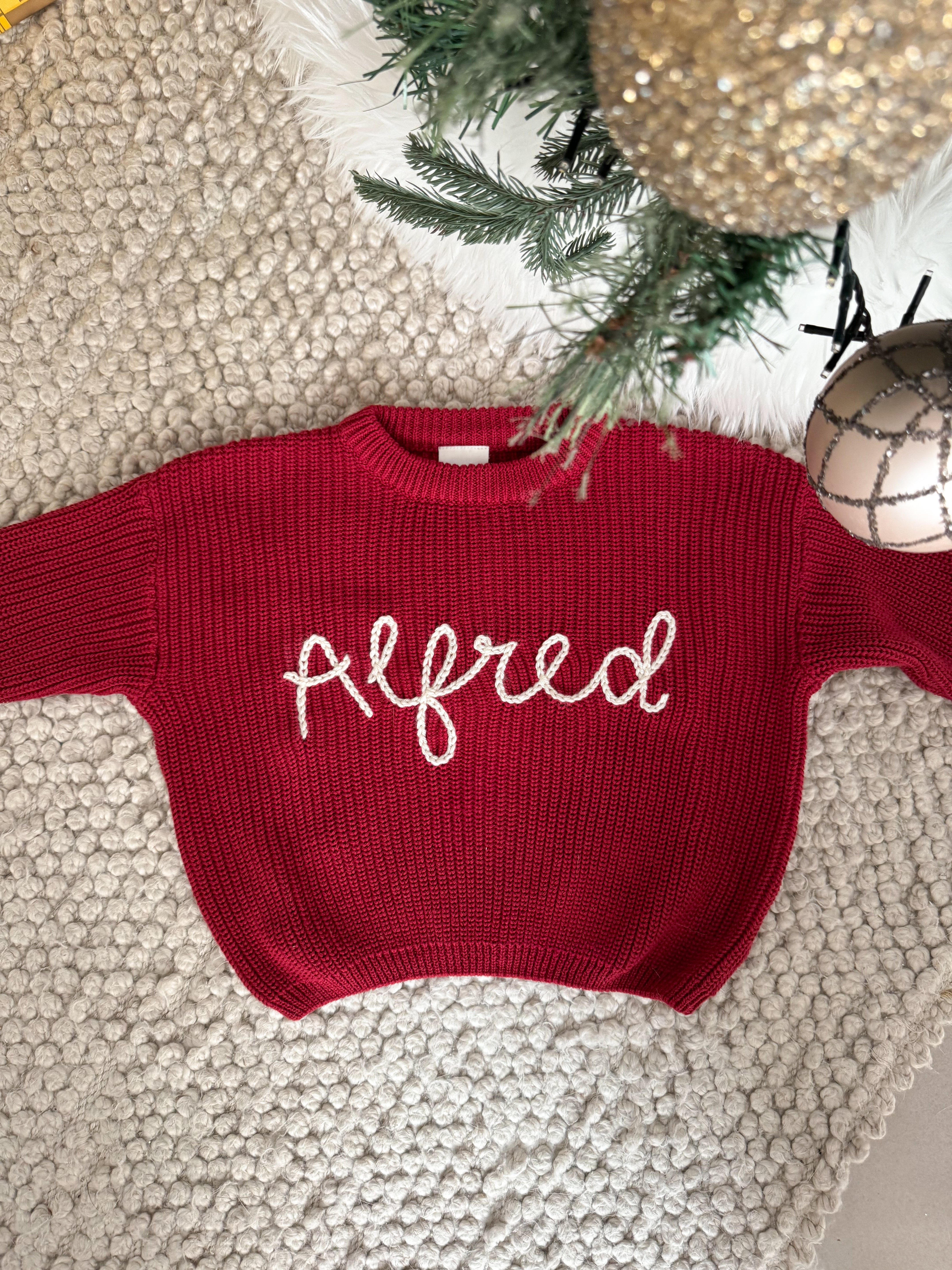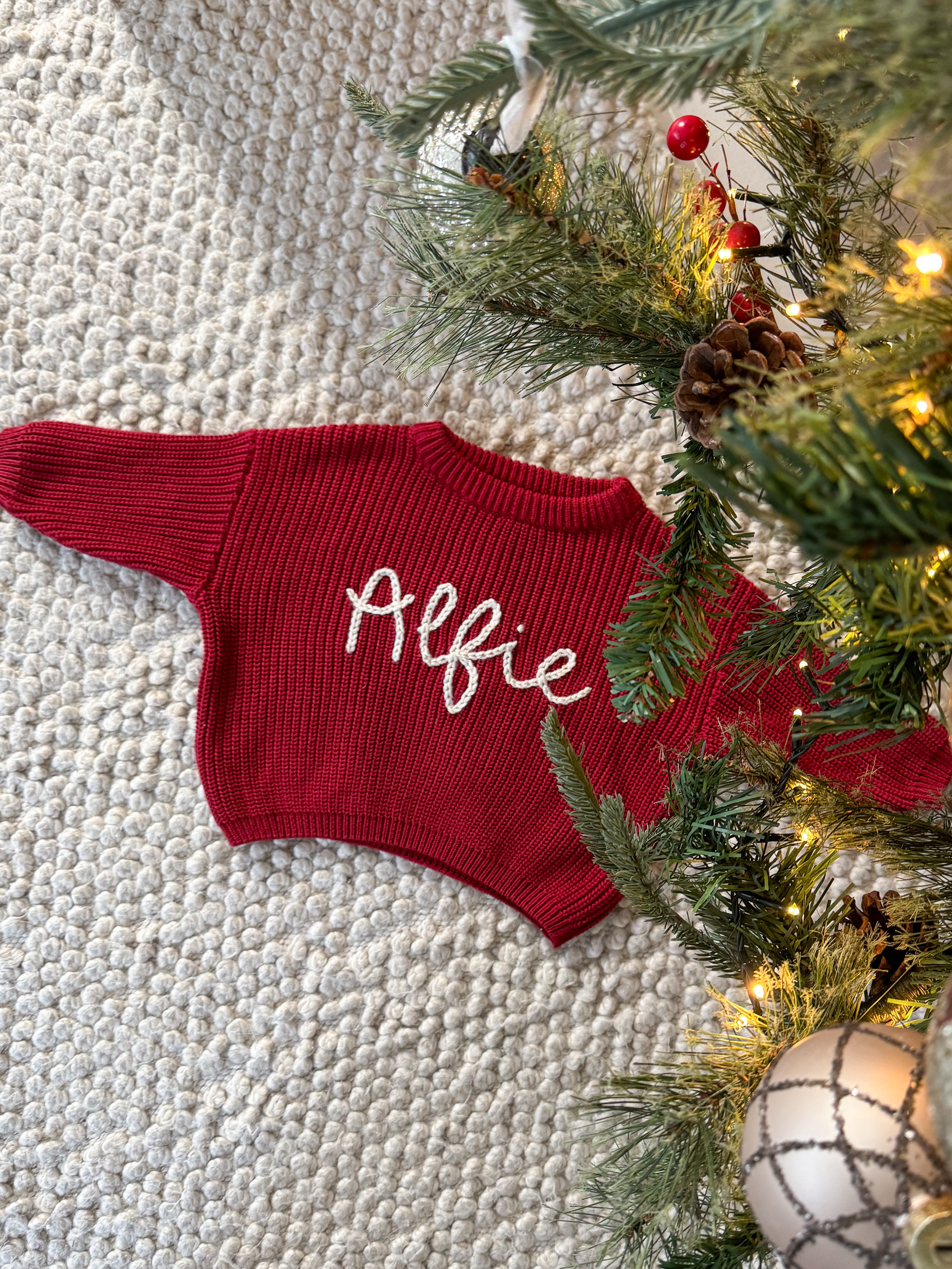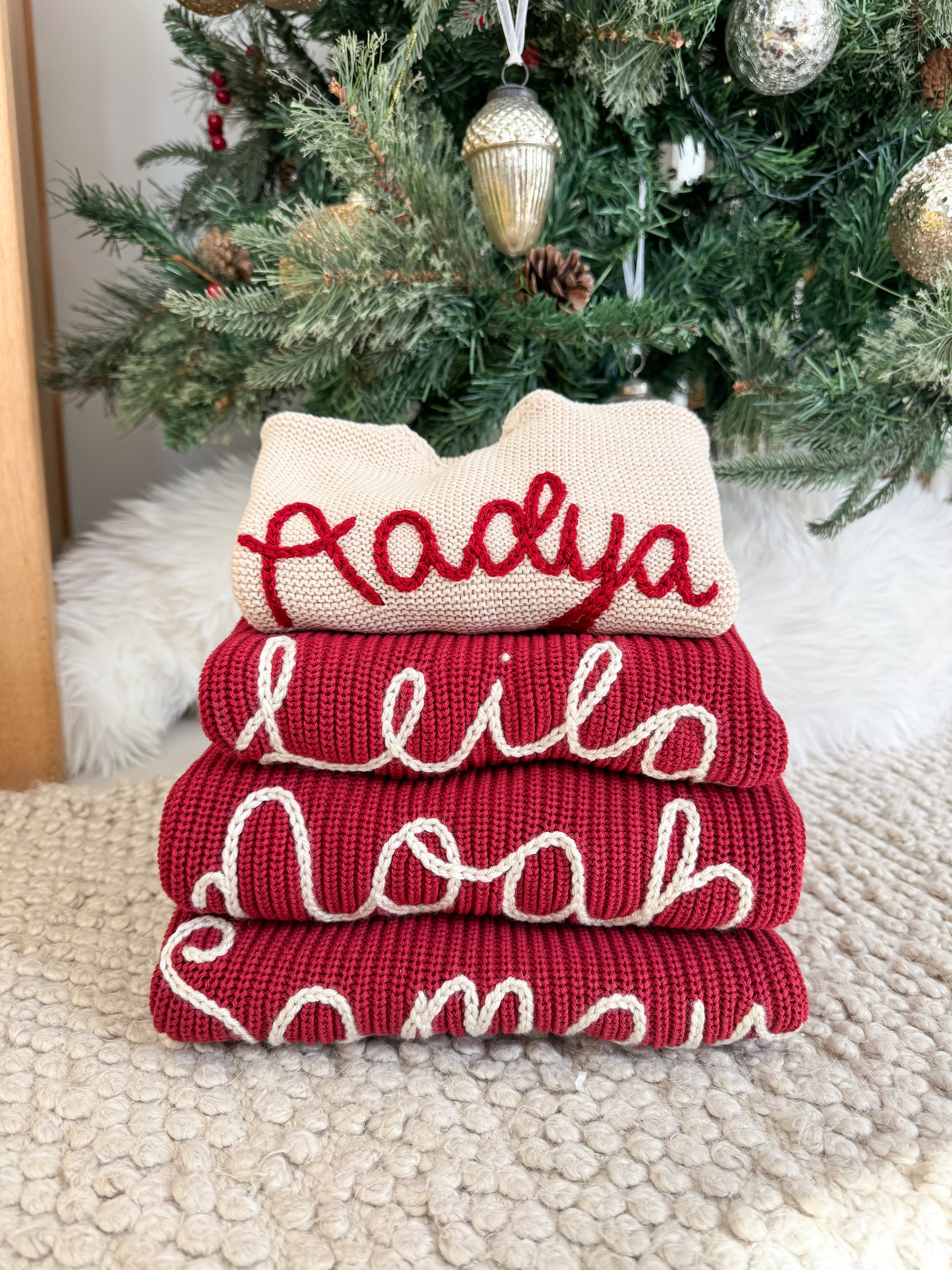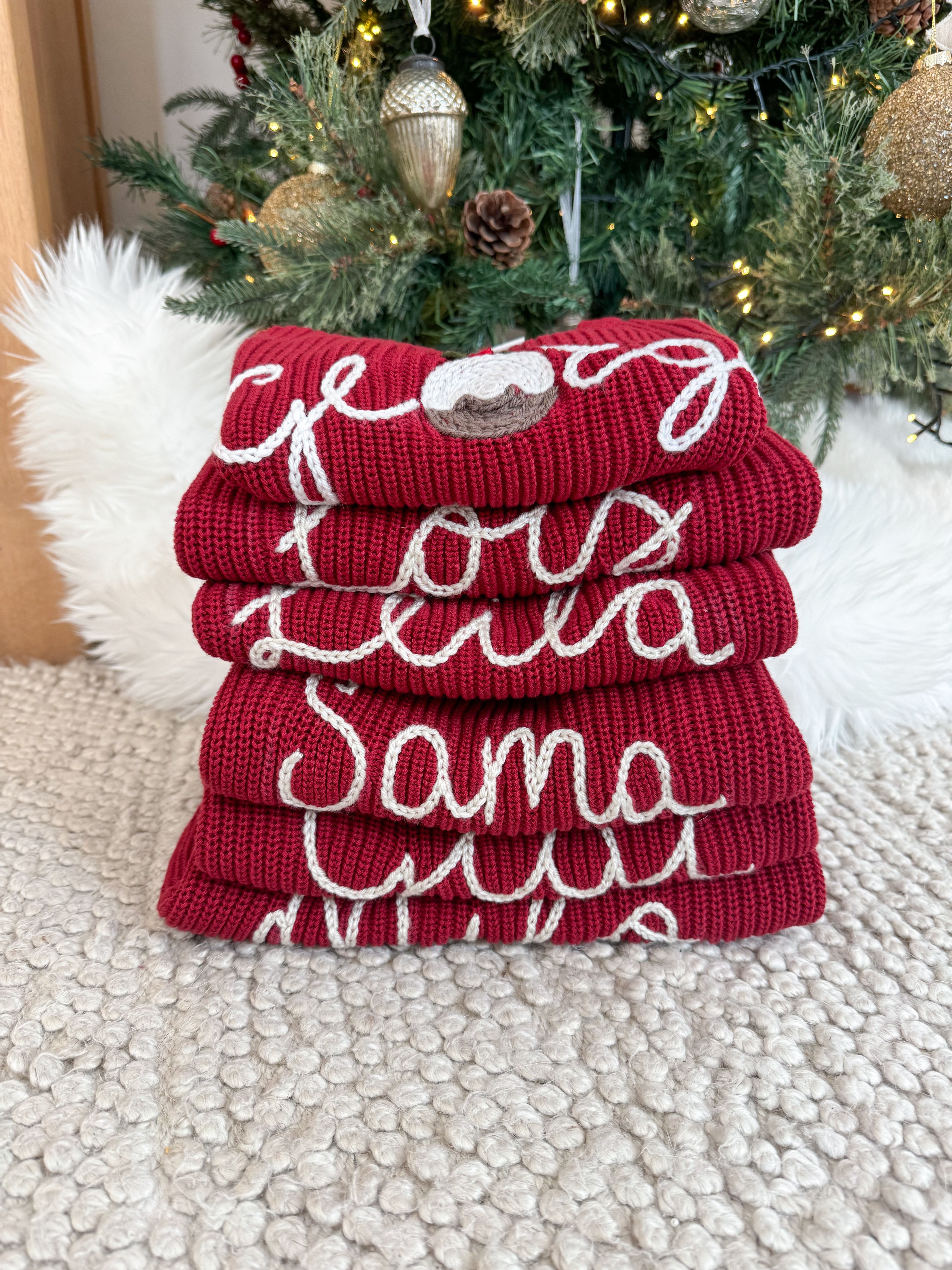 Christmas Knitted Sweater - Hand Embroidered - Personalise Me