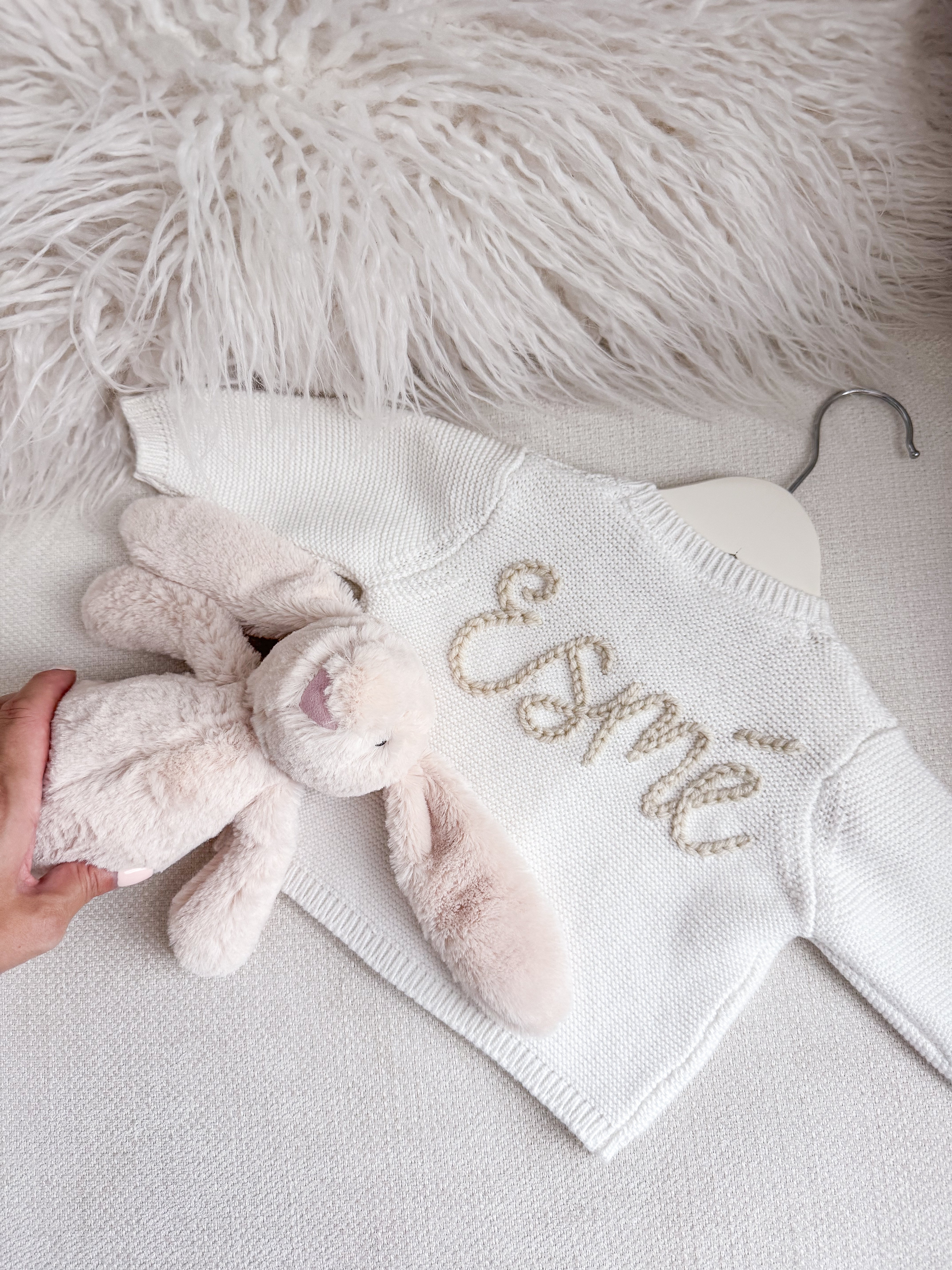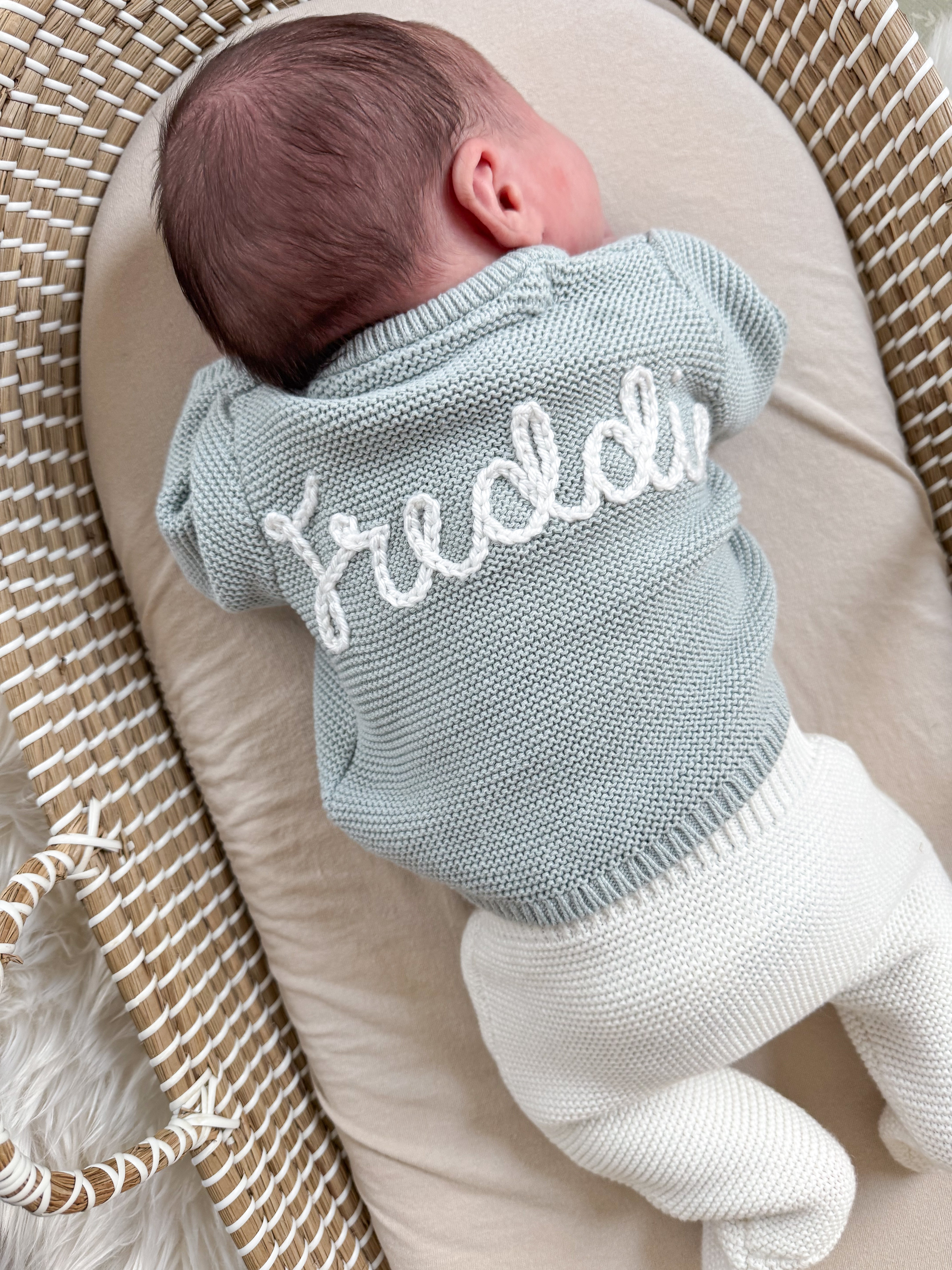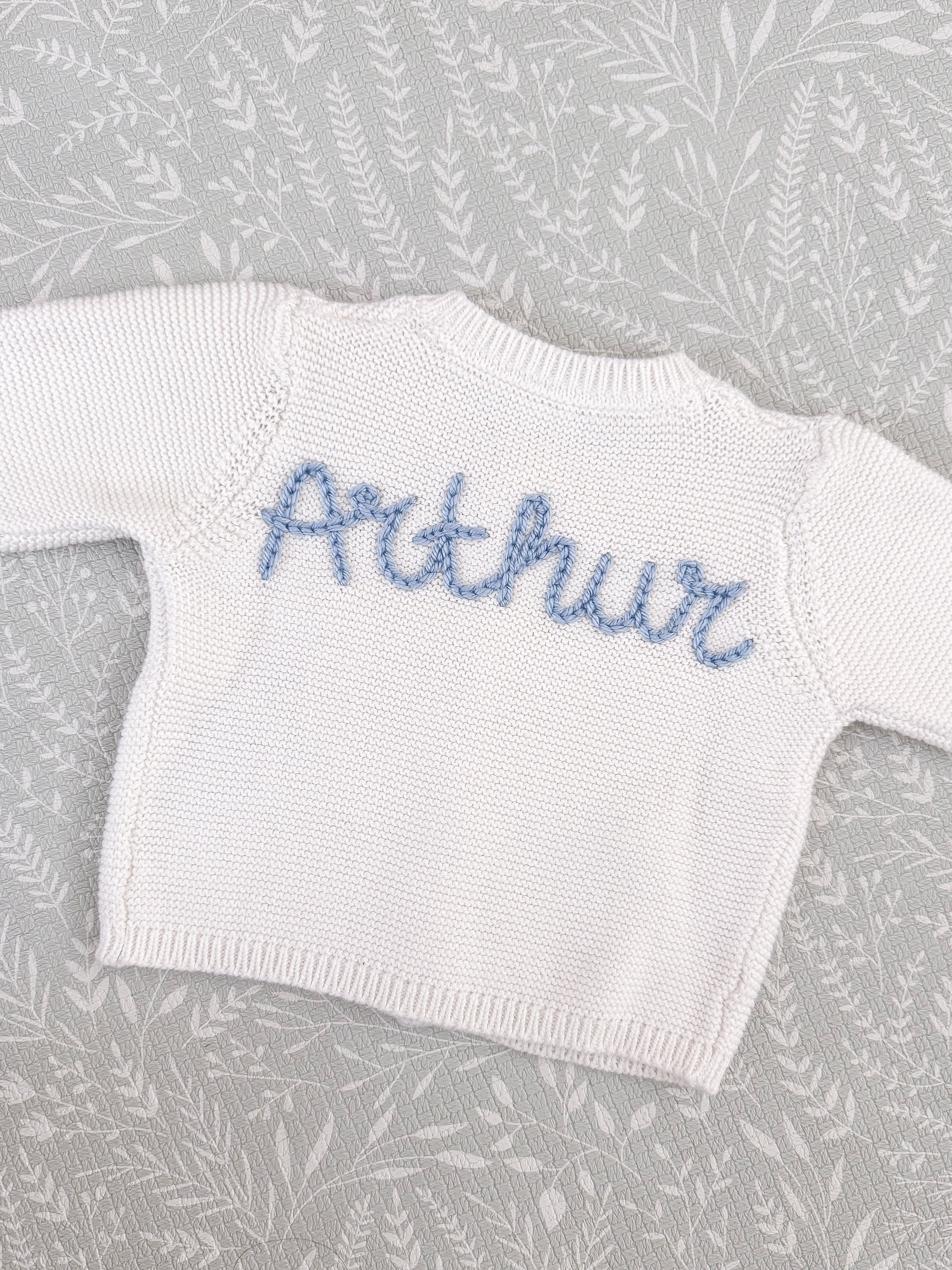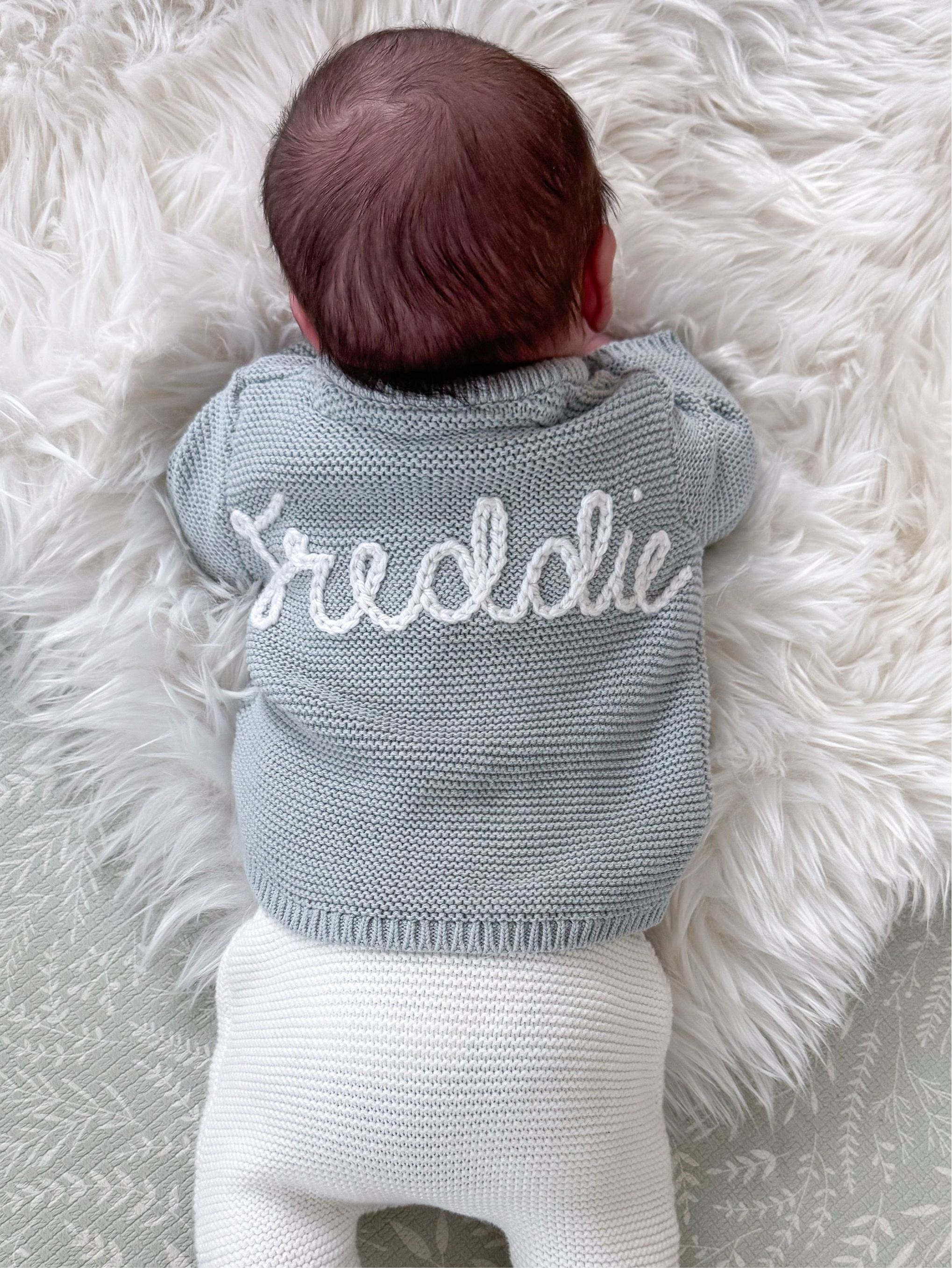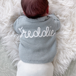 Newborn Knitted Cardigan - Hand Embroidered Name - Personalise Me