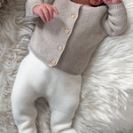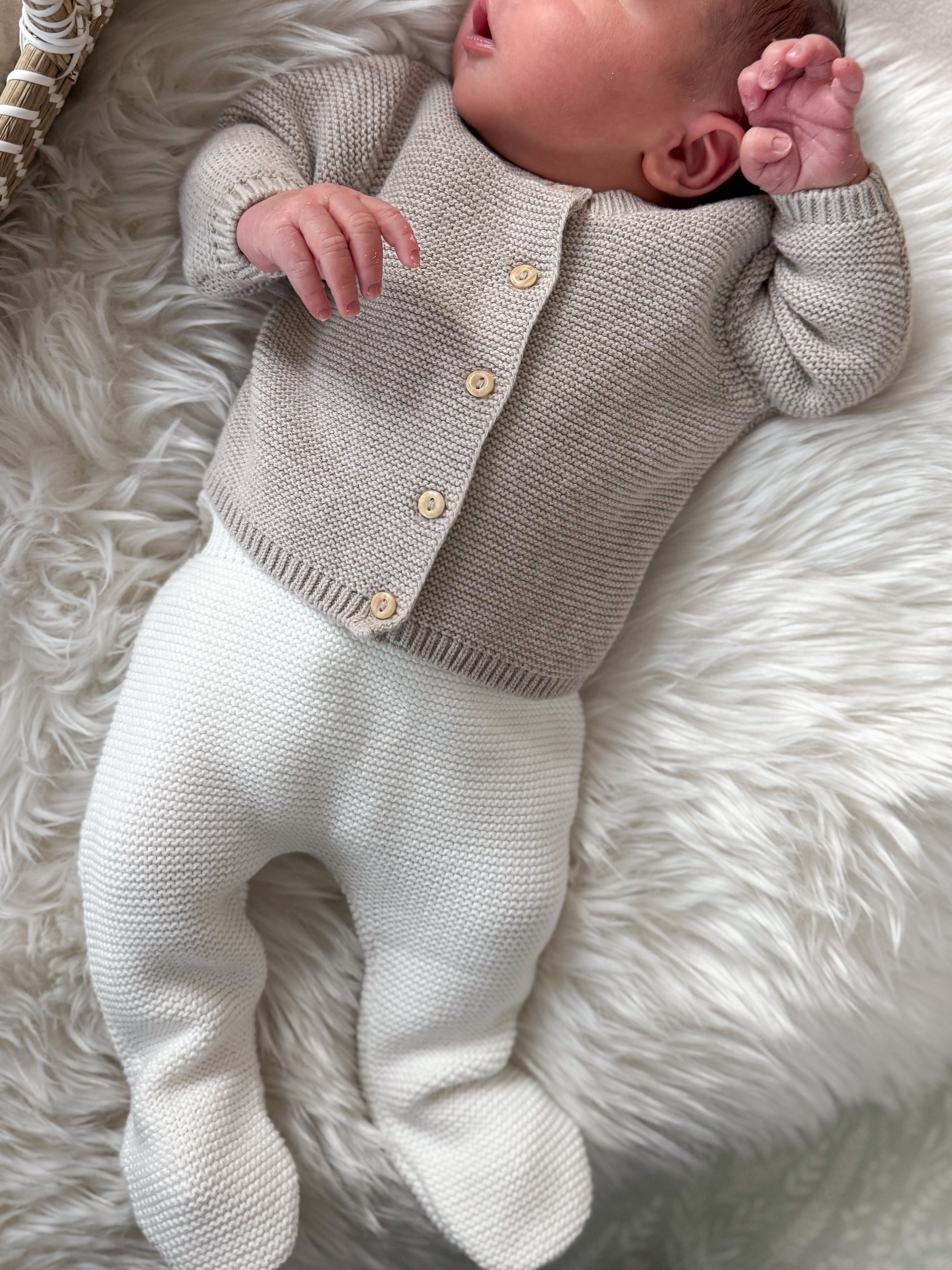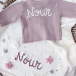 Introducing our Newborn Knitted Cardigan! Hand embroidered with your baby's name for a personalized touch. Announce your little one's arrival with this cozy, stylish cardigan.
