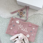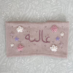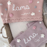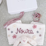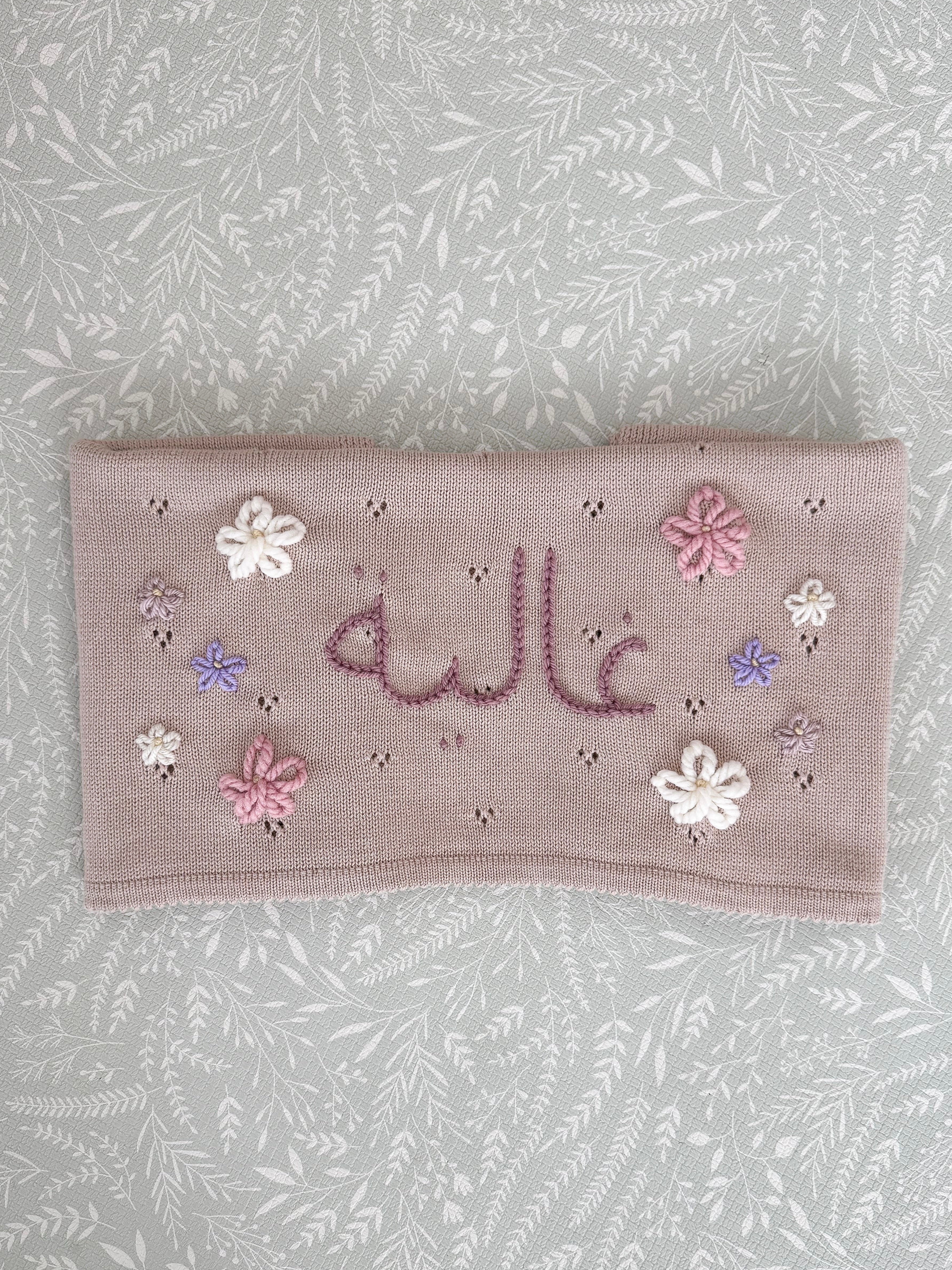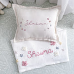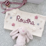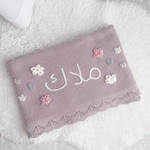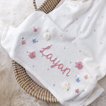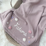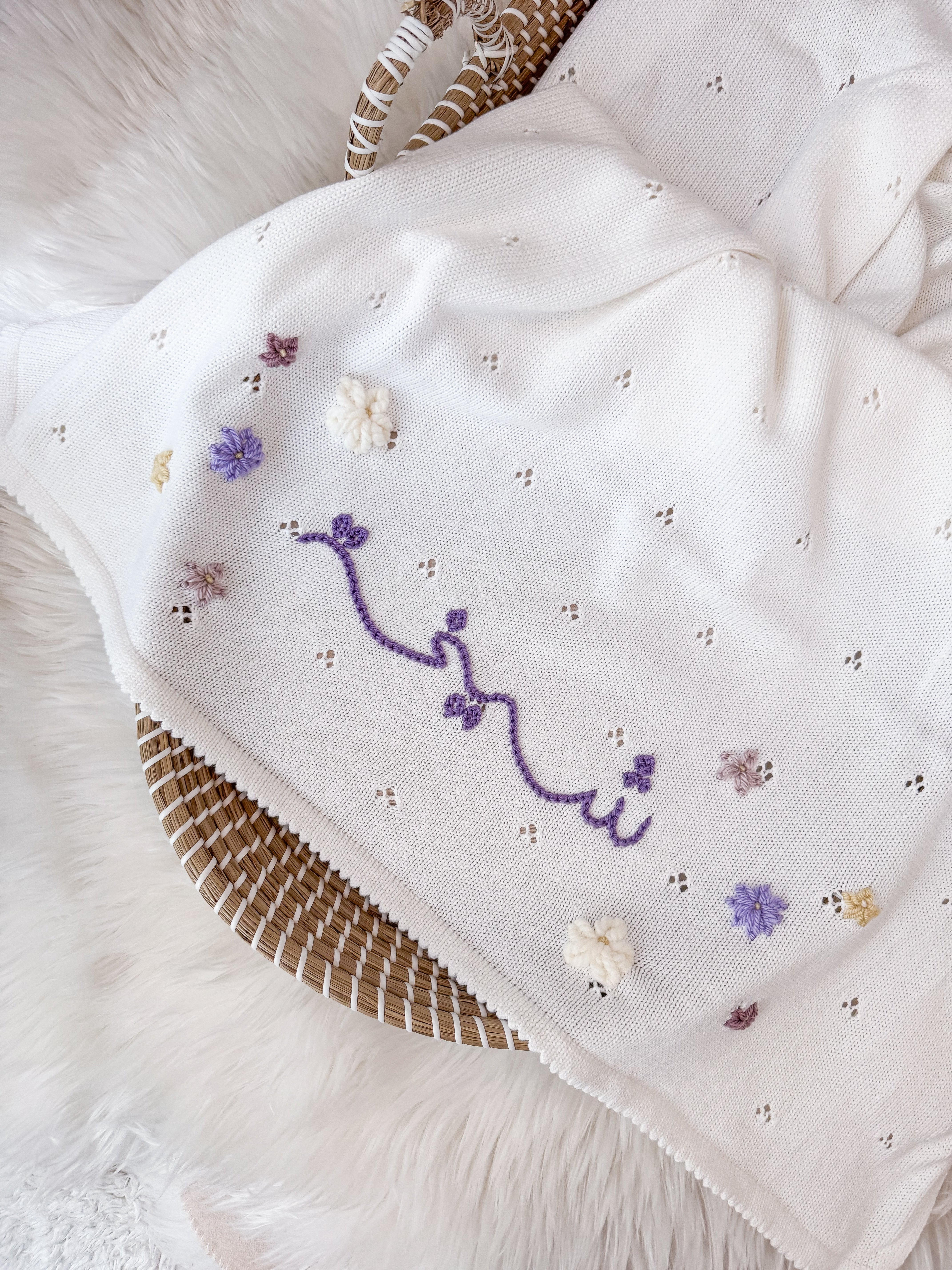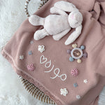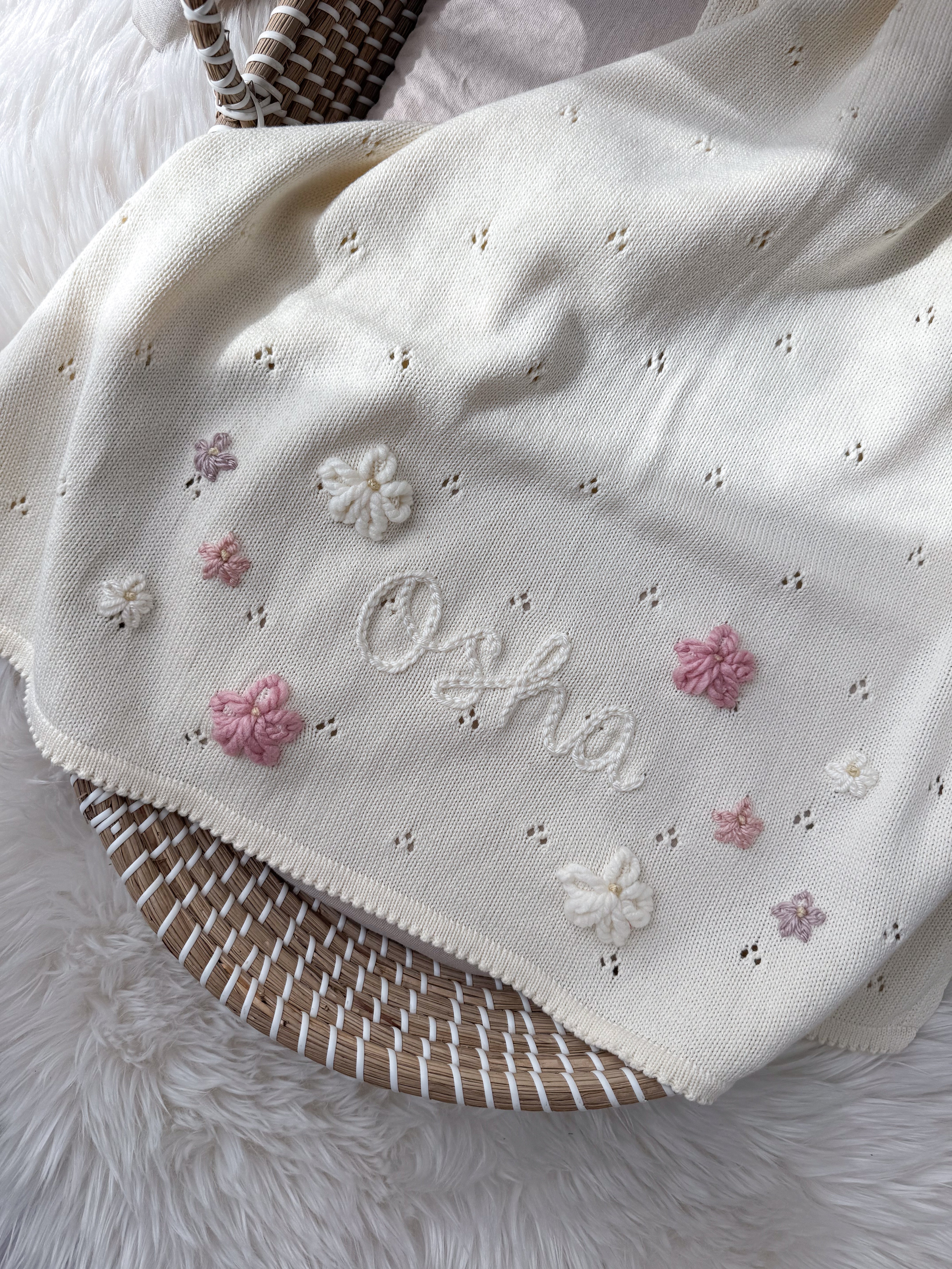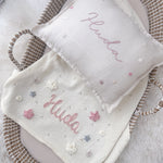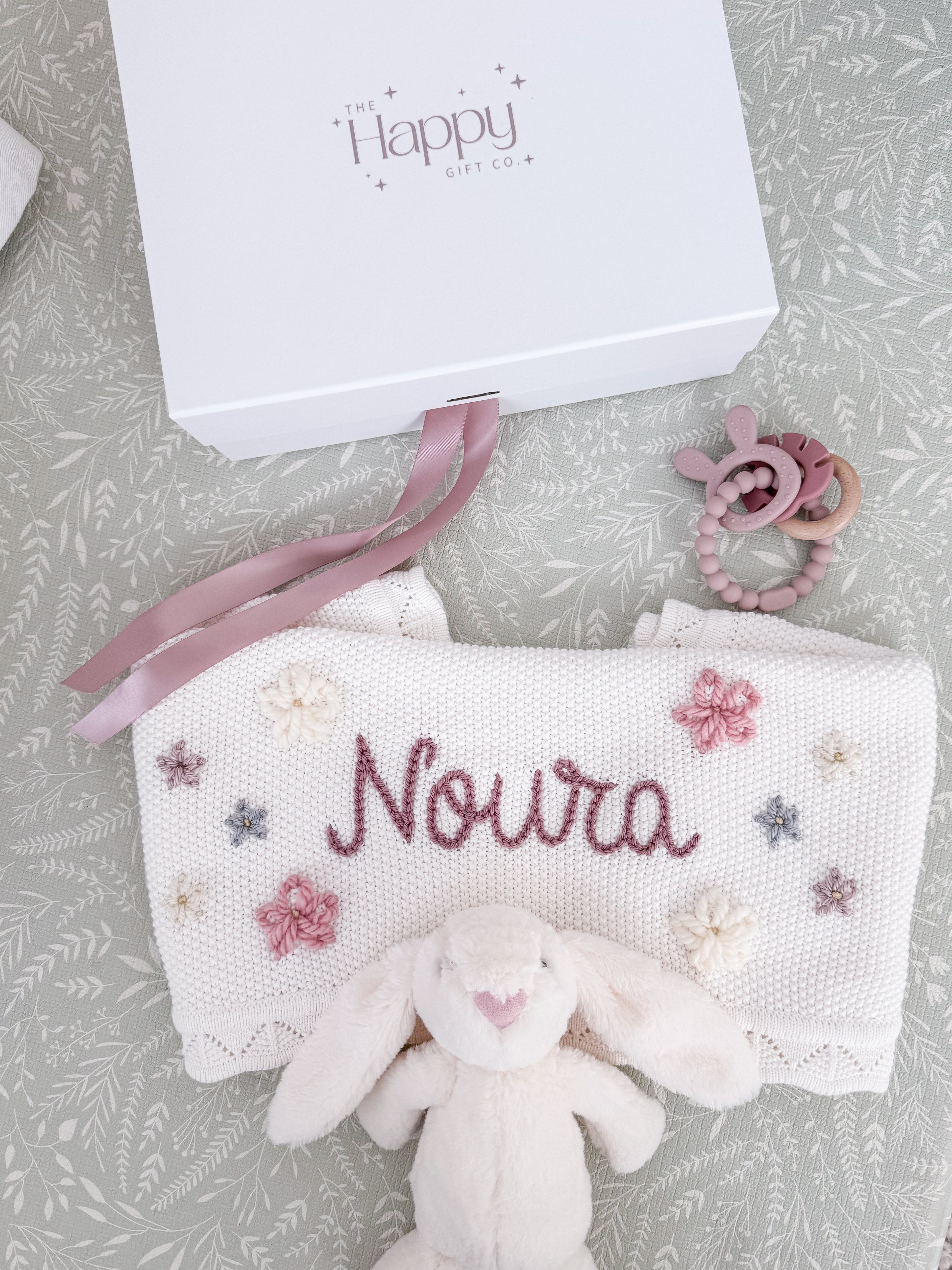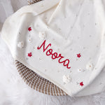 Names are hand-embroidered and are sewn along the bottom centre of the blanket, if you would like the name to be placed in another position on the blanket, please let us know in order notes box below.