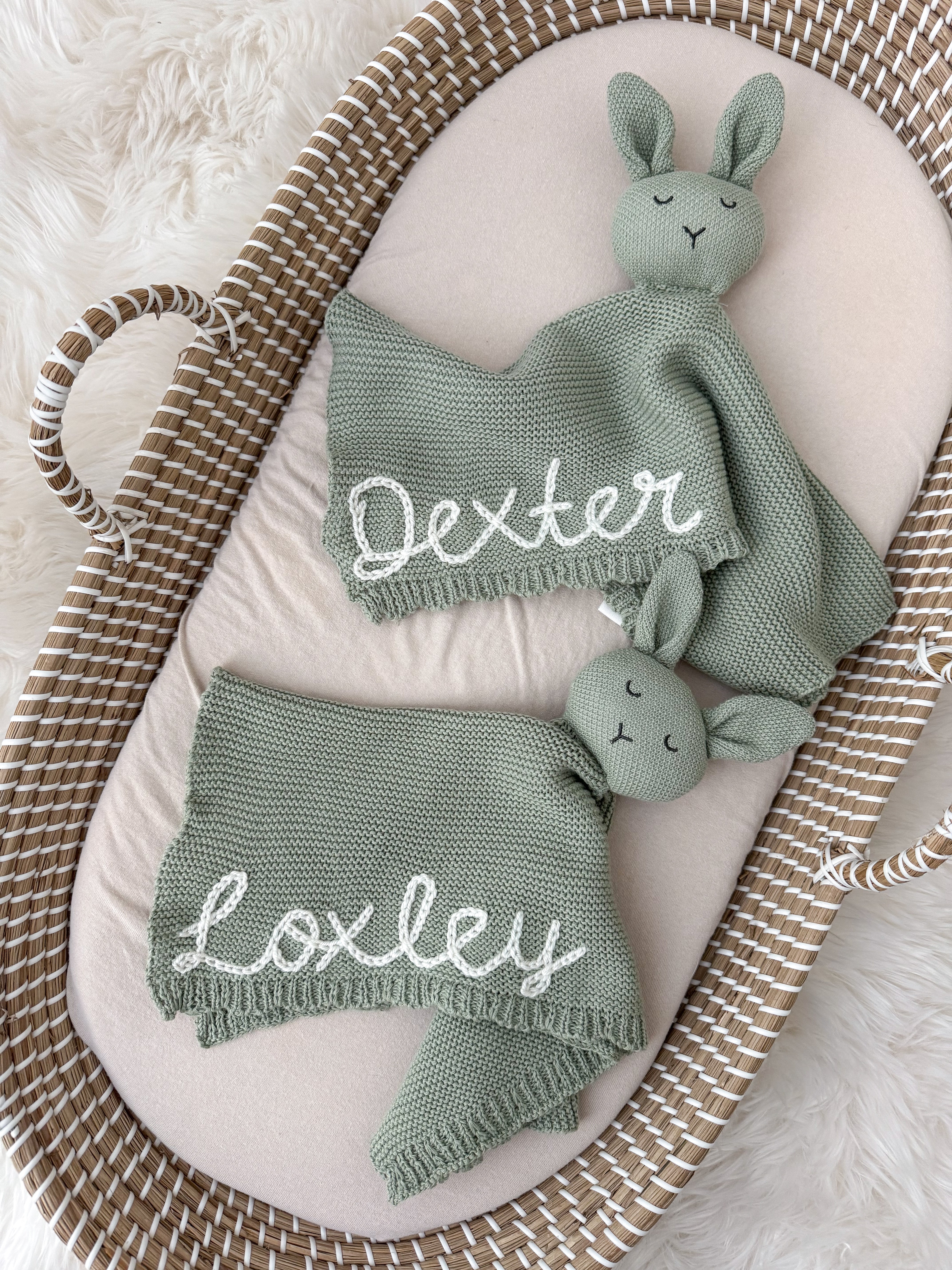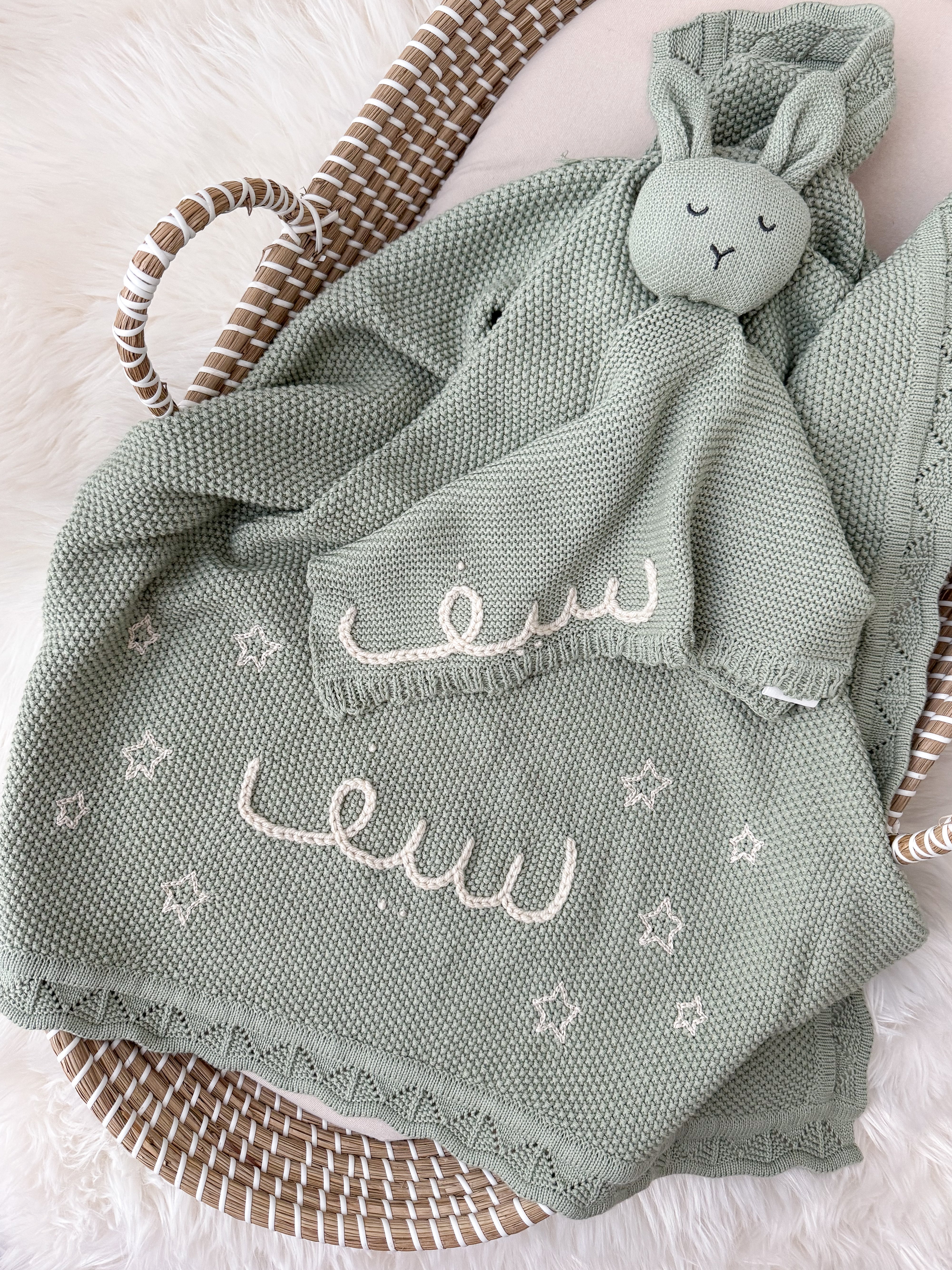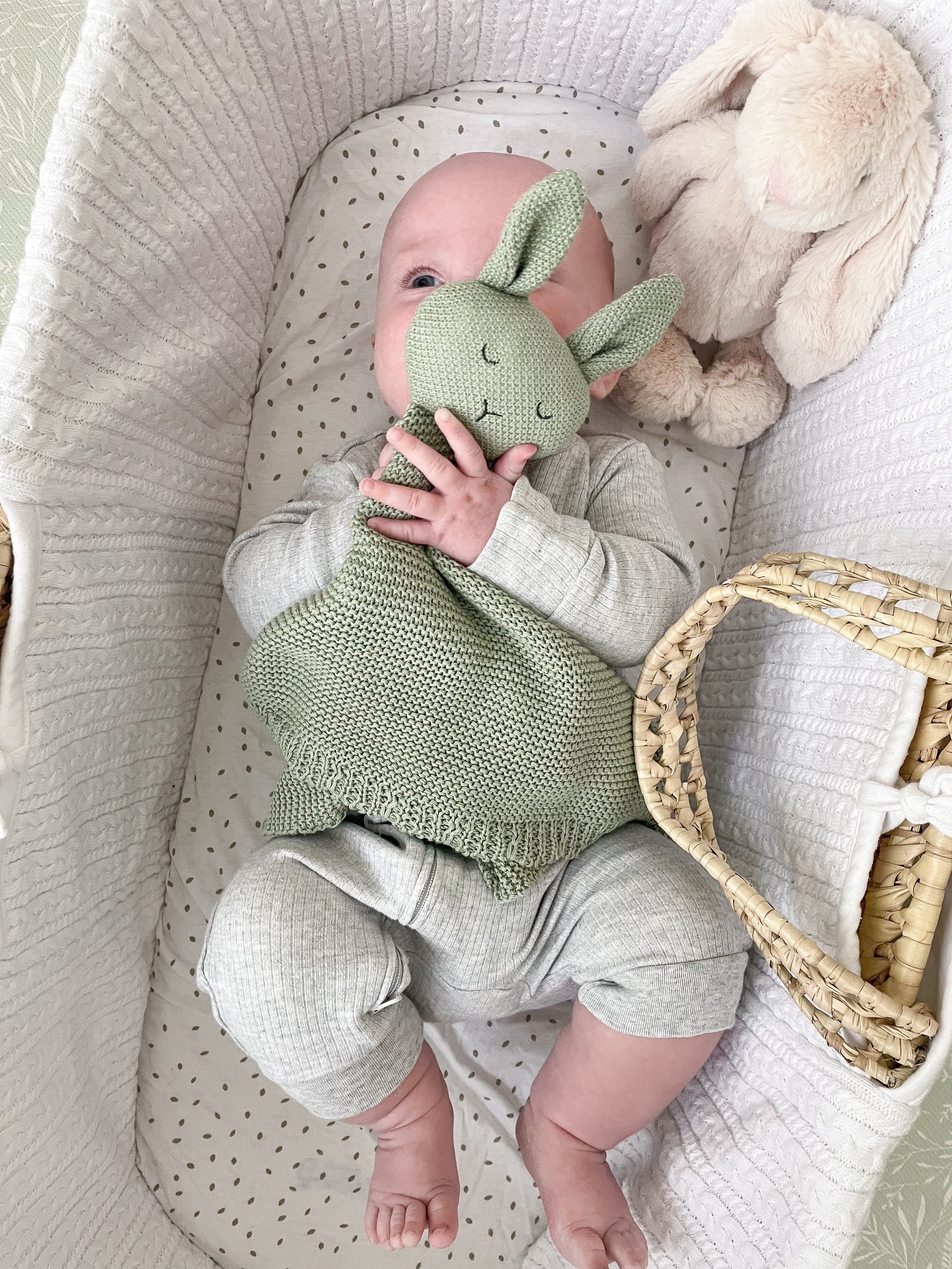 Knitted Cotton Bunny Dou-Dou Comforter - Green
