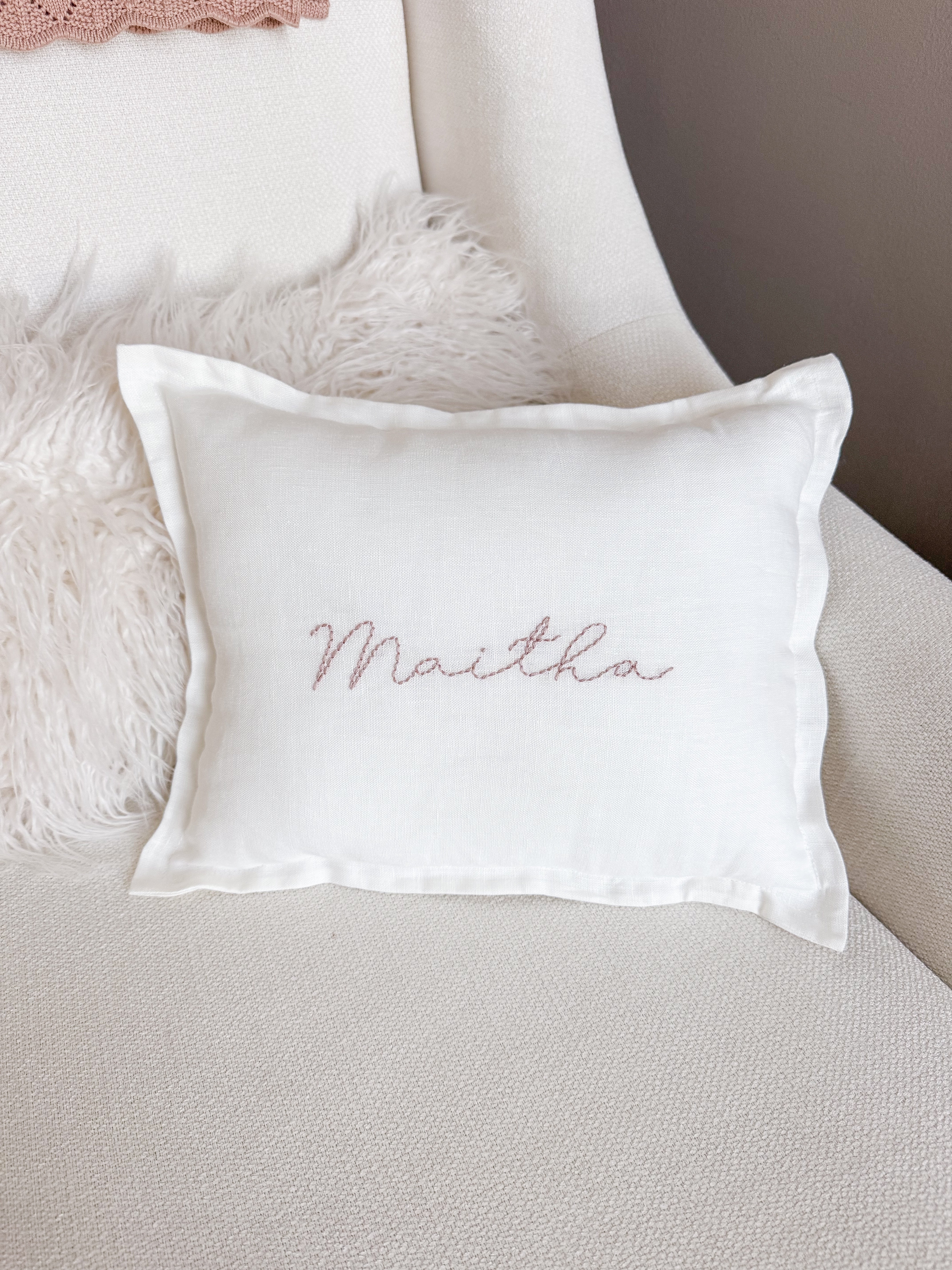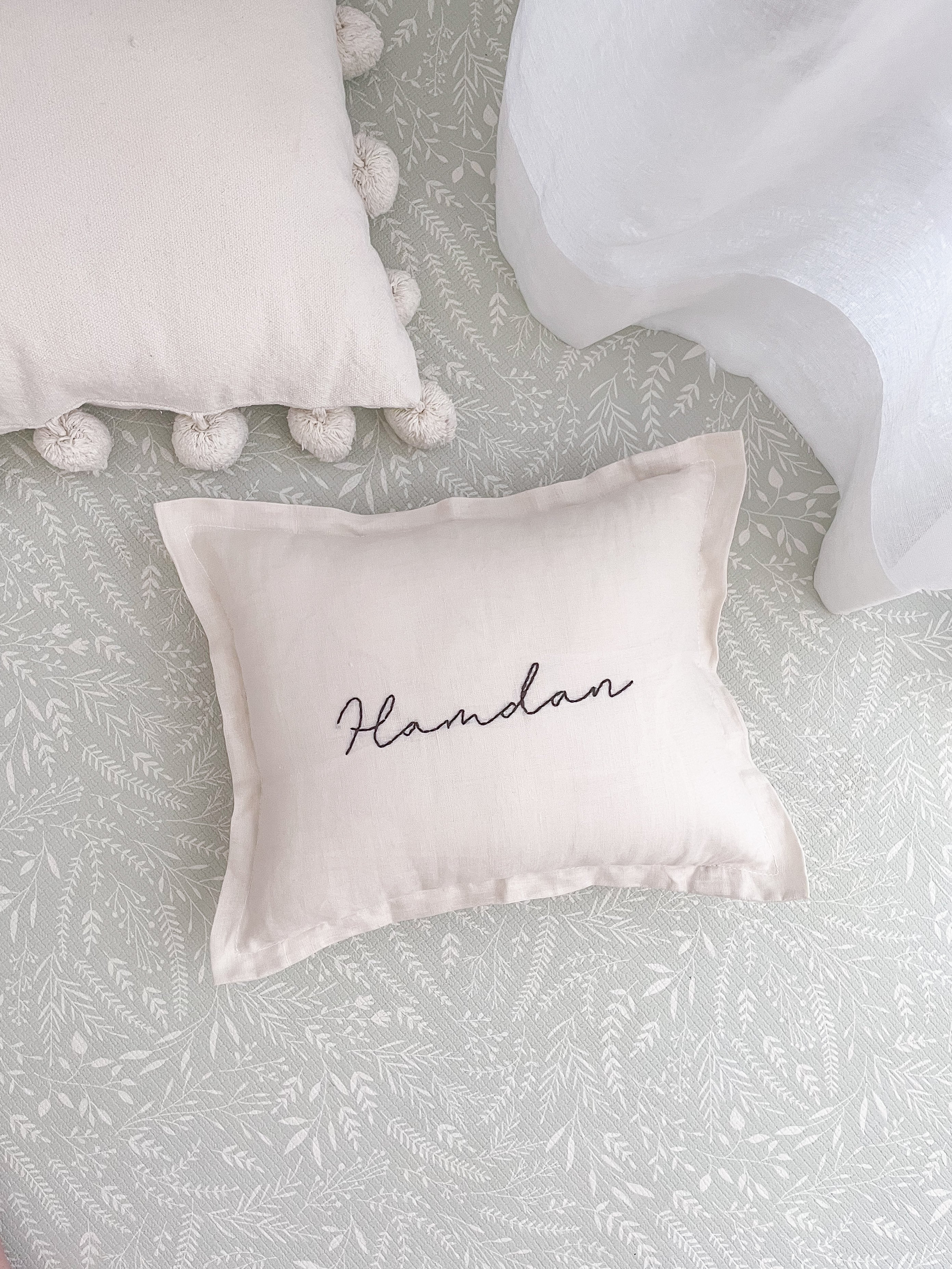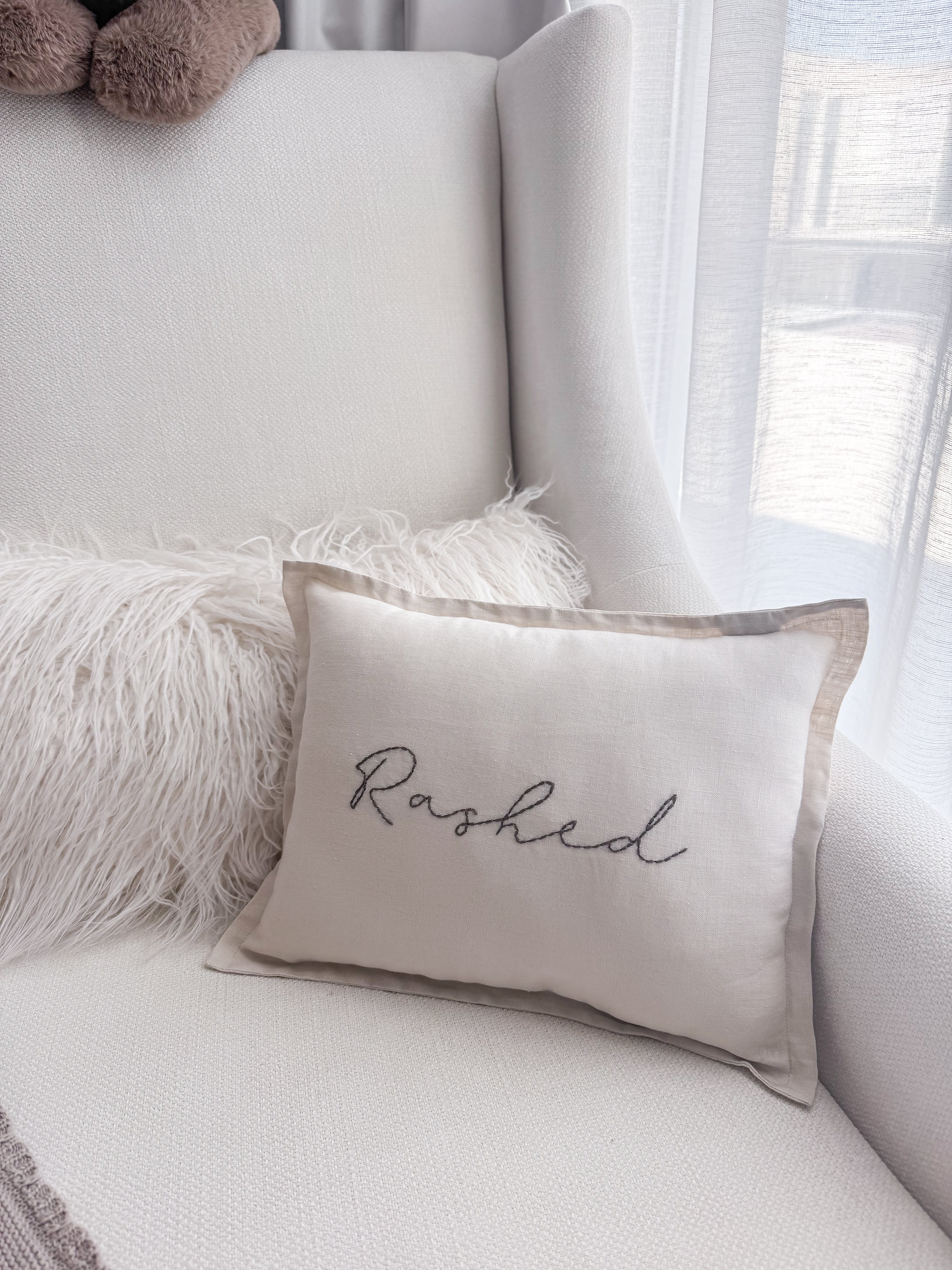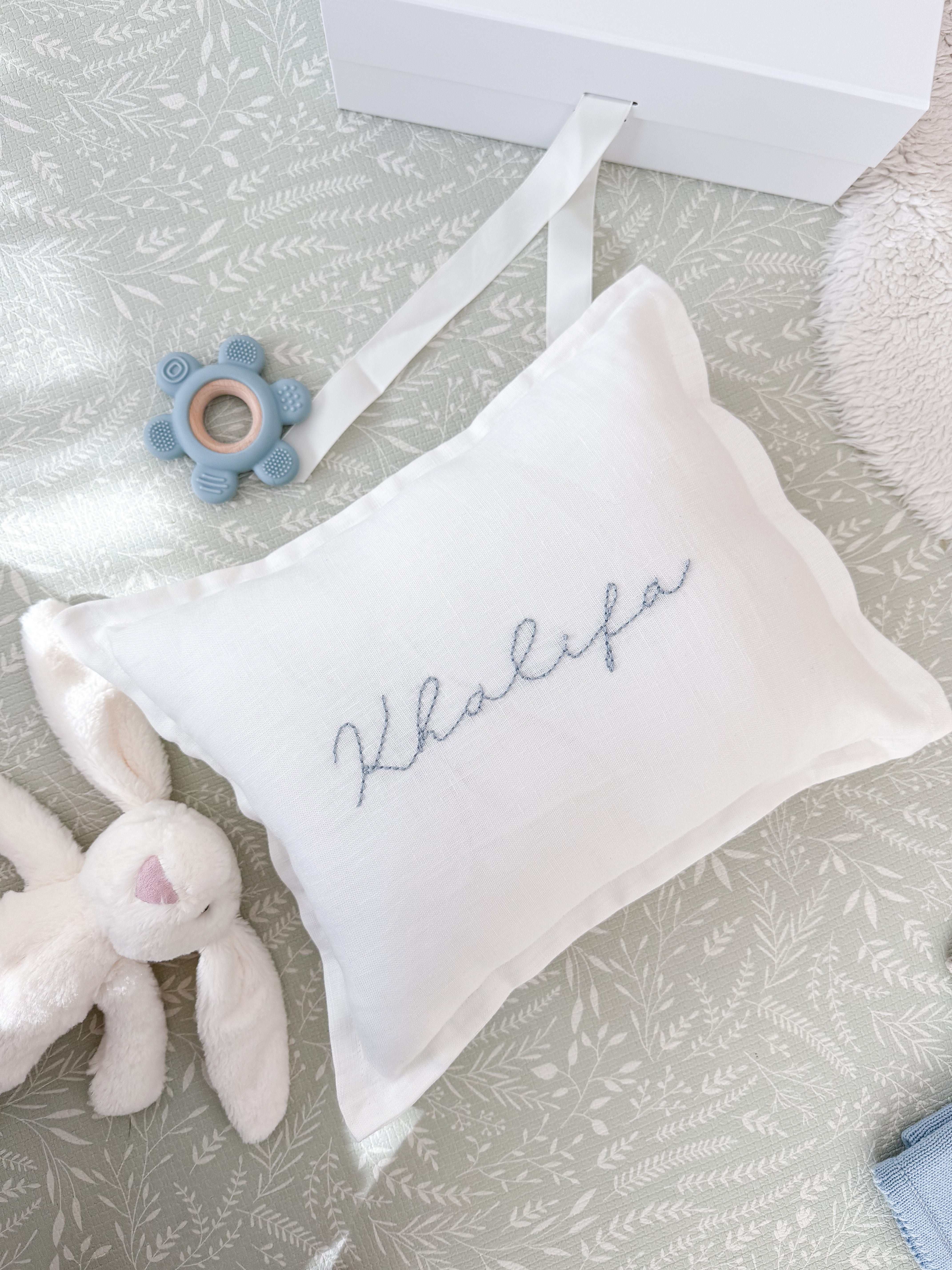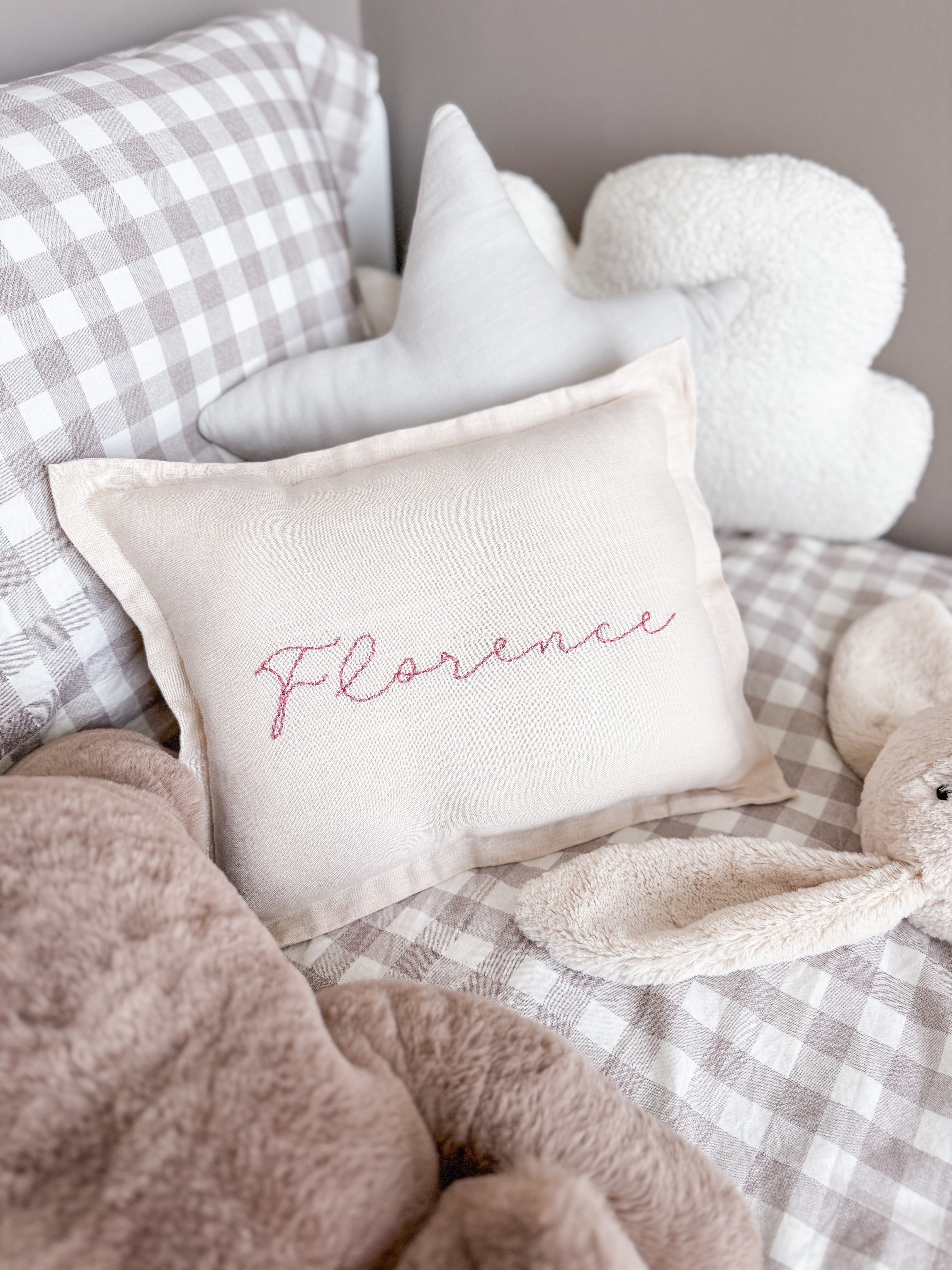 Linen Nursery Cushion Hand Embroidered - Personalise Me