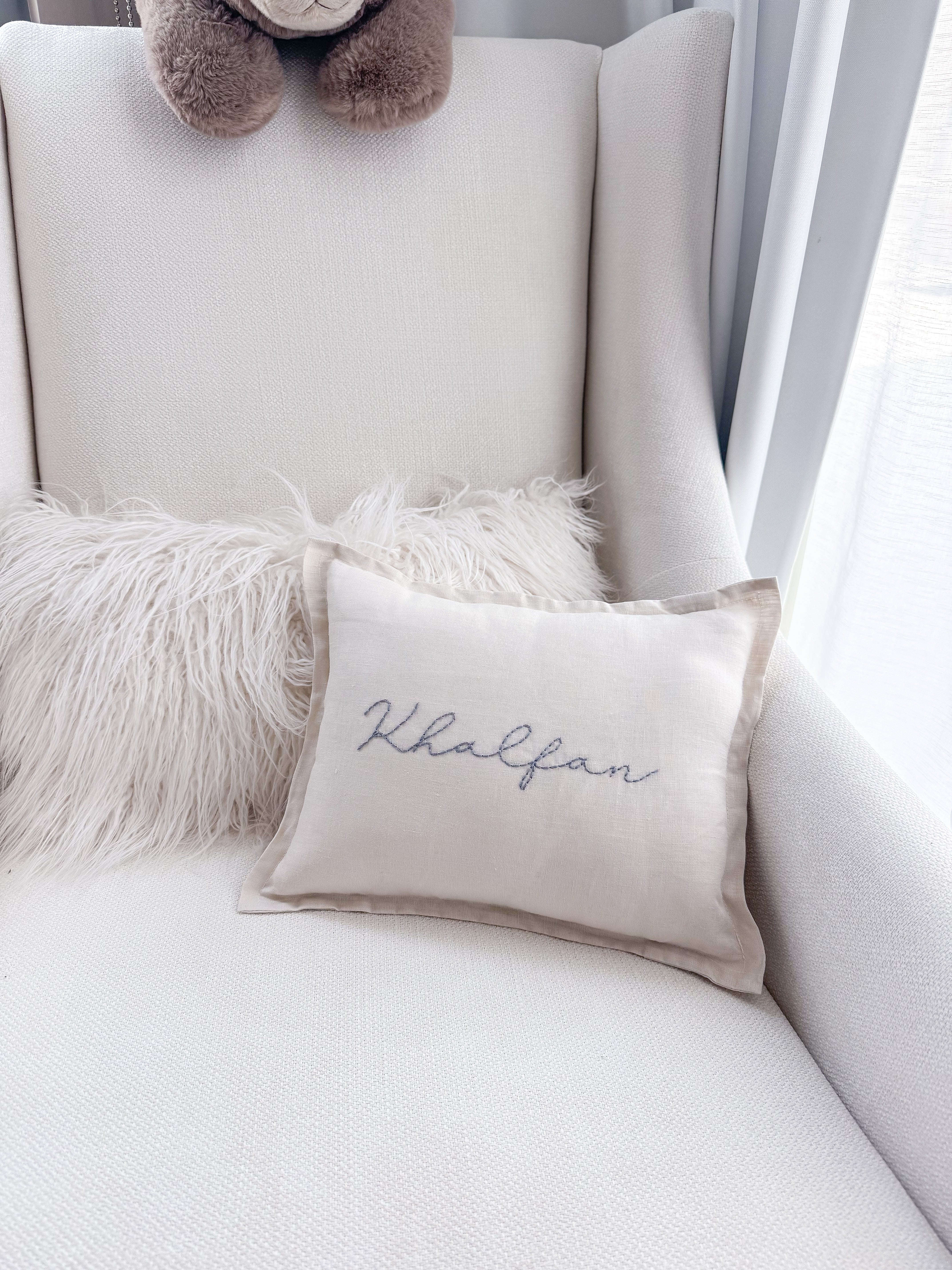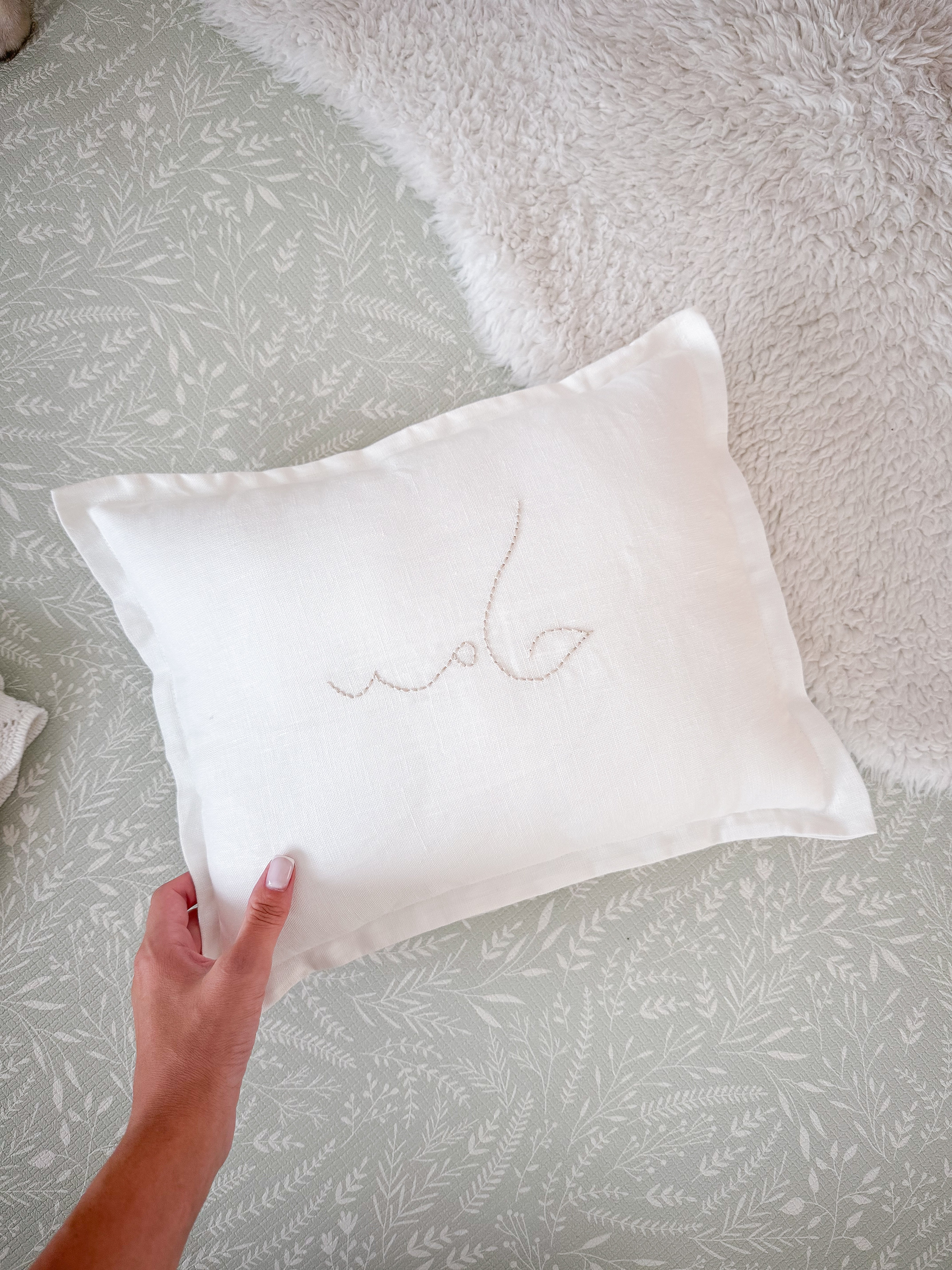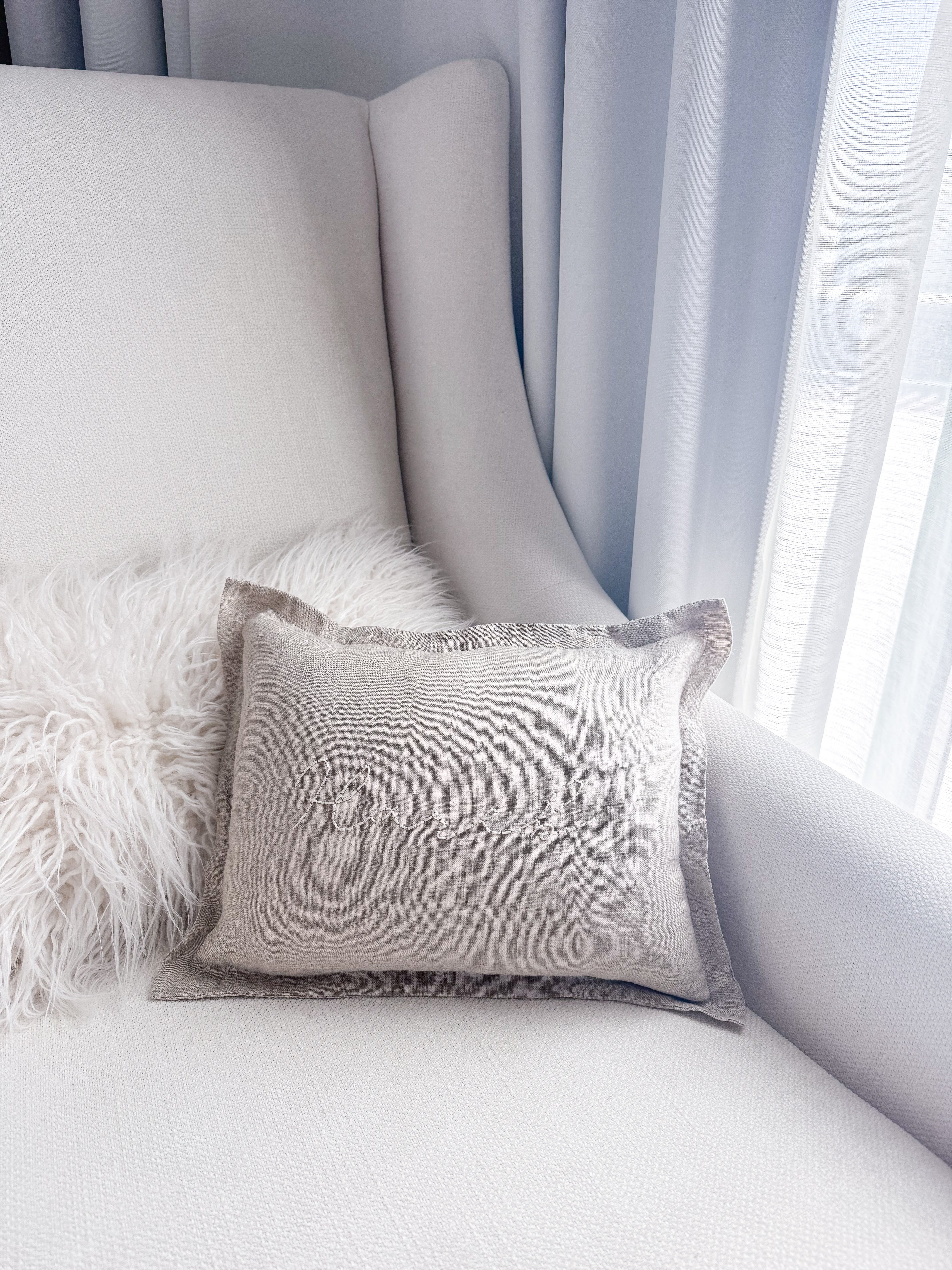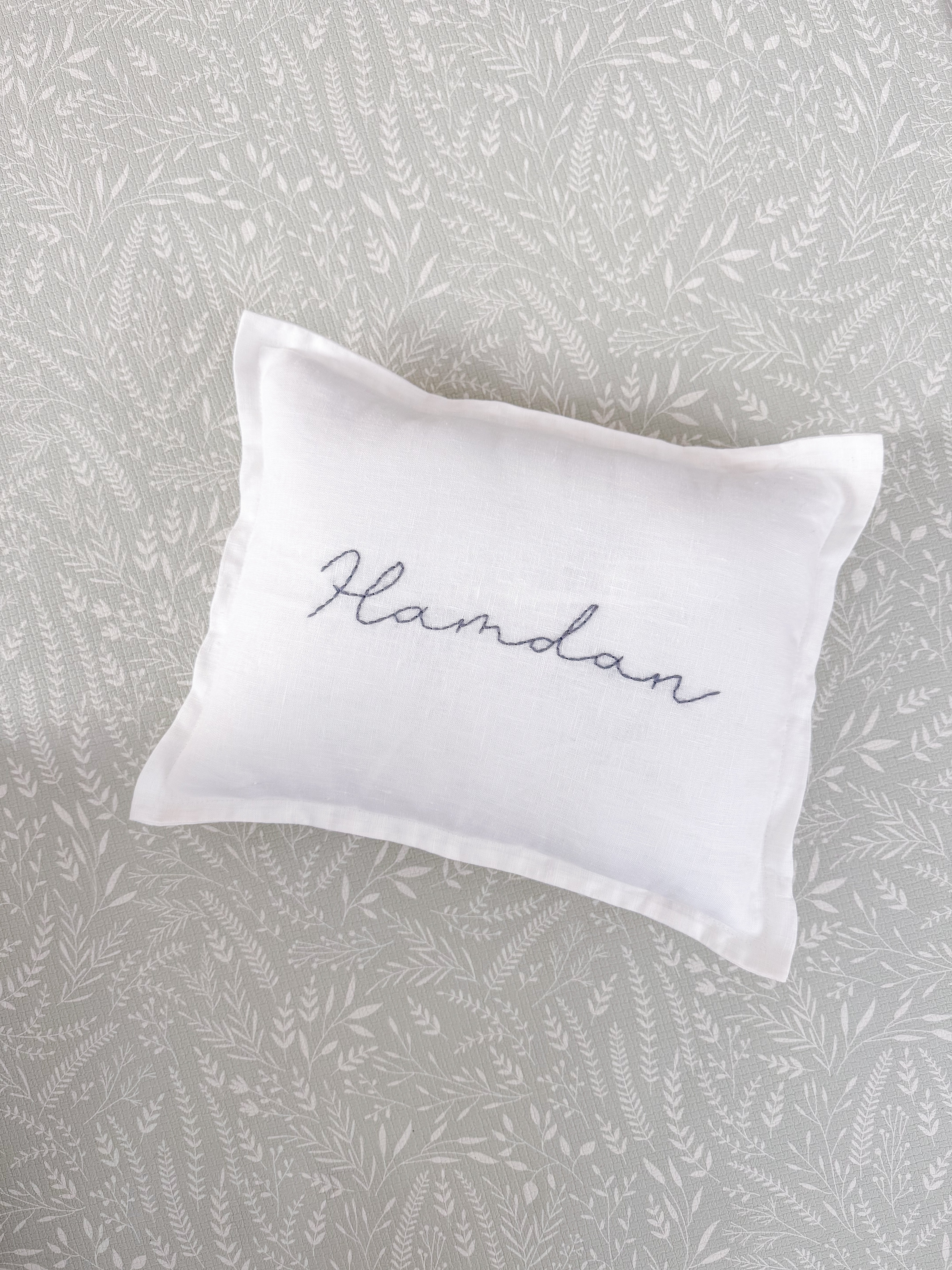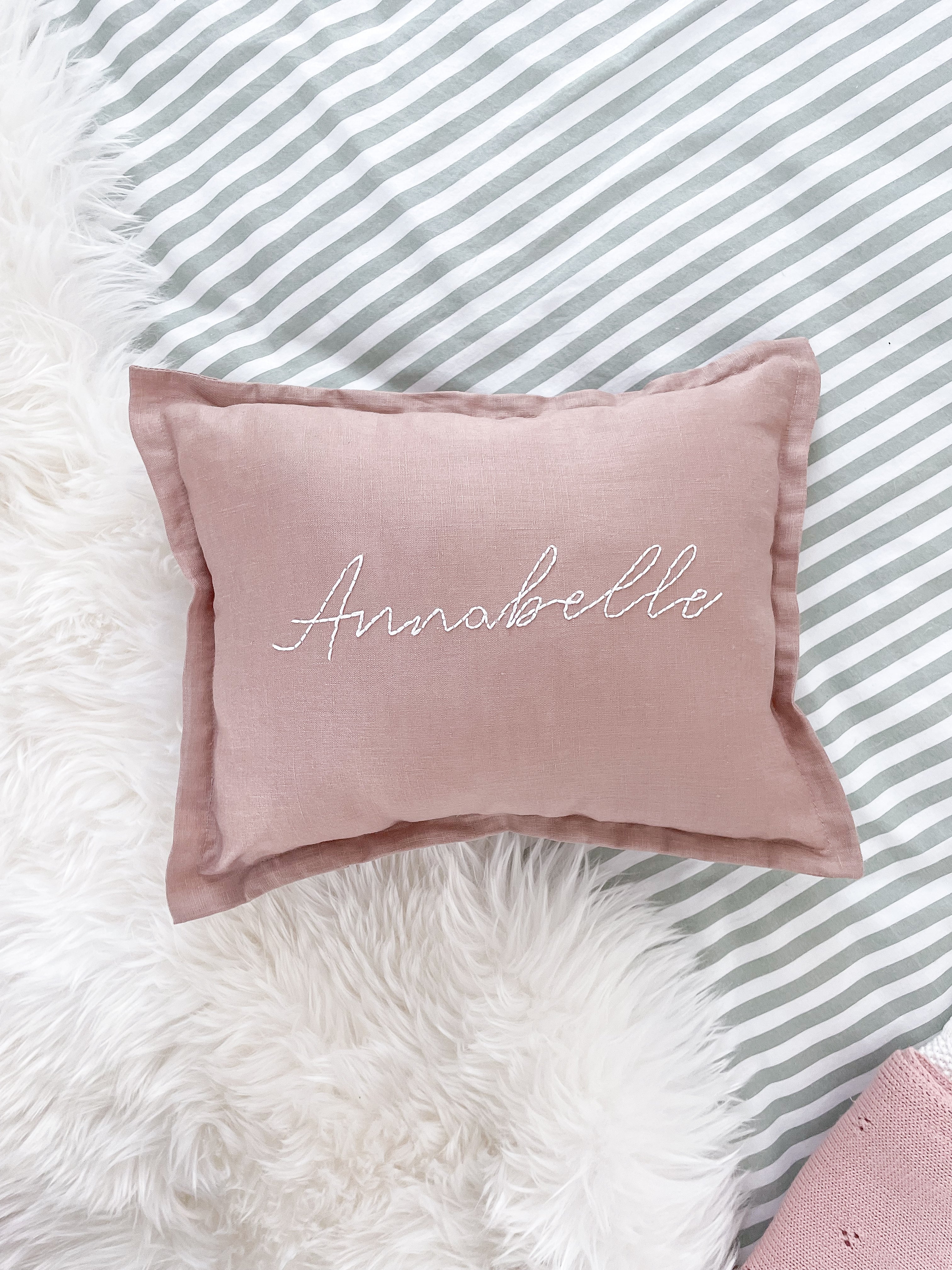 Linen Nursery Cushion Hand Embroidered - Personalise Me