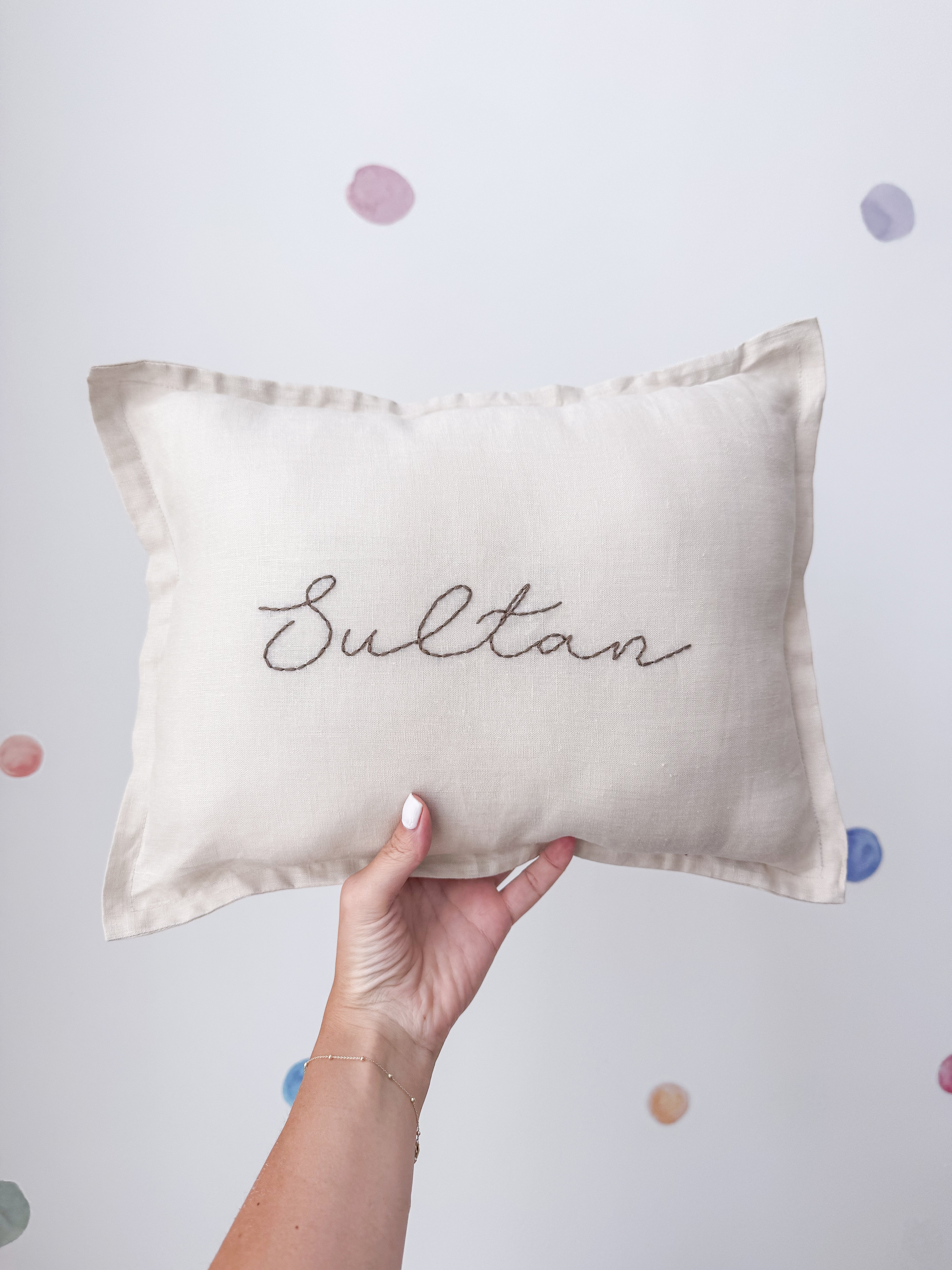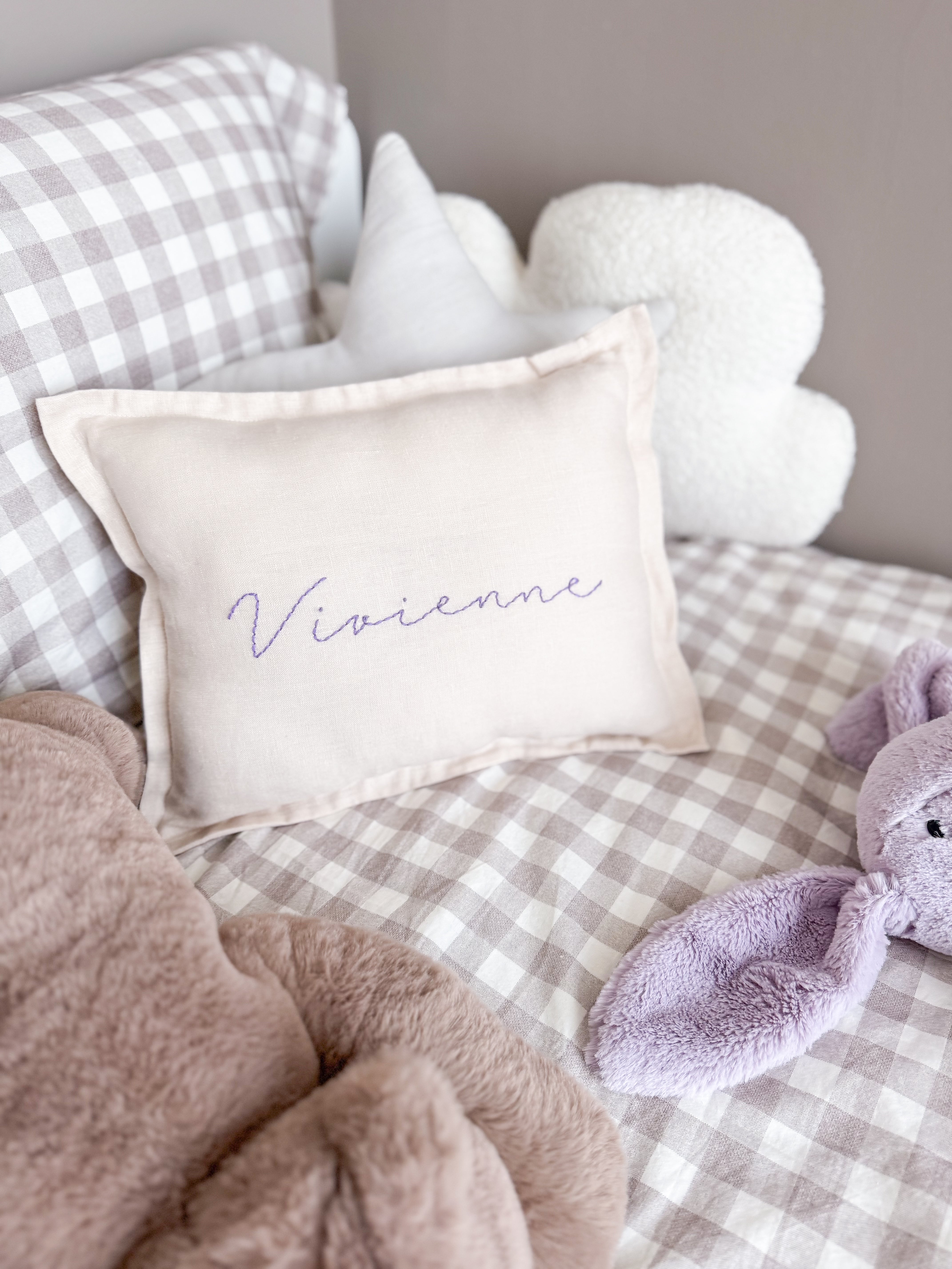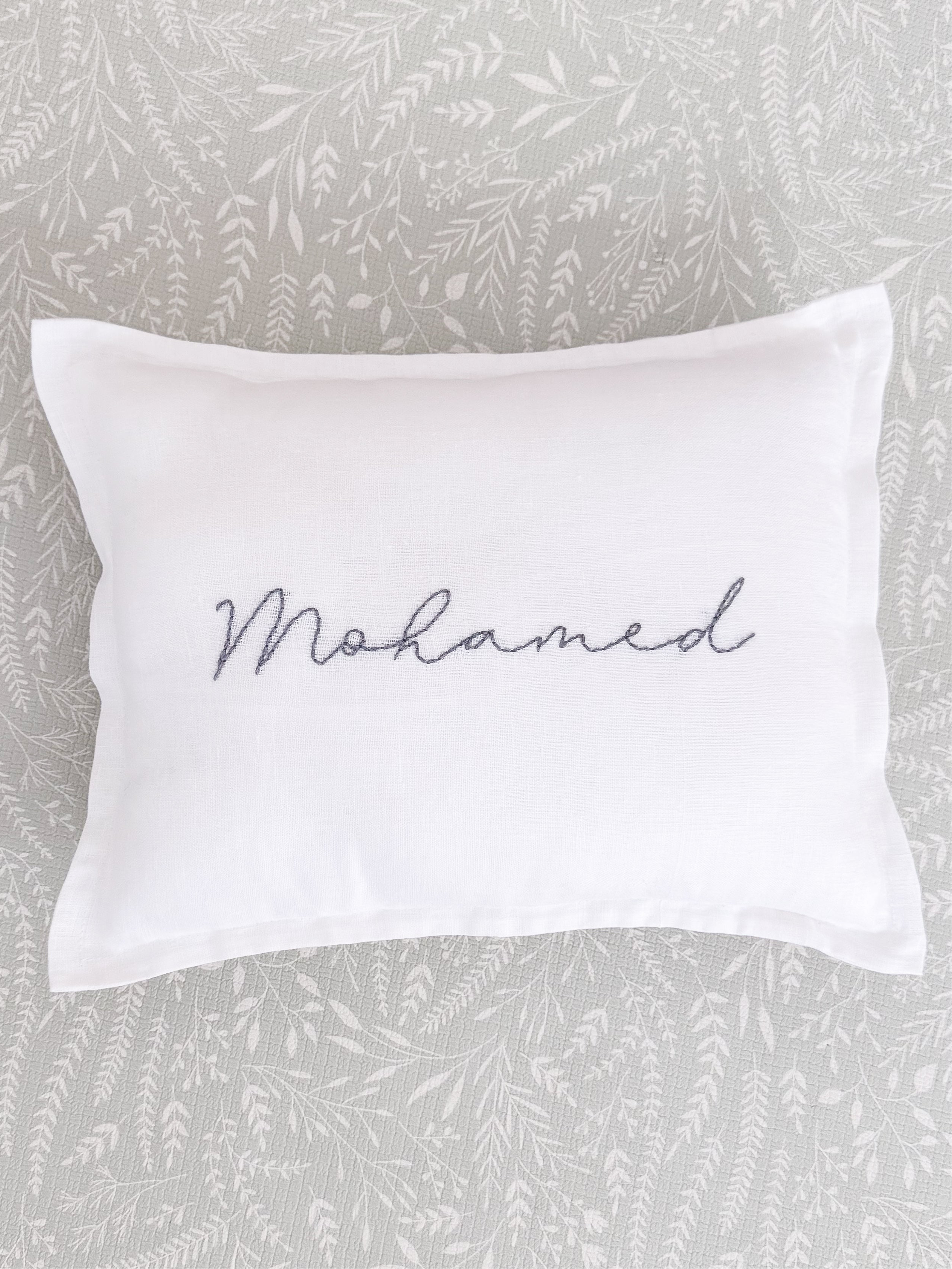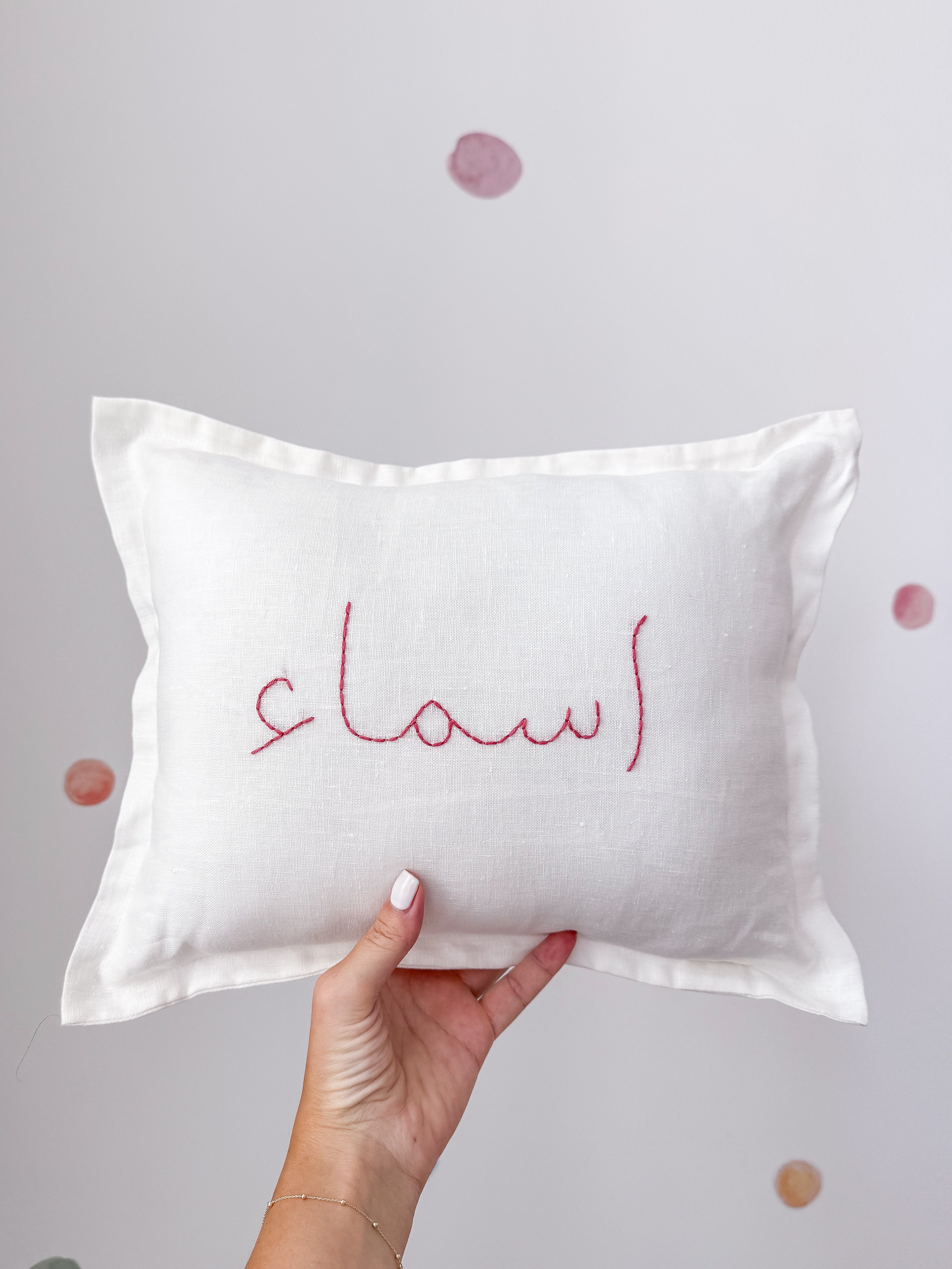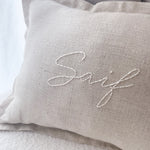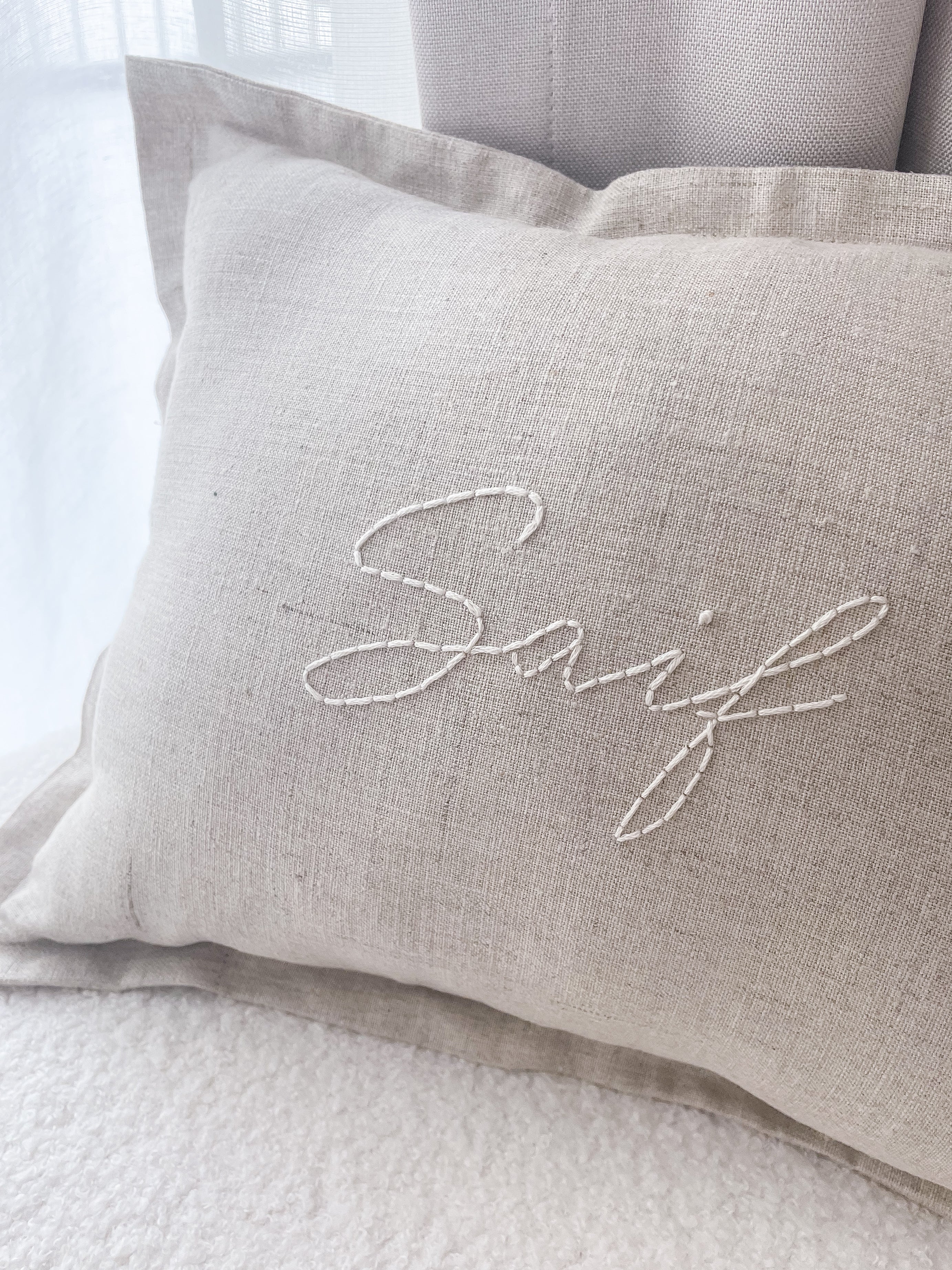 Linen Nursery Cushion Hand Embroidered - Personalise Me