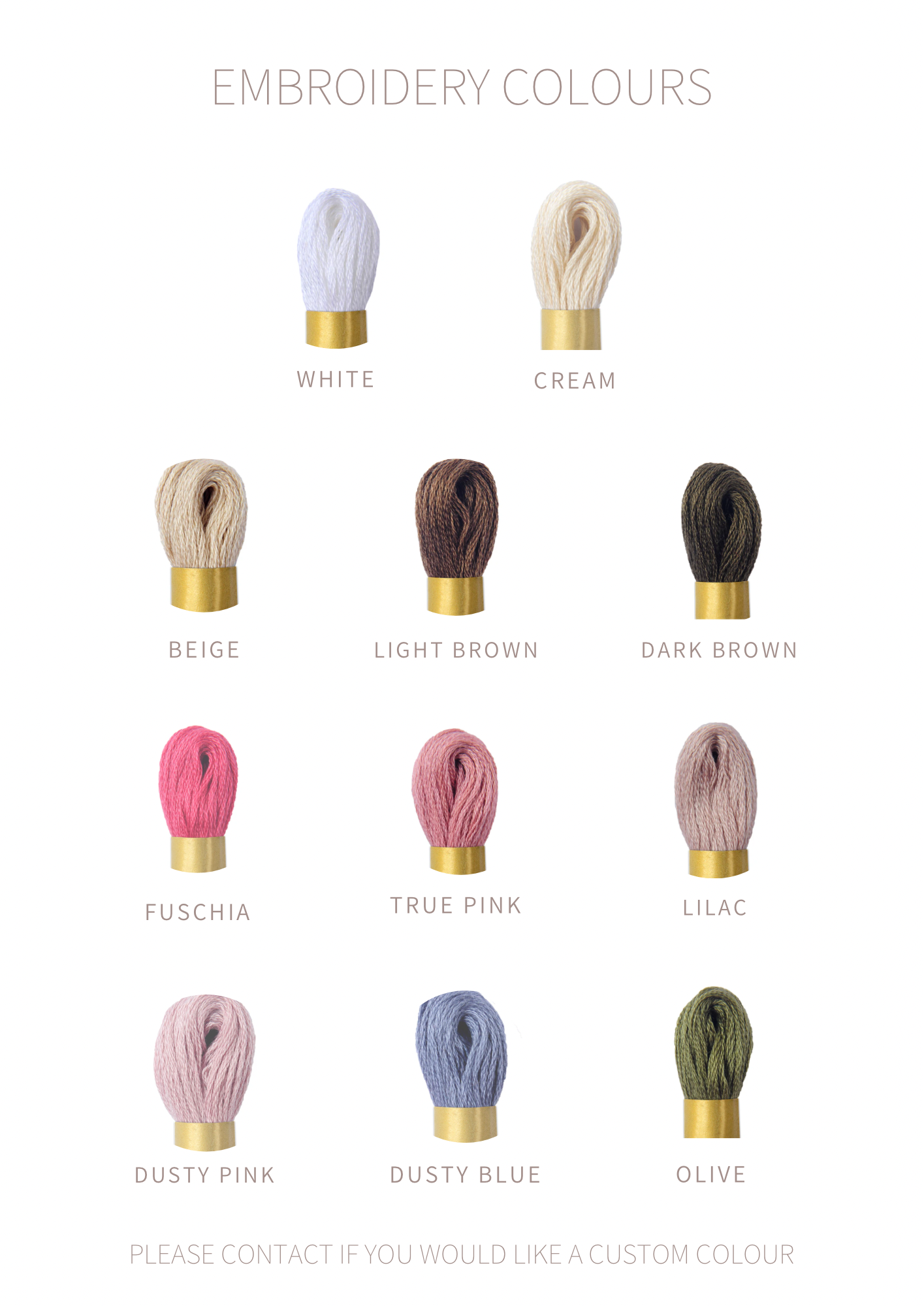 Write your name (maximum 12 characters) in the box below and choose your embroidery colour from the image.