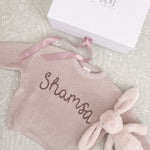 This Personalised Sweater & Bunny Gift Set includes a personalised cotton soft sweater and a supersoft plush bunny.