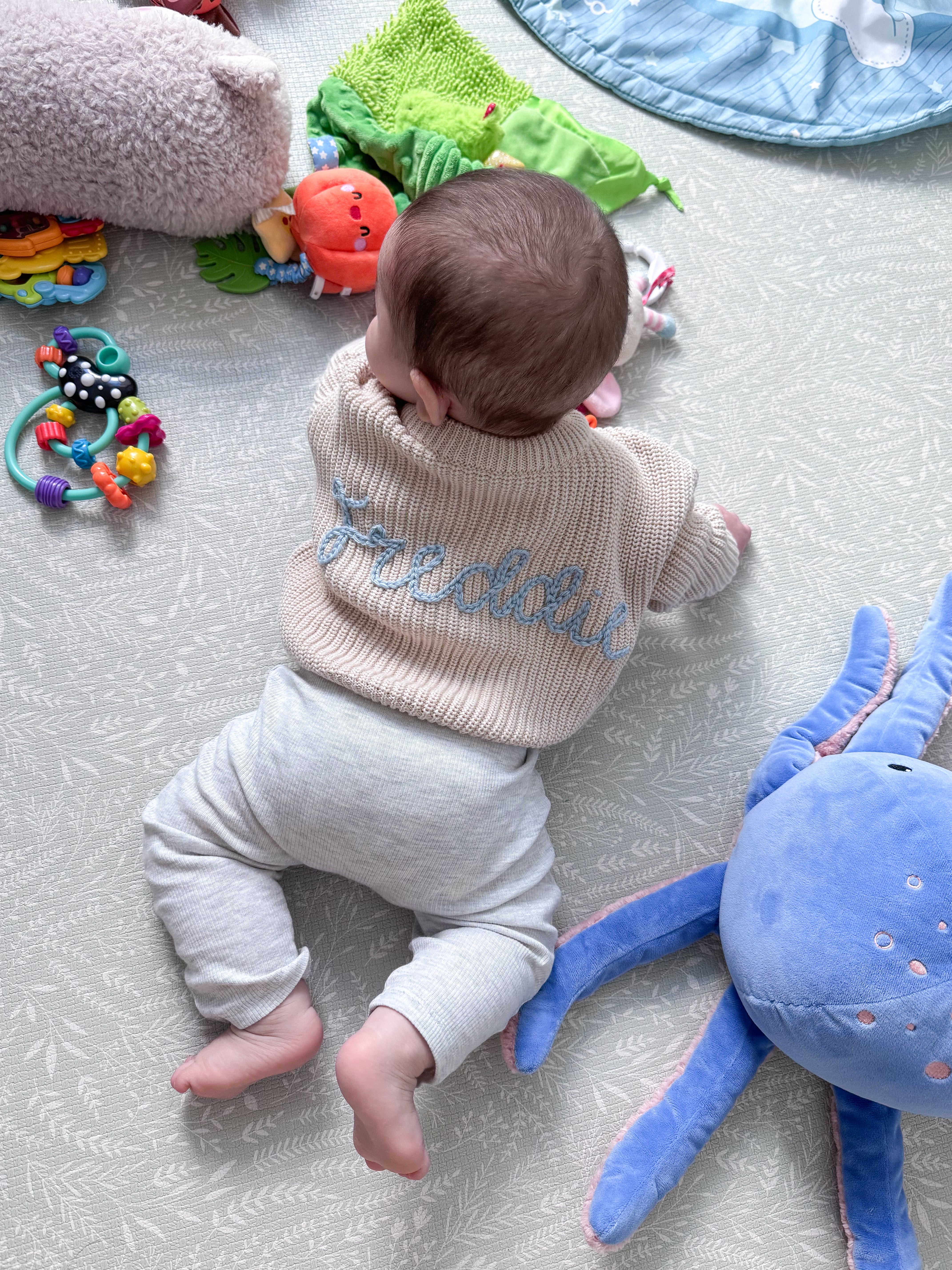Choose the colour of name embroidery for the sweater and enter the colour in the text box below. You can also choose to have the name on the front or the back, or initial on the front and name on the back.
