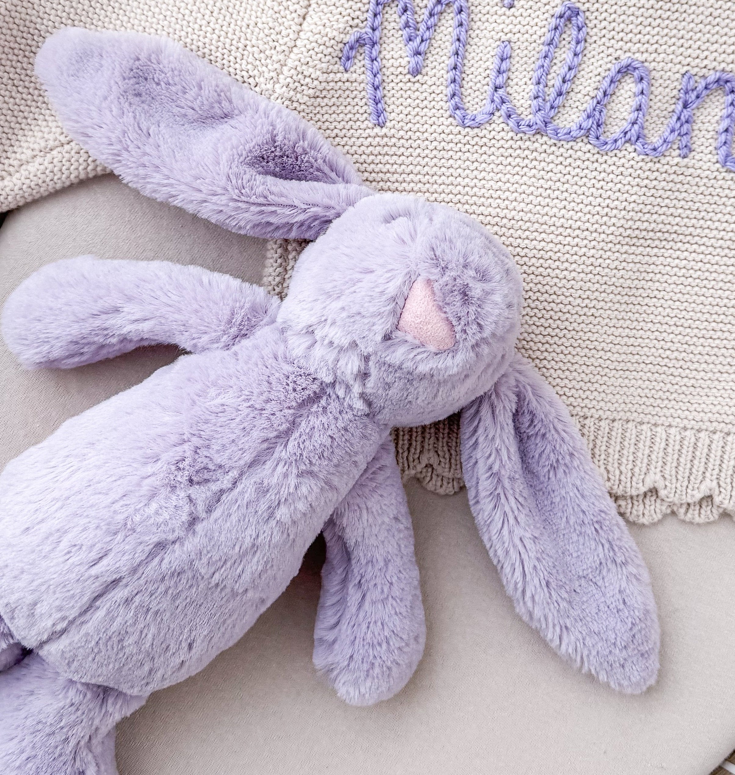 The super soft plush bunny is an adorable stuffed toy that is perfect for snuggling and cuddling. It features soft and fluffy fur, cute floppy ears, and a fluffy tail.