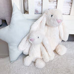 The super soft plush bunny is an adorable stuffed toy that is perfect for snuggling and cuddling. Made from high-quality materials, it features soft and fluffy fur, cute floppy ears, and a fluffy tail.